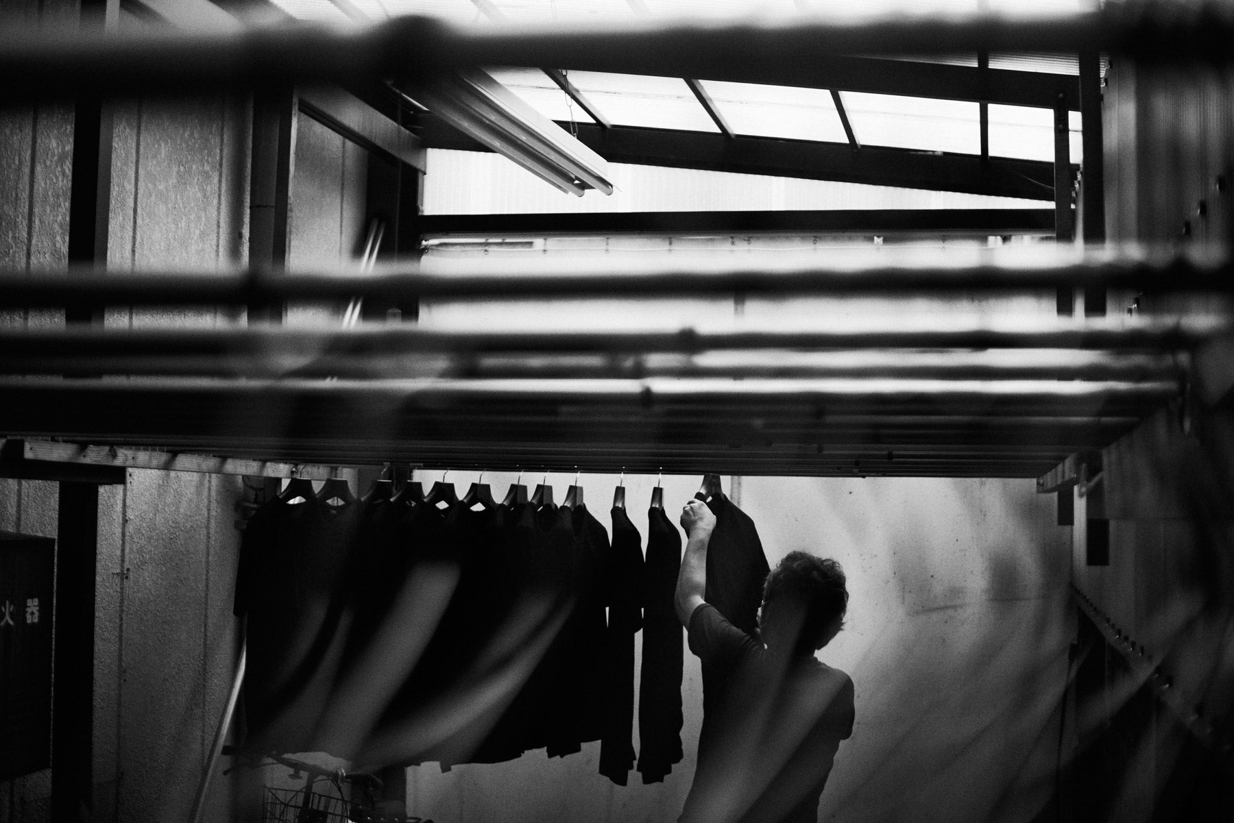 Our Kyoto Black collection is a partnership built on the values of process, technique, and expertise. Comprising signature Midweight Terry styles, each garment undergoes multiple rounds of dyeing to reach its final stage of black. Instead of coating the fabric's surface, this laborious process envelopes each fiber individually.