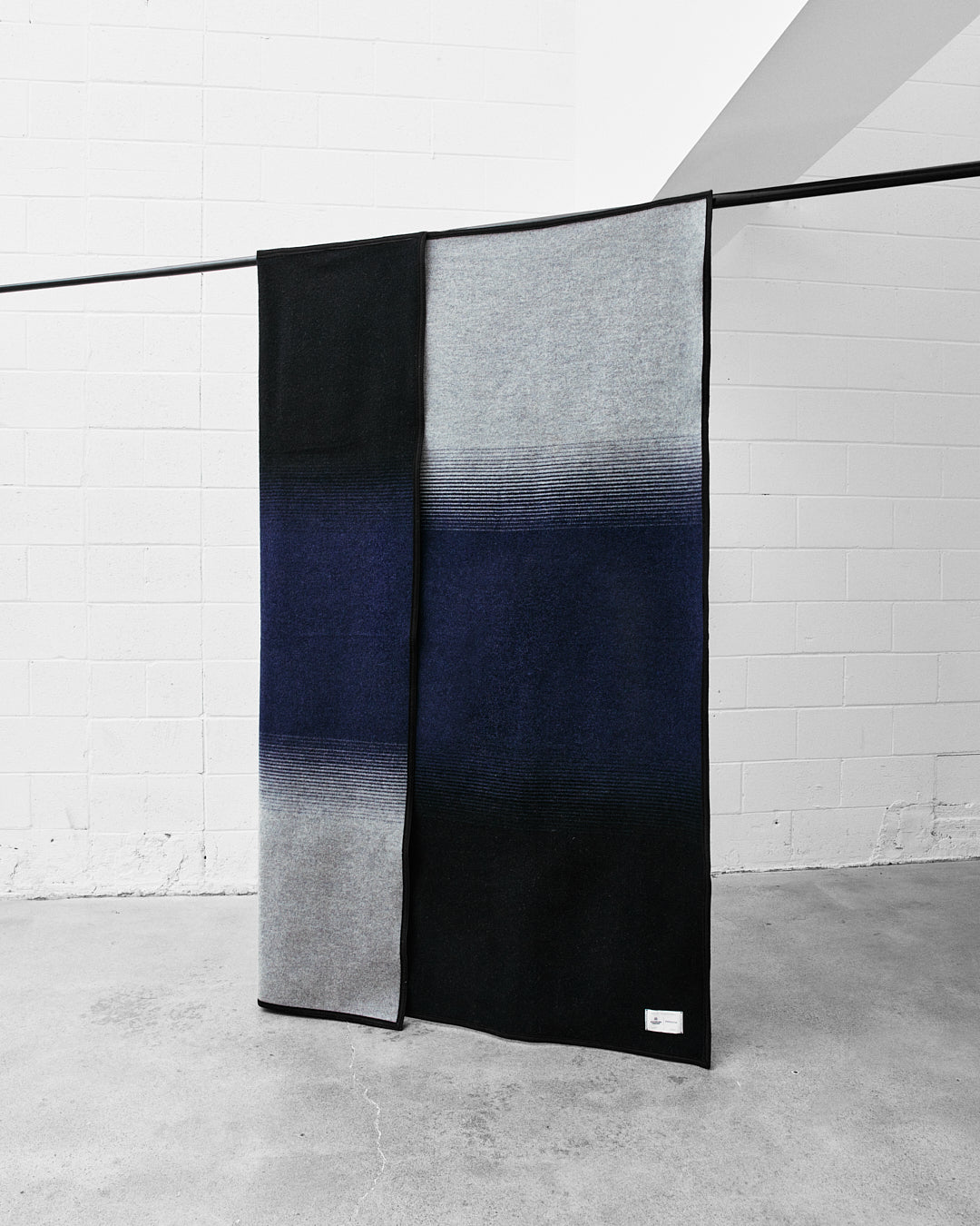 Designed for premium comfort and warmth whether at home or in the stands on game day, the jacquard blanket is made of a pure virgin wool/cotton blend and patterned after our core athletic uniform in a three-colour gradient of Heather Grey, Navy and Black.