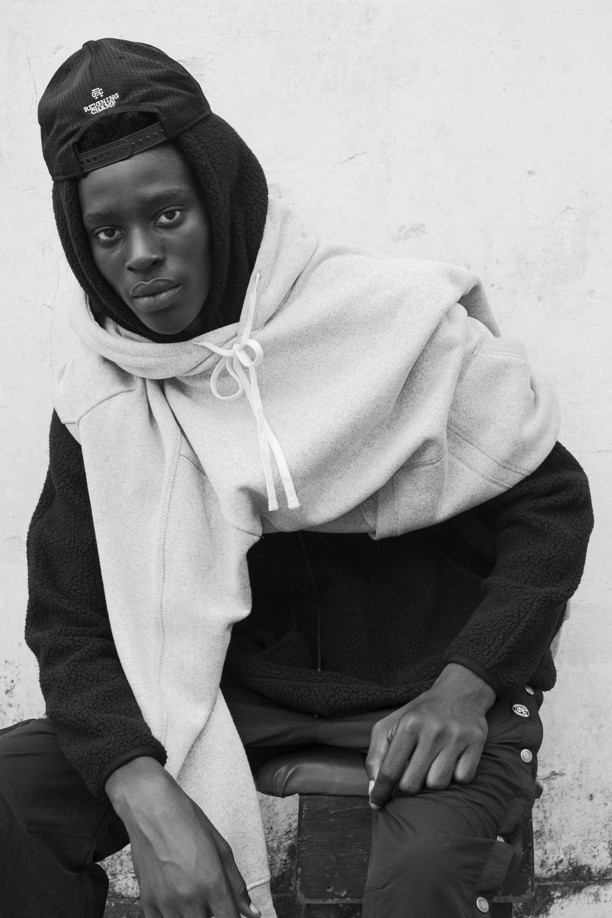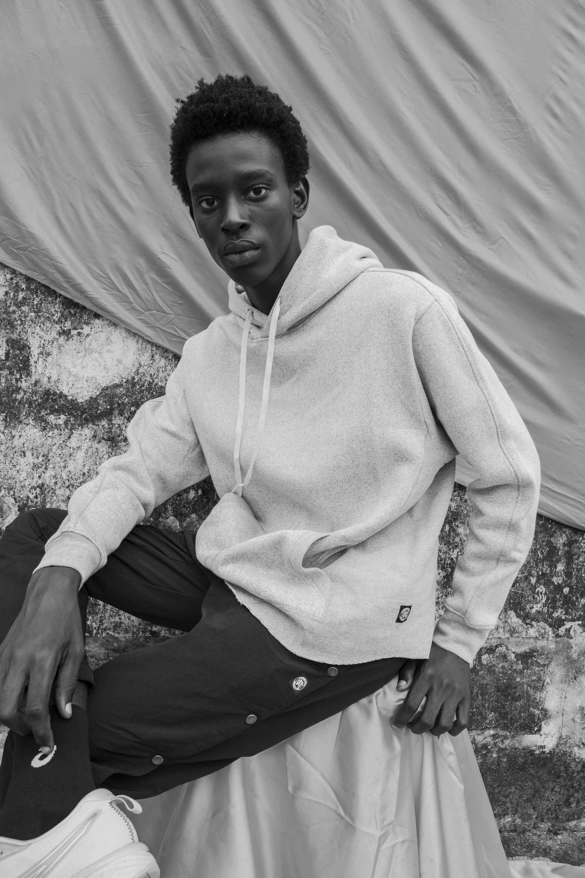 Balancing newness and familiarity, Season Two seeks an alignment of both notions, as alluded to in the capsule's graphic prose. The collection overall maintains a mix of refined, boxy silhouettes - made from heavyweight knits, robust technical fabrics, and contrasting textures. Osifeso experiments with unconventional seamwork to create nuanced volume and drape, while enlarged graphic artwork mirror the generously proportioned cuts found throughout the collection. A California native, he cites the unpredictable climate of the Pacific Northwest as a lasting point of reference for his adaptable, ongoing range of utilitarian-focused sportswear.