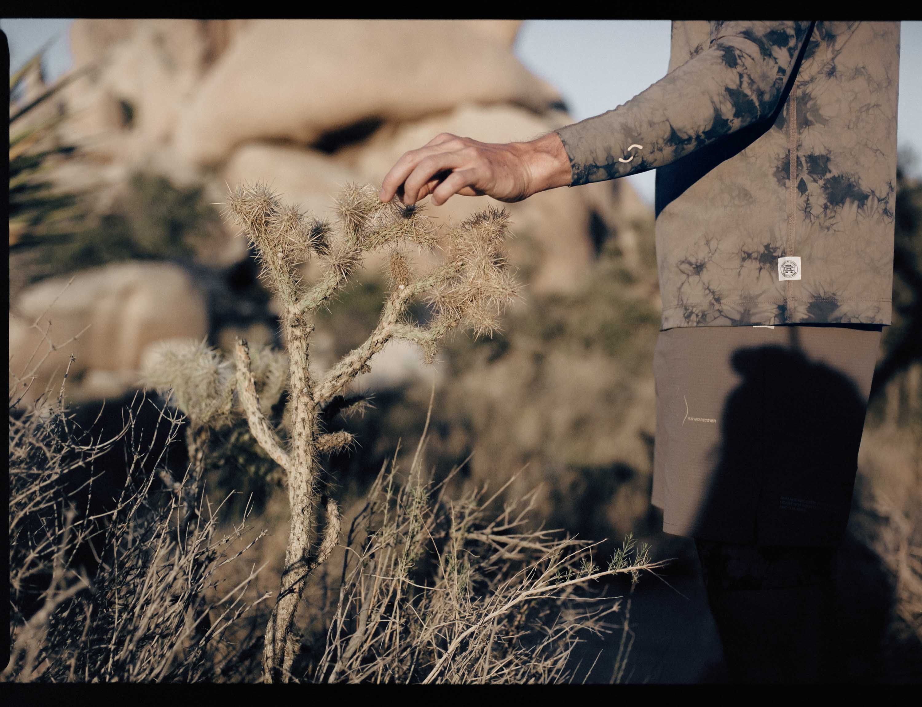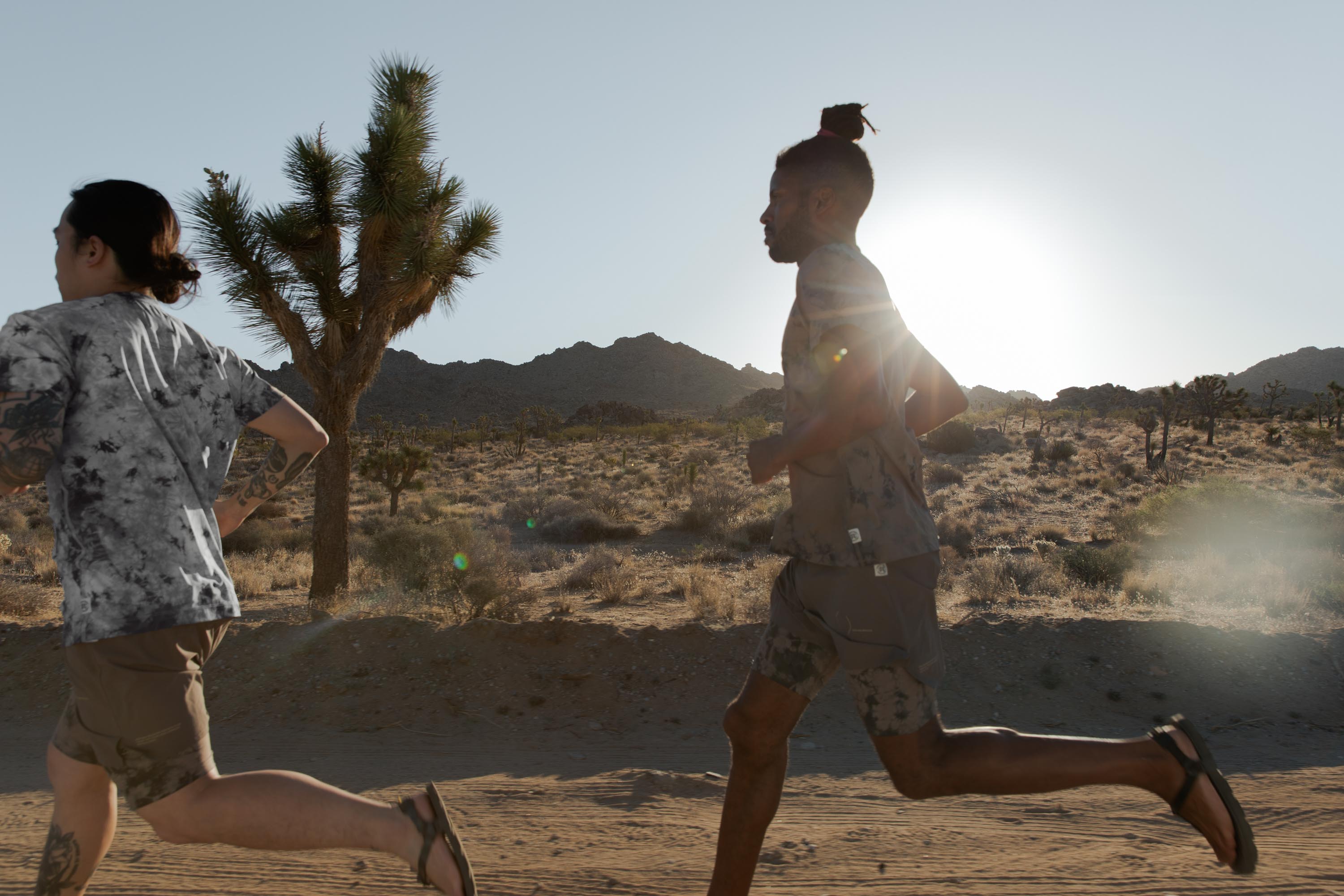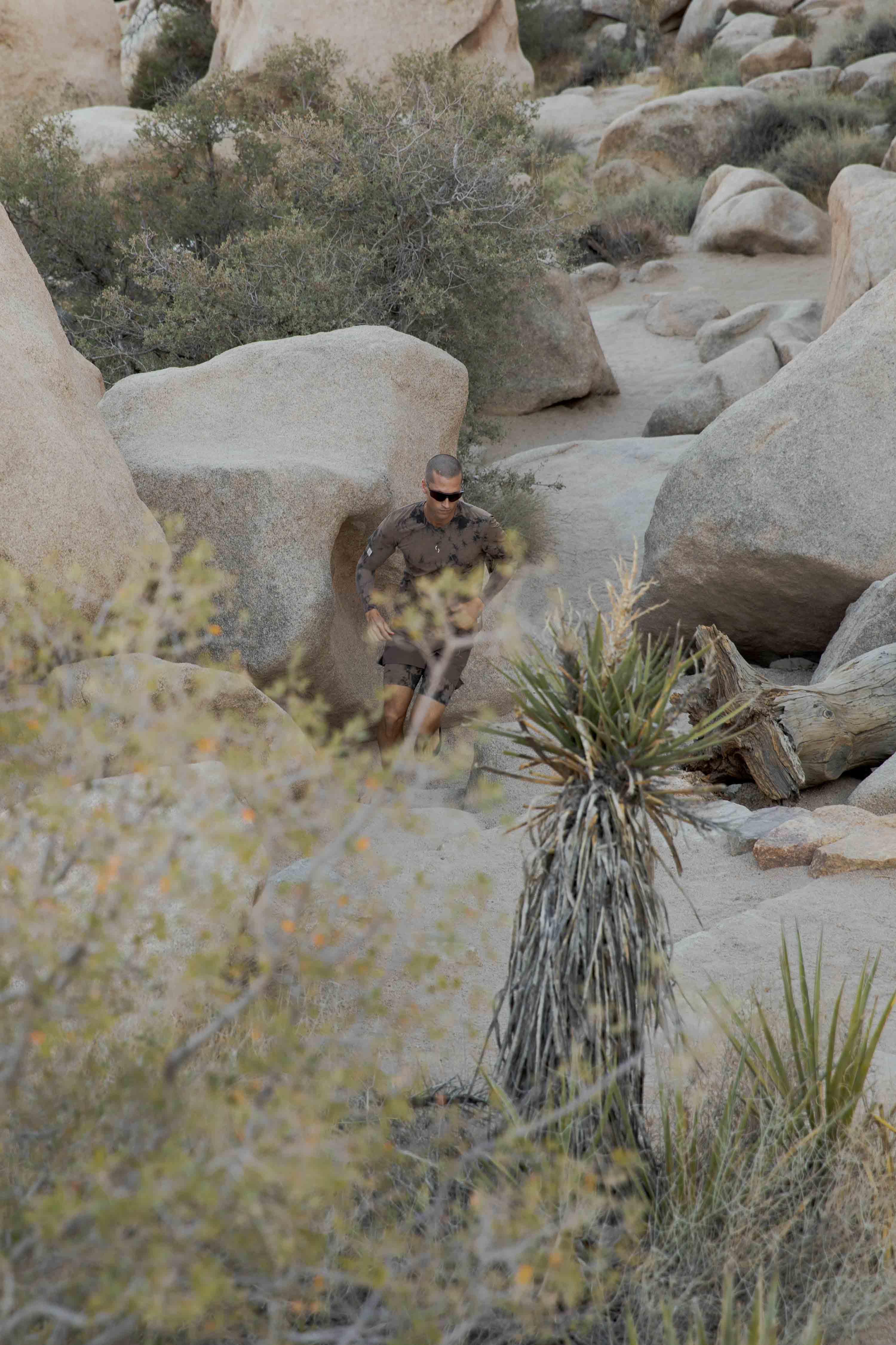 Shot on location at Joshua Tree National Park, the campaign film follows Willms and fellow runners, Knox Robinson and Duy Nguyen, through an ecosystem of rocky terrain, cacti-lined trails and stark desert landscape, a fitting backdrop that is reflected in the collection's tonal palette of natural pigments, earth tones, and tie dyes.
