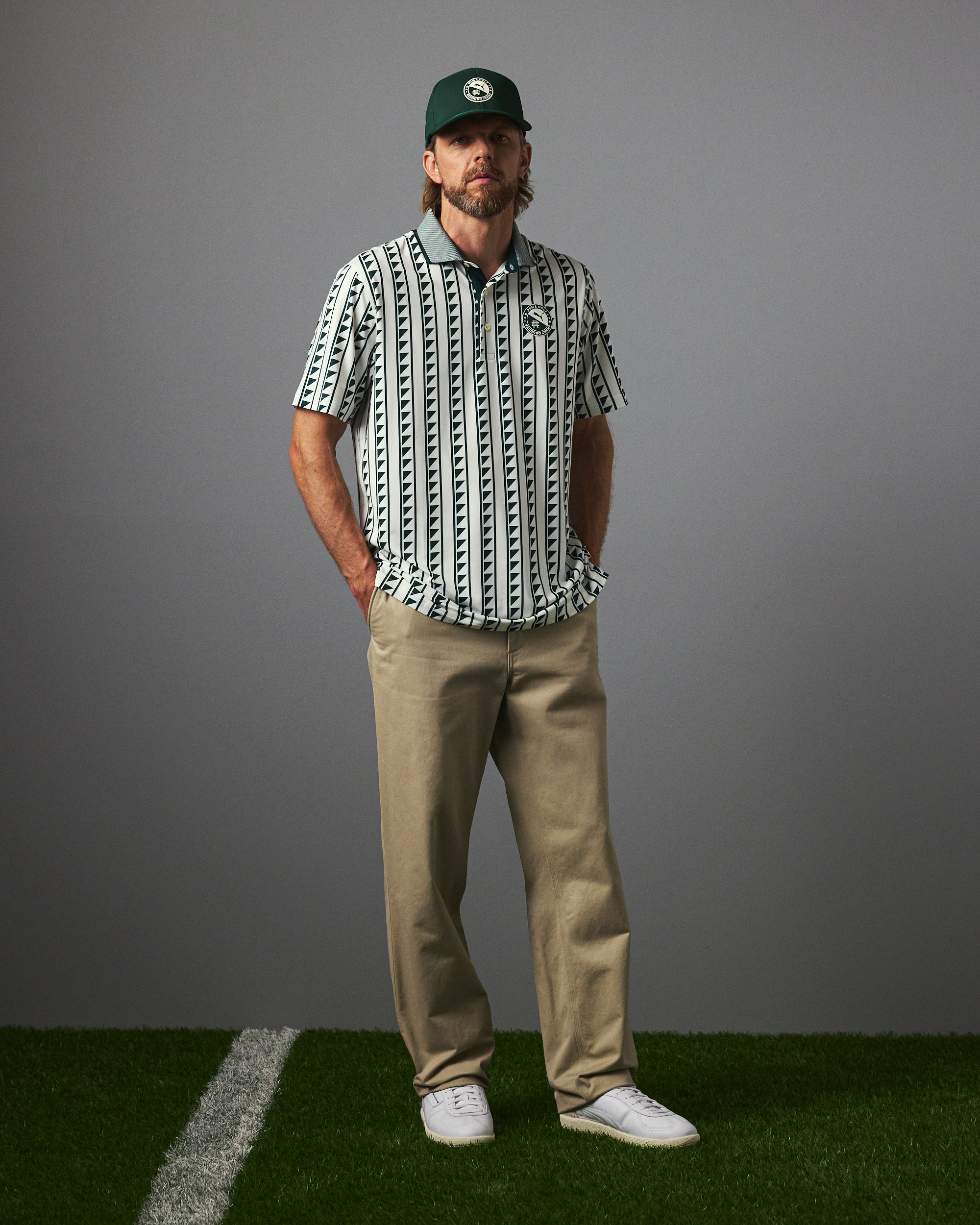 FIELD TO FAIRWAY IS A GOLFER’S KIT WITH CROSSOVER APPEAL—WHERE SPORT AND STYLE INTERSECT, AND PITCH MEETS PIN. FROM ONE BEAUTIFUL GAME TO ANOTHER, THE CAPSULE CONNECTS PUMA’S RICH SOCCER HERITAGE WITH REIGNING CHAMP’S PEDIGREE IN PREMIUM ATHLETIC WEAR.