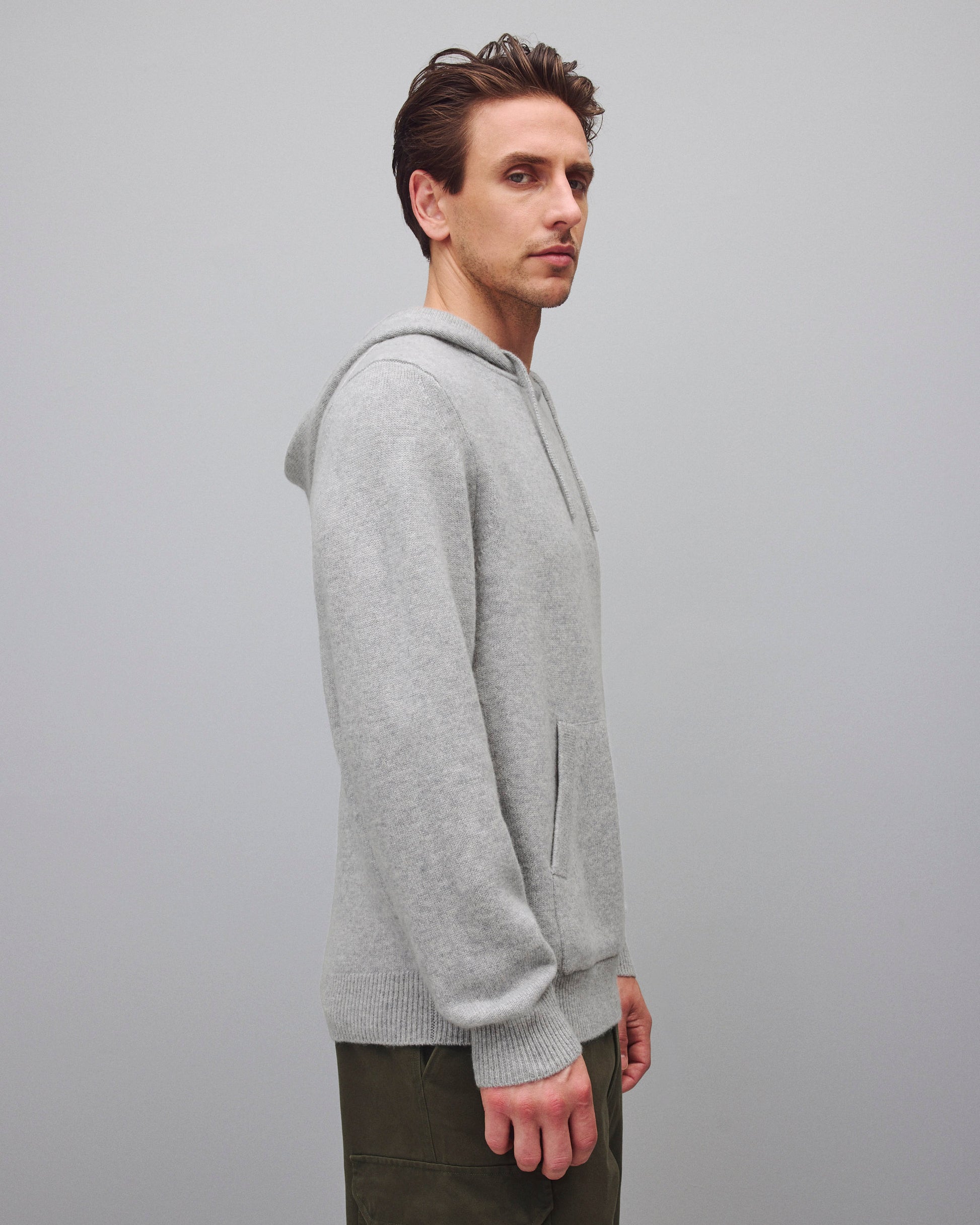 This hooded sweater is knit from the finest cashmere, prized for its natural warmth and ultrasoft hand. Cut in a standard fit with fully fashioned seams, and finished with a drawstring rib hood, cuffs, and hem. Rib side gussets and lycra-blended trim enhance shape retention and durability.
