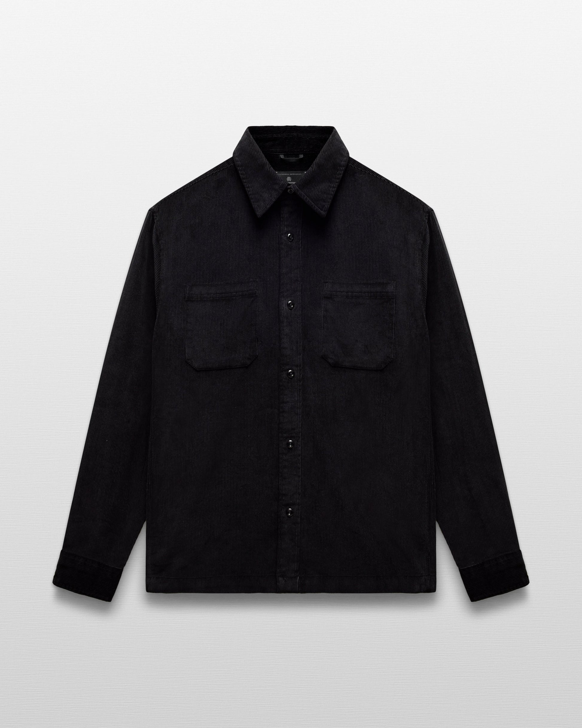 This cotton corduroy overshirt features classic 10-wale construction, garment-washed for a softer, lived-in feel. Cut in a boxy standard fit for easy layering. Designed with a pointed collar, dual chest pockets, corozo buttons, adjustable cuffs, and a flat hem.
