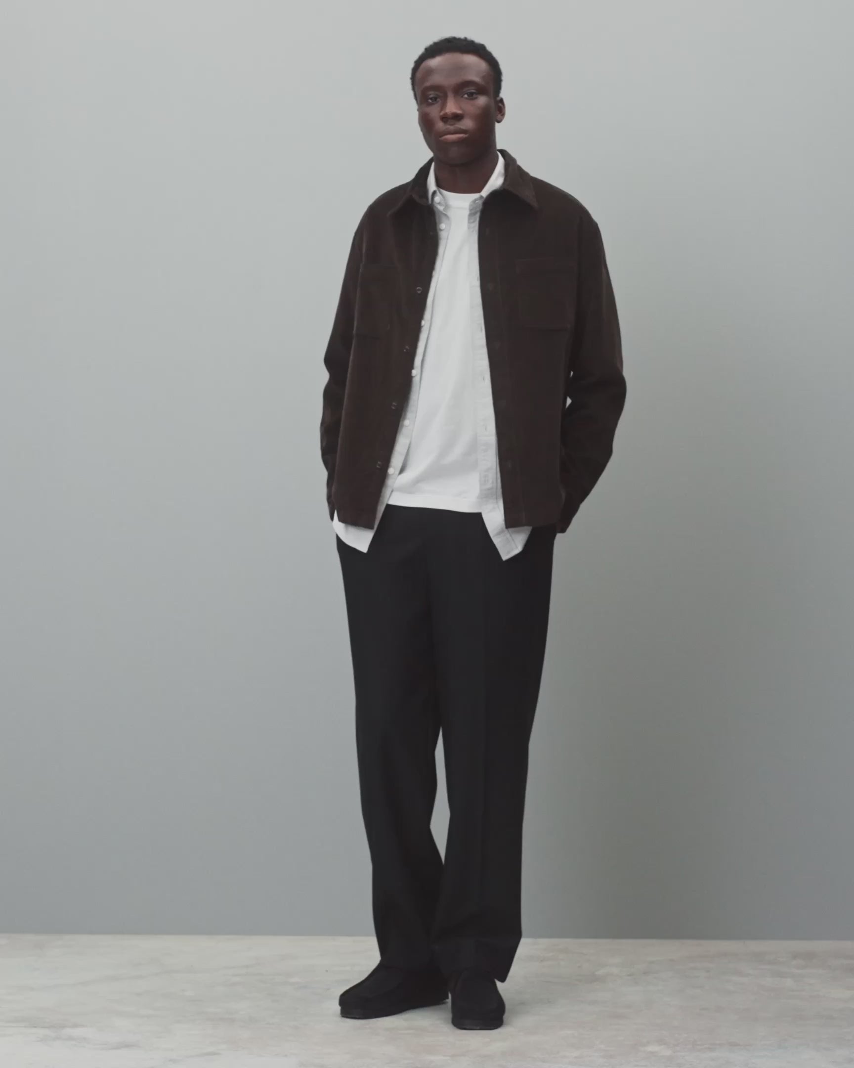 This cotton corduroy overshirt features classic 10-wale construction, garment-washed for a softer, lived-in feel. Cut in a boxy standard fit for easy layering. Designed with a pointed collar, dual chest pockets, corozo buttons, adjustable cuffs, and a flat hem.