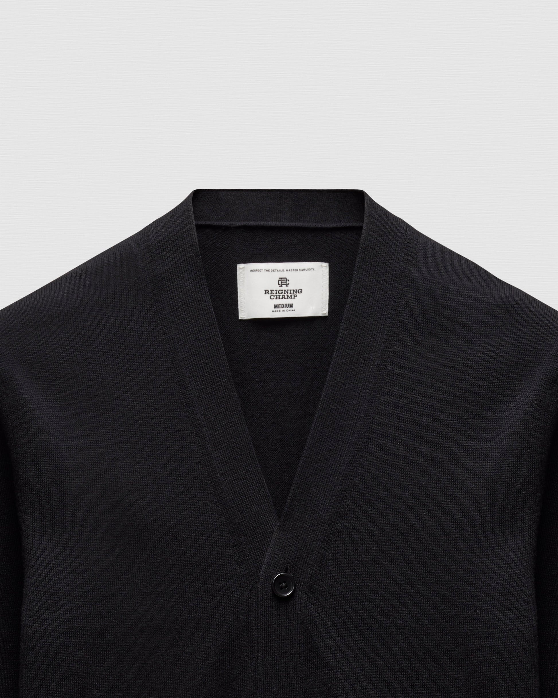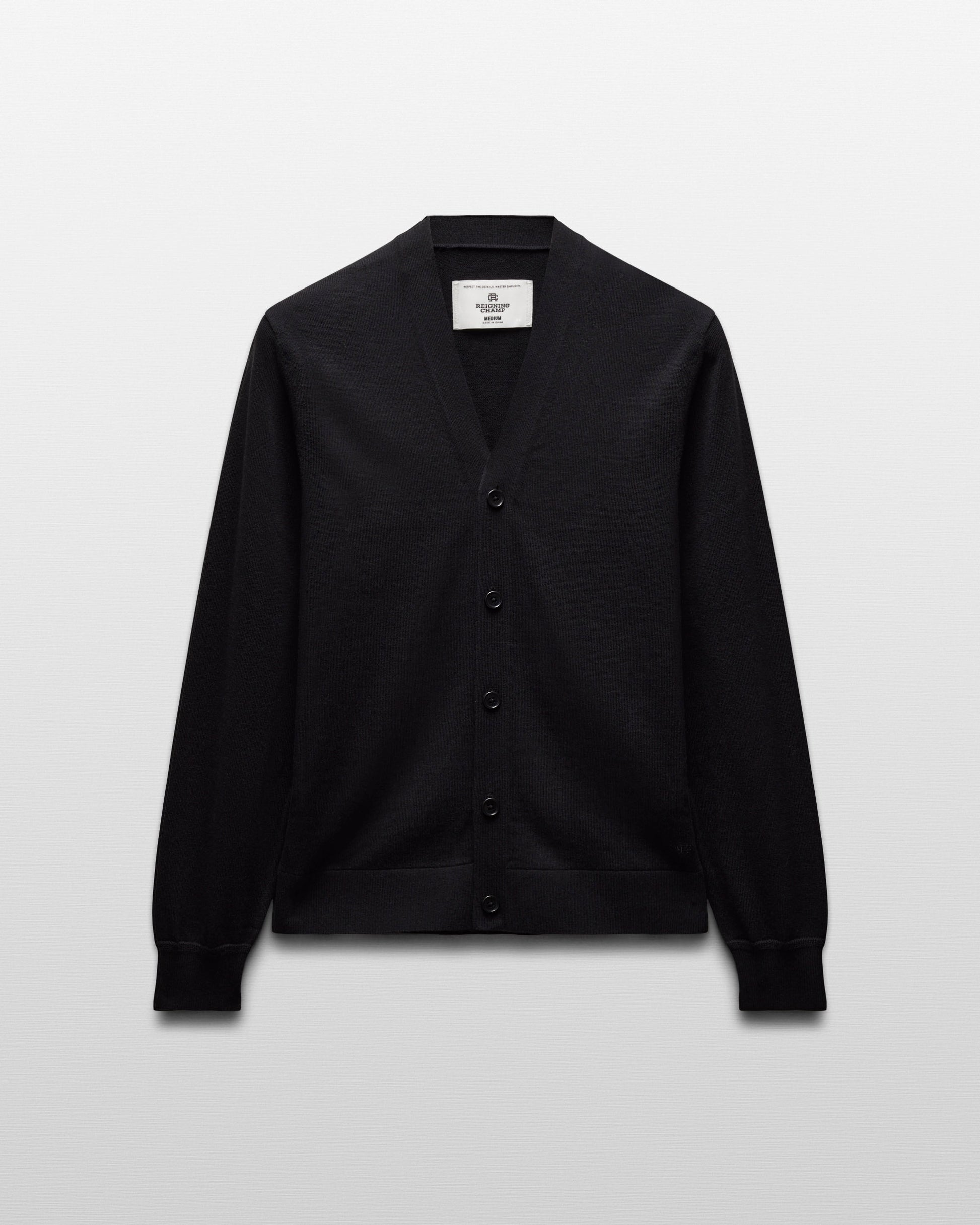 This compact knit cardigan is crafted from a midweight blend of cotton and cashmere. Featuring a standard fit, with fully fashioned seams. Designed with a full needle placket and side gussets, corozo buttons, and lycra-blended cuffs and waist hem for added durability.