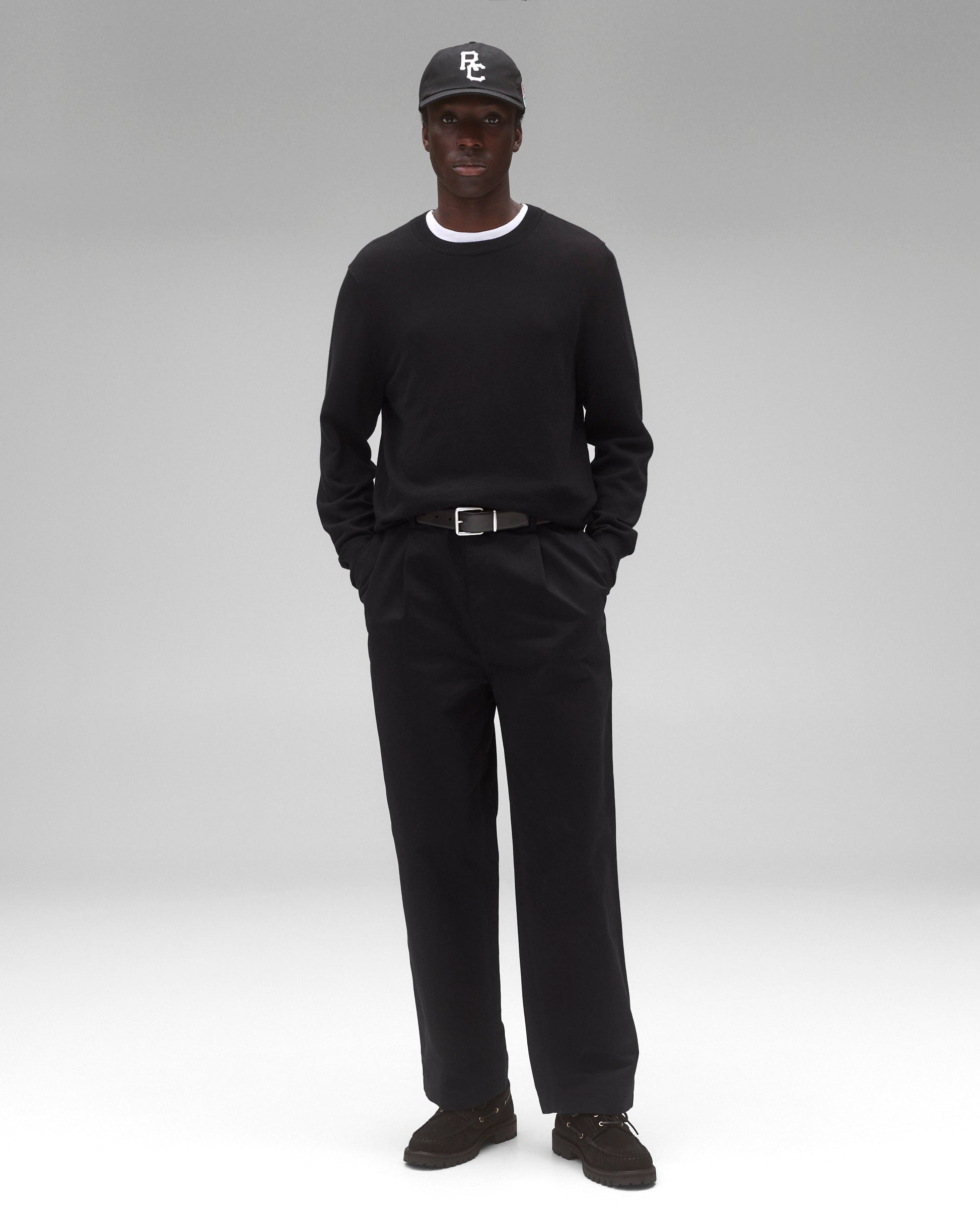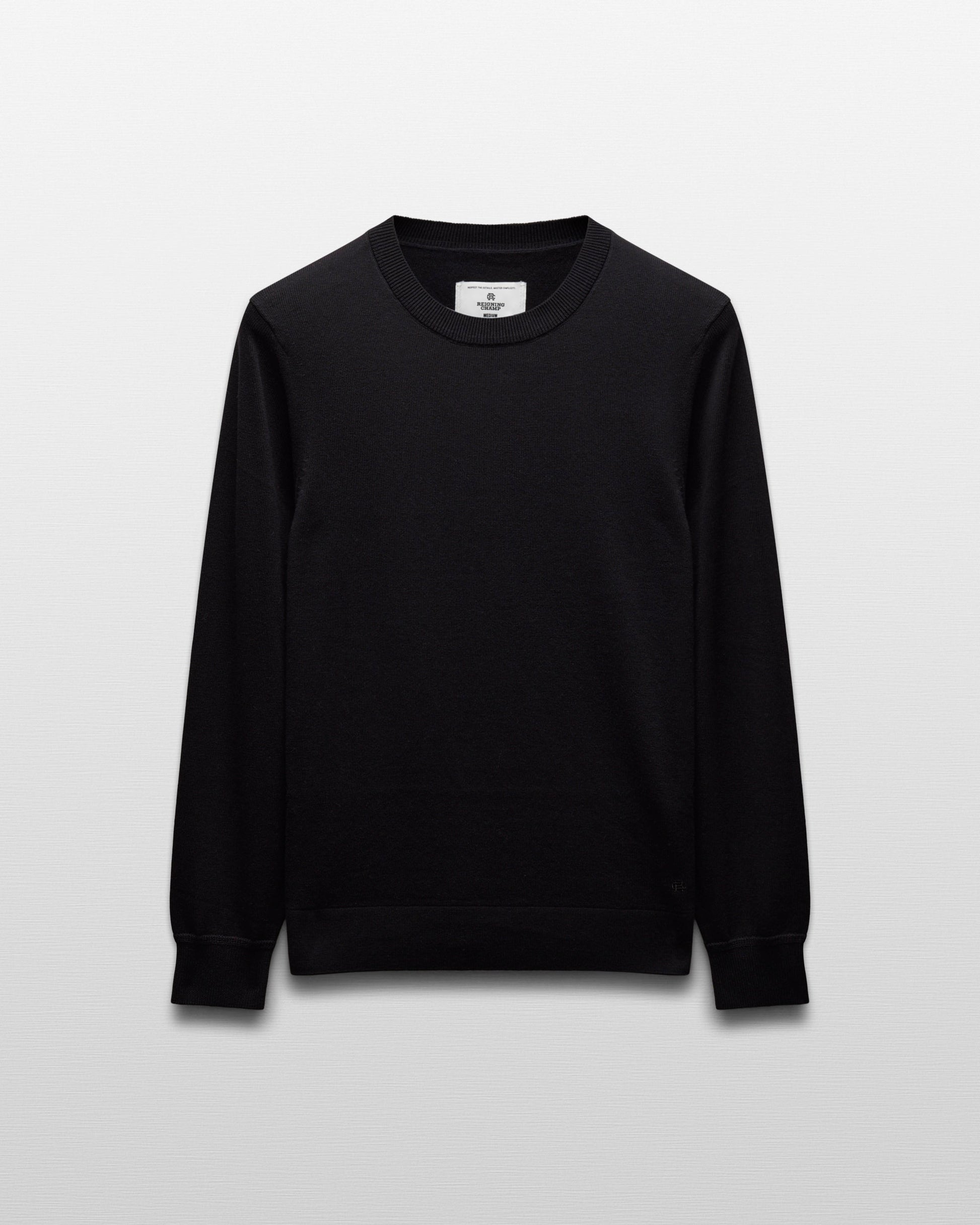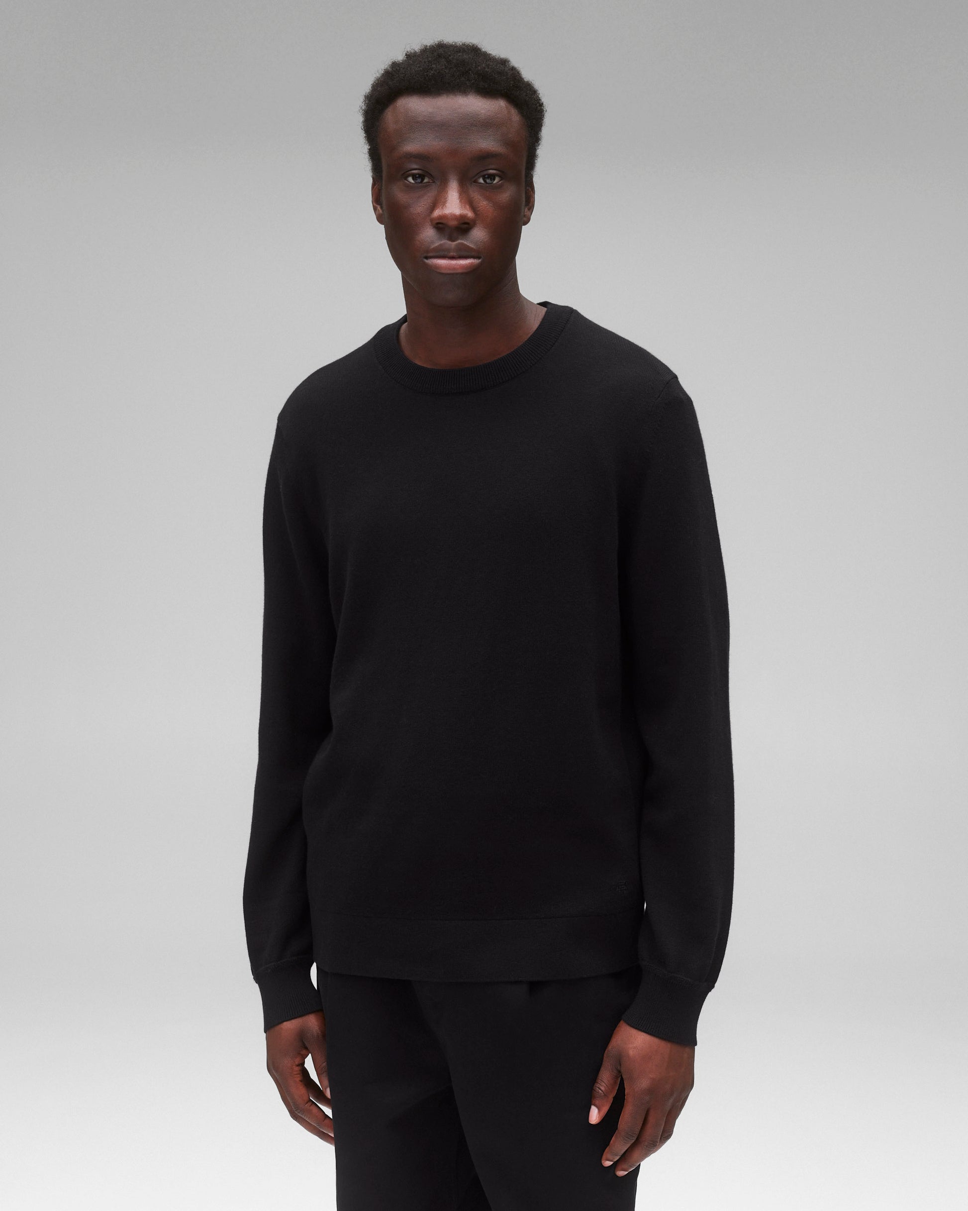 This compact knit crewneck sweater is crafted from a midweight blend of cotton and cashmere. Featuring a standard fit, with fully fashioned seams. Designed with a rib knit collar, full needle side gussets, and lycra-blended cuffs and waist hem for added durability.