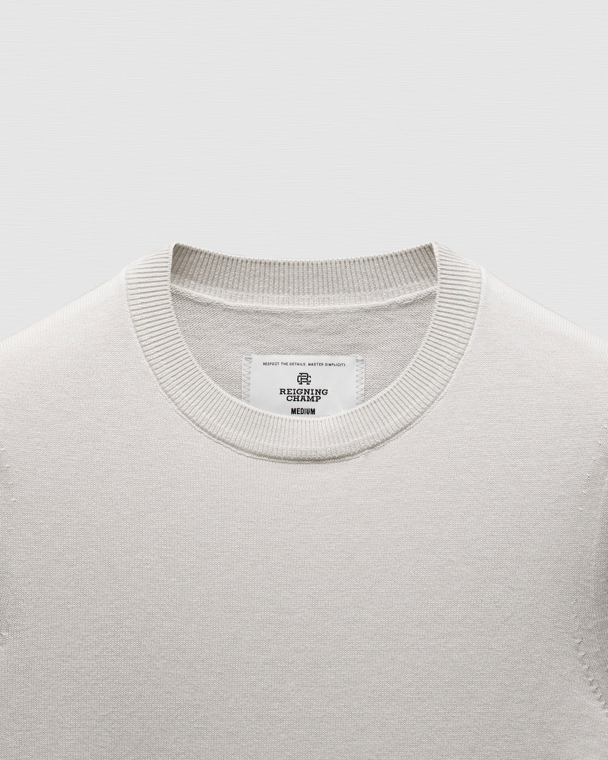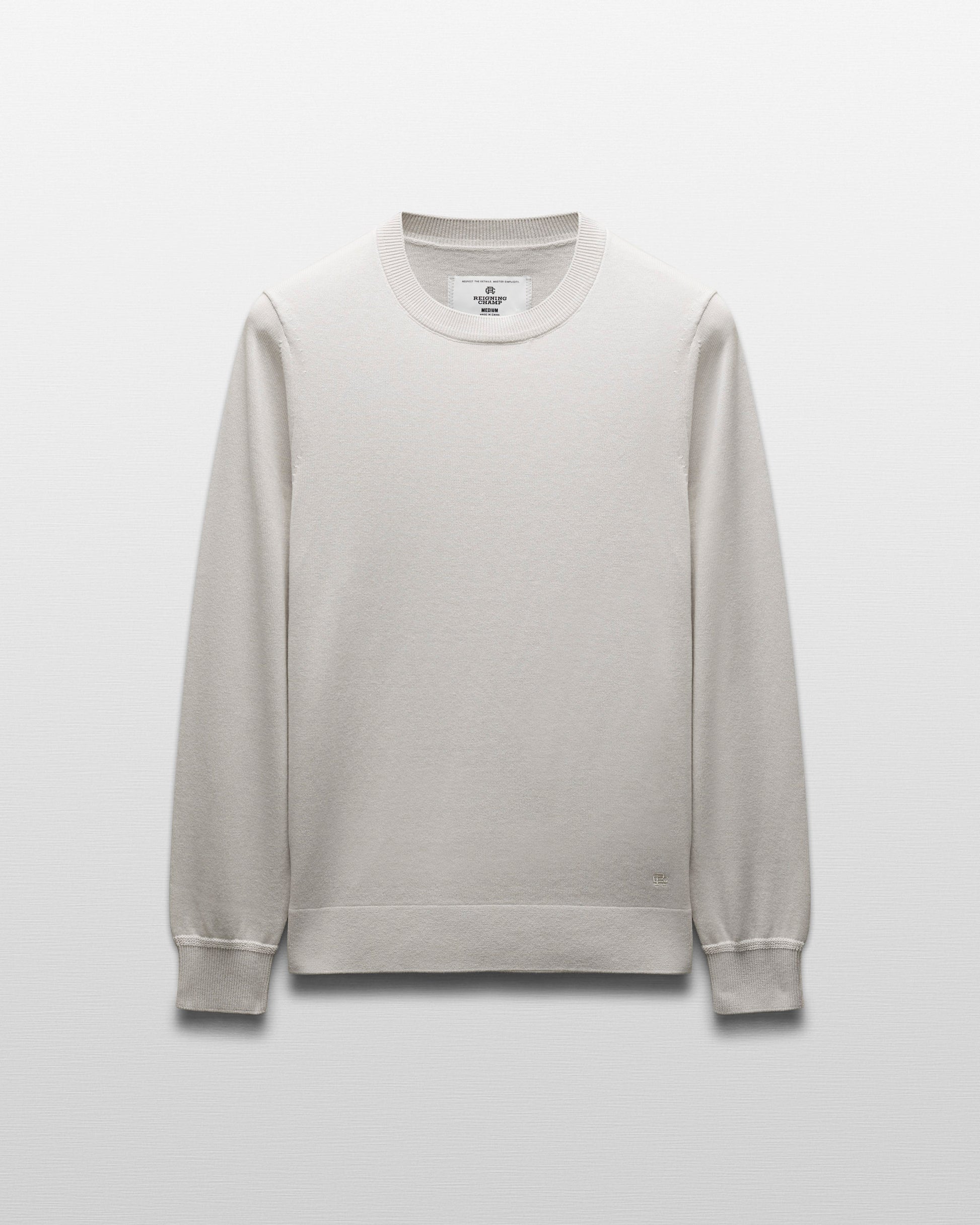 This compact knit crewneck sweater is crafted from a midweight blend of cotton and cashmere. Featuring a standard fit, with fully fashioned seams. Designed with a rib knit collar, full needle side gussets, and lycra-blended cuffs and waist hem for added durability.