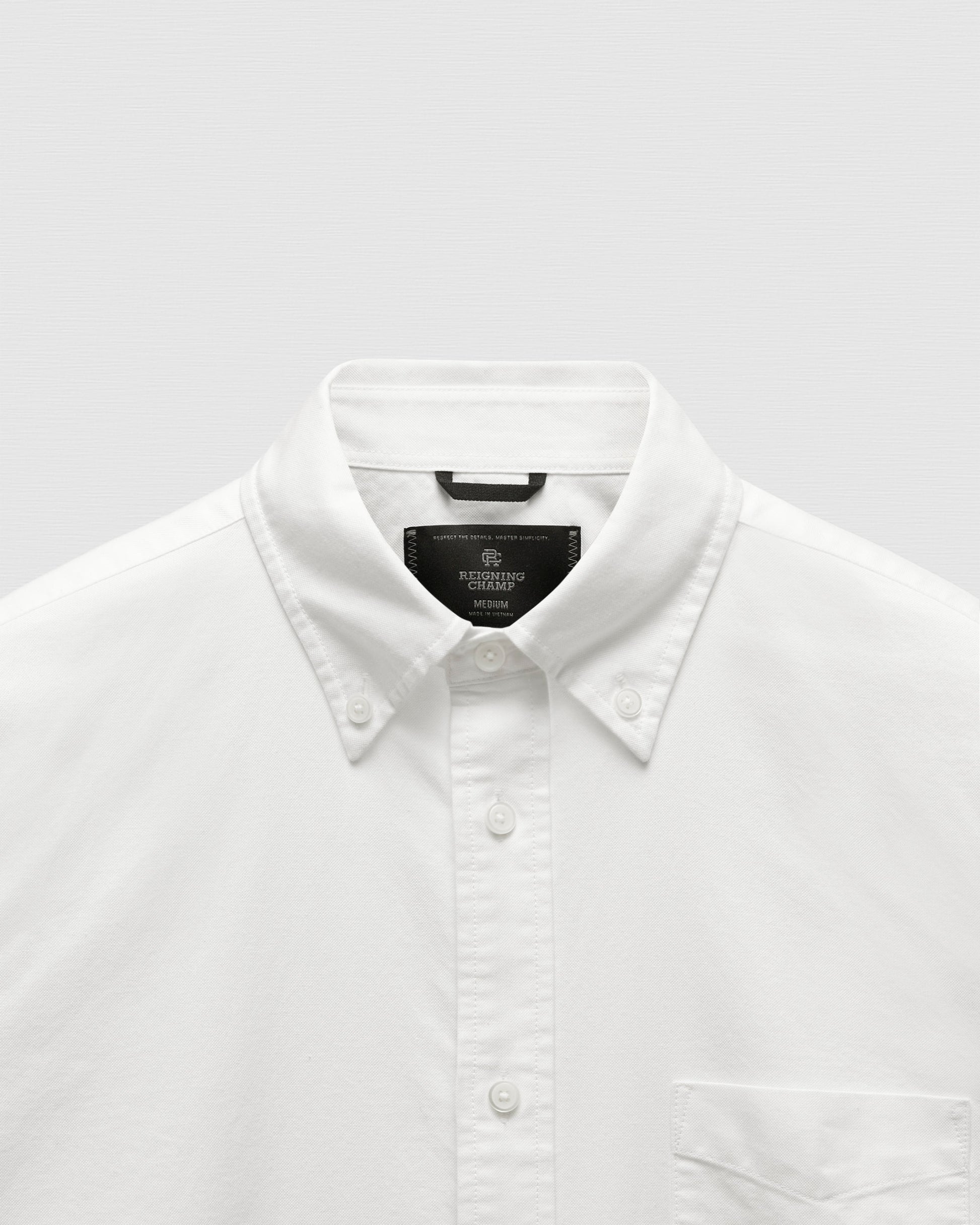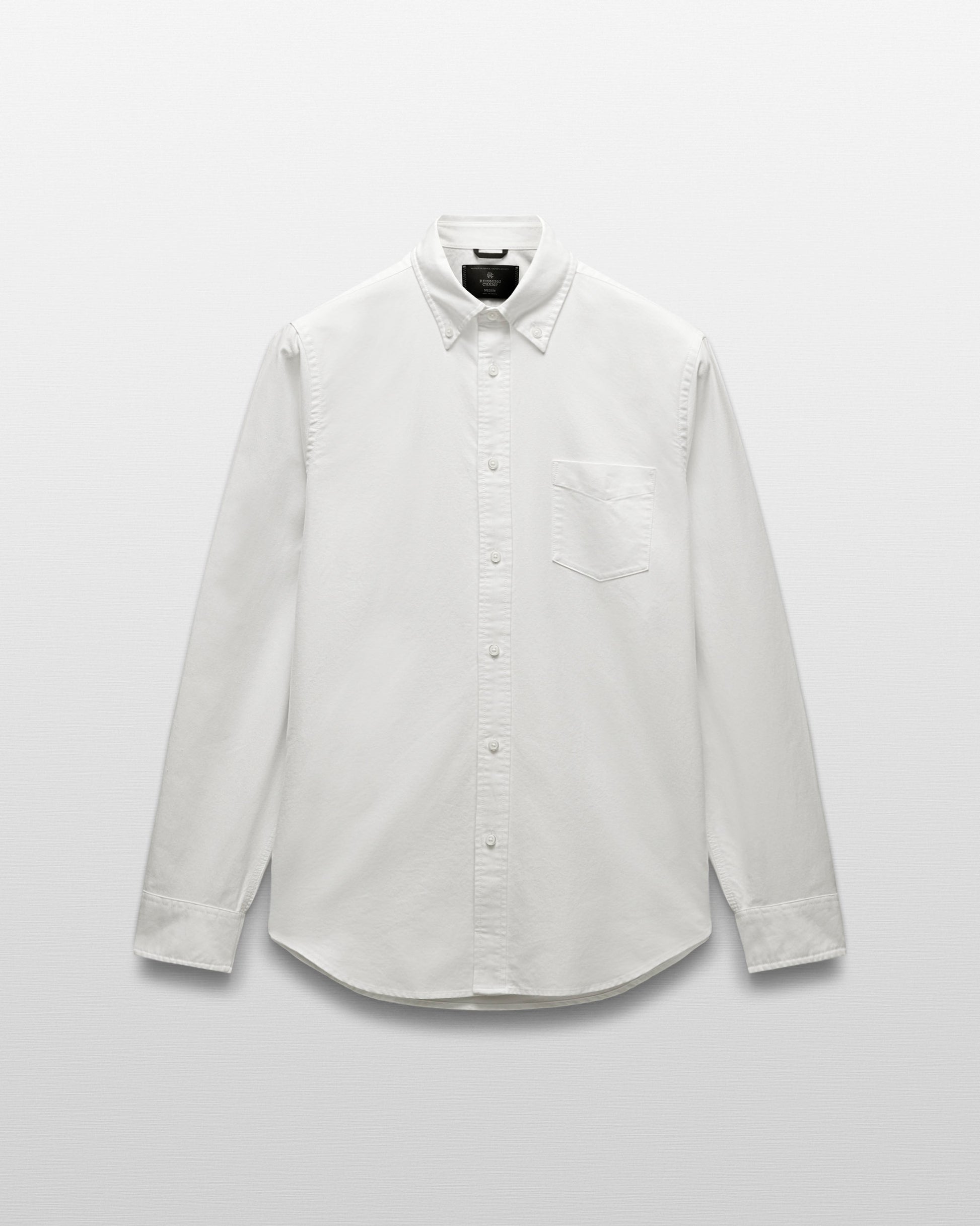 This button down shirt is crafted from classic cotton oxford in a versatile, year-round weight. Designed in a standard fit to complement all body types, with side gussets for a subtly tailored shape. Finished with faux shell buttons, a chest pocket, curved hem, and tonal monogram embroidery at the left cuff placket.