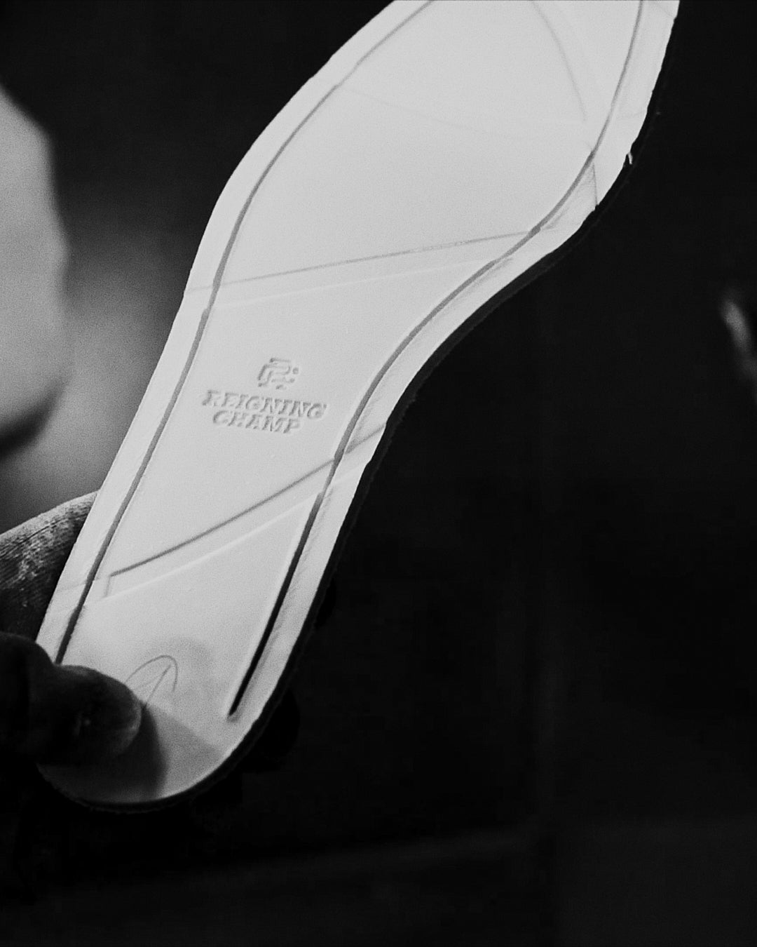 Each pair is finished with hand-painted white lacquer soles, debossed to echo the channels of a game ball and designed to patina with wear.