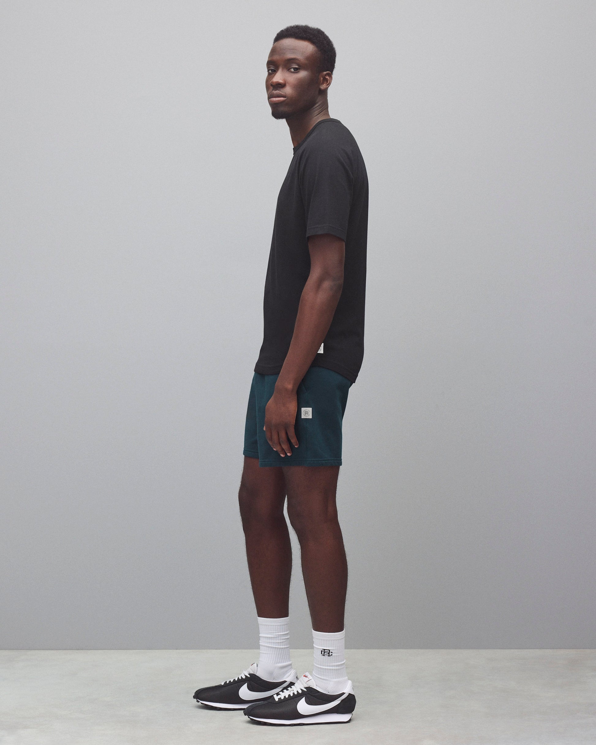 This raglan T-shirt is crafted from premium cotton with a versatile year-round weight. Cut in a standard athletic fit with balanced proportions. Designed with a durable rib-bound collar, raglan sleeves, a scooped hem, and signature flatlock seams.