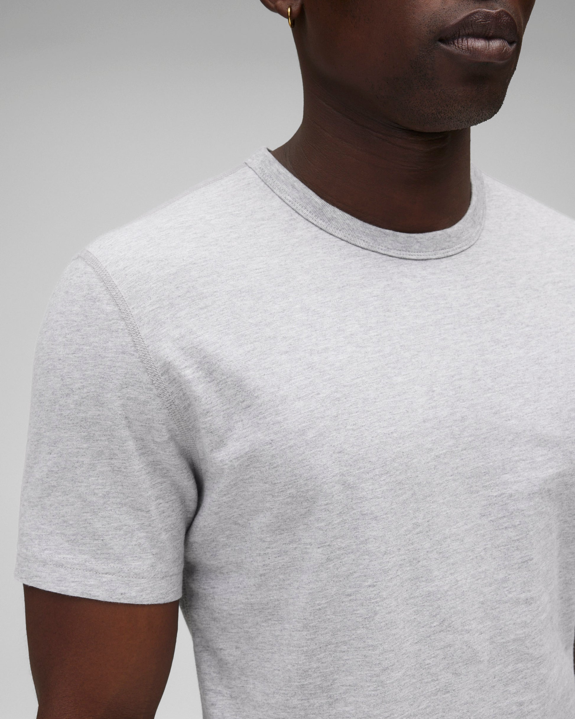Our lightweight short sleeve T-shirt is made from premium cotton with a fine handfeel and a durable, lasting fit. Cut in a true slim fit that tapers slightly toward the hem. Designed with a durable rib-bound collar, set-in sleeves, and signature flatlock seams.