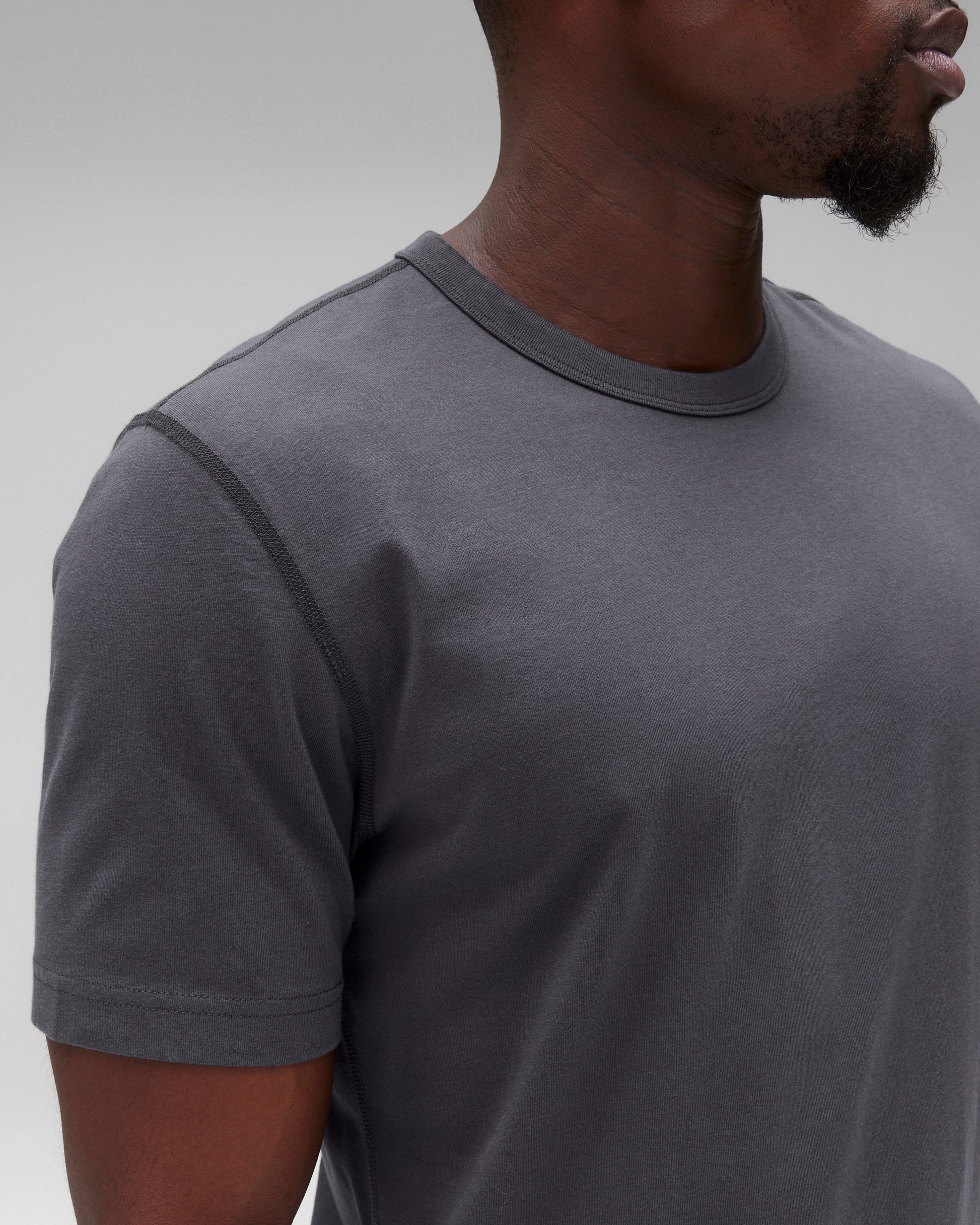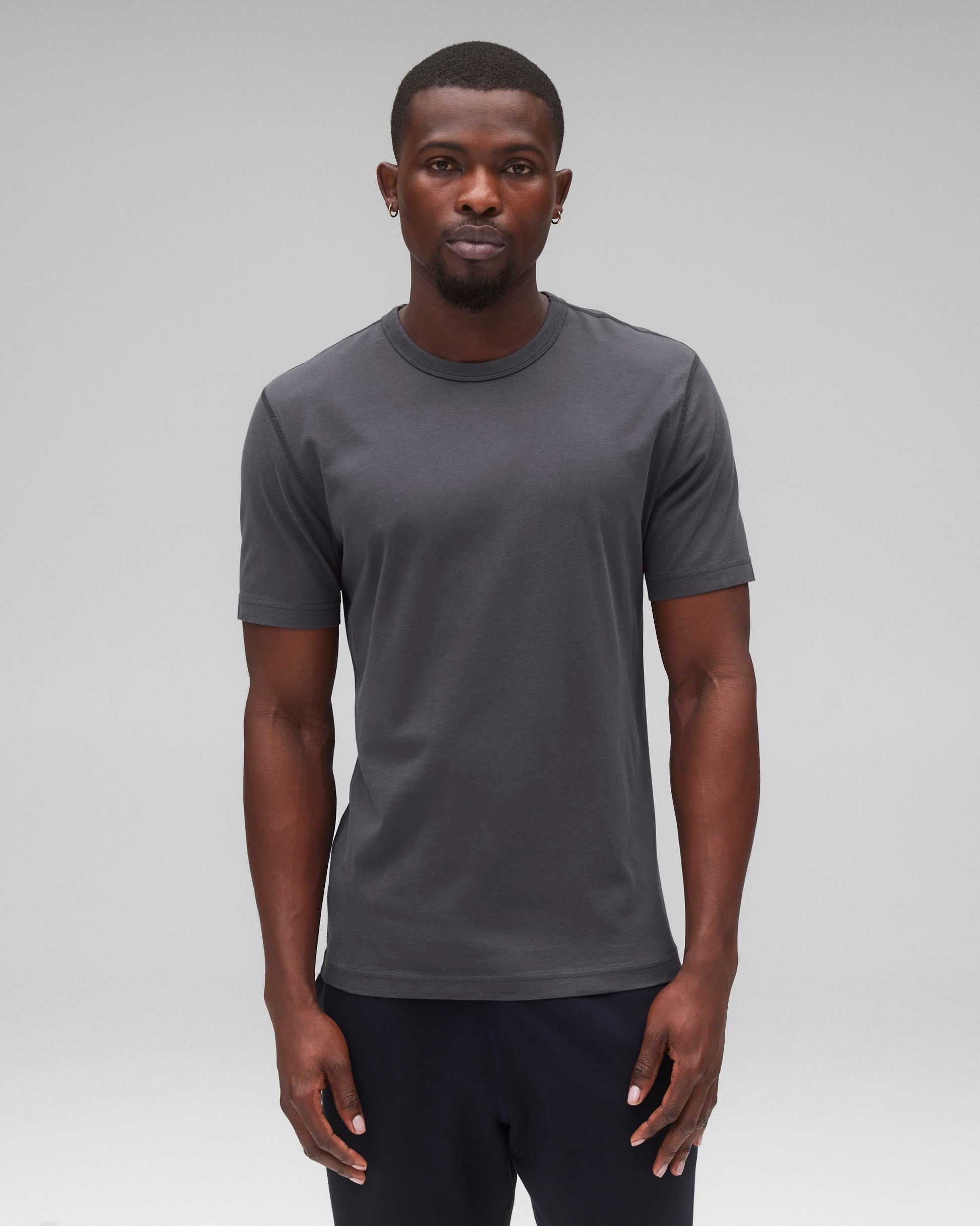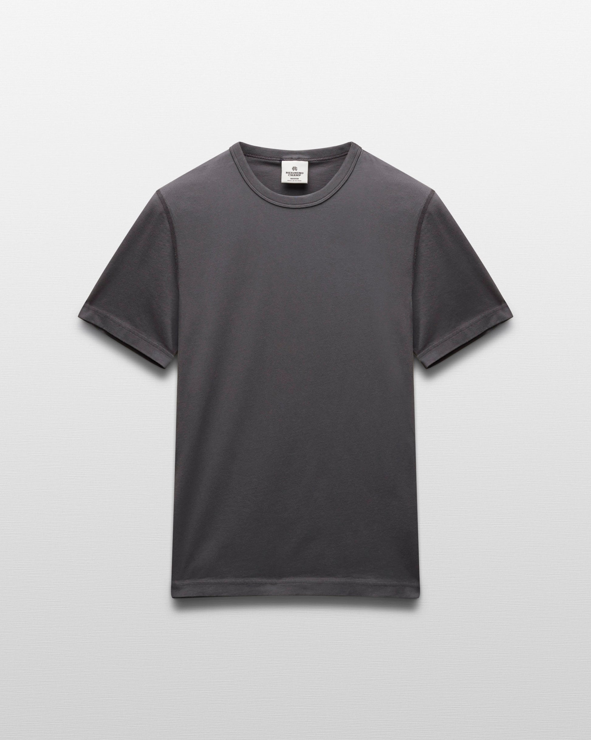 Our lightweight short sleeve T-shirt is made from premium cotton with a fine handfeel and a durable, lasting fit. Cut in a true slim fit that tapers slightly toward the hem. Designed with a durable rib-bound collar, set-in sleeves, and signature flatlock seams.