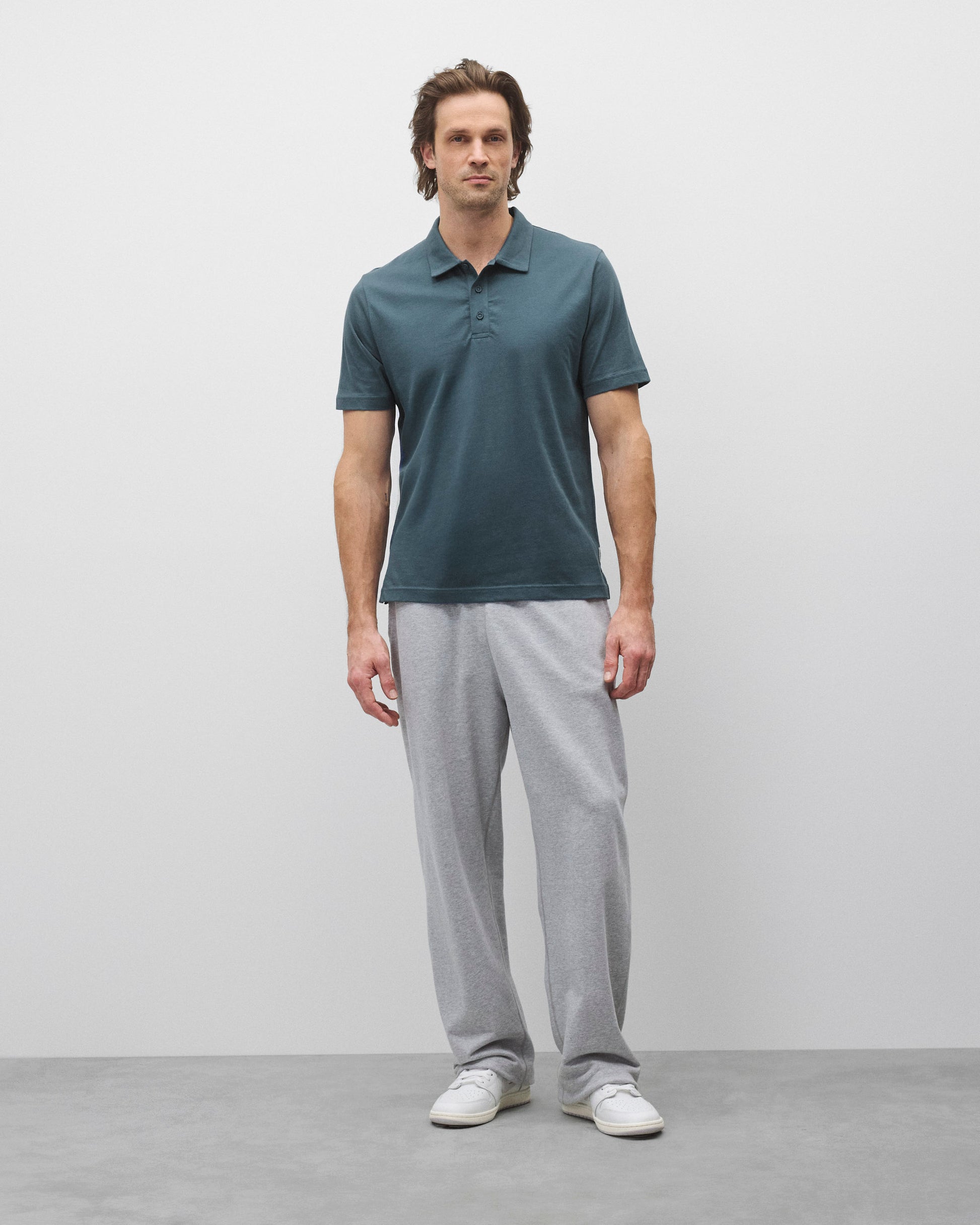 This short sleeve polo is crafted from premium cotton with a versatile year-round weight. Cut in a standard athletic fit with balanced proportions. Designed with a self-fabric collar, tonal logo buttons, set-in sleeves, side slit hem, and signature flatlock seams.