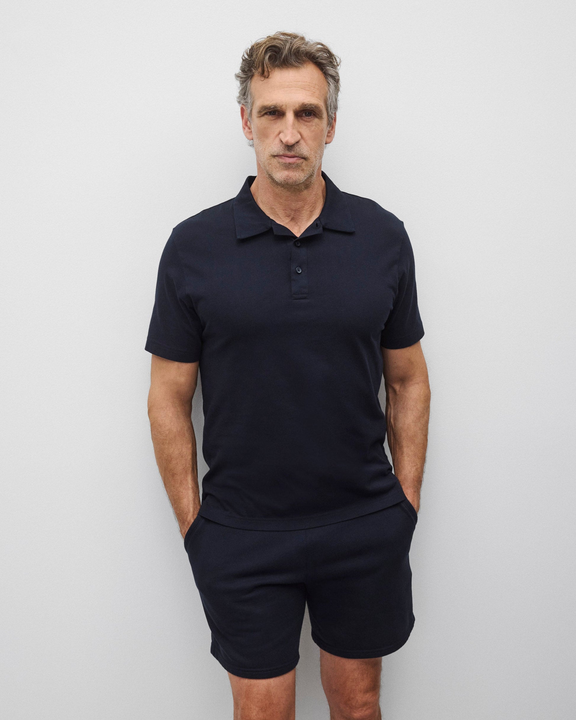 This short sleeve polo is crafted from premium cotton with a versatile year-round weight. Cut in a standard athletic fit with balanced proportions. Designed with a self-fabric collar, tonal logo buttons, set-in sleeves, side slit hem, and signature flatlock seams.