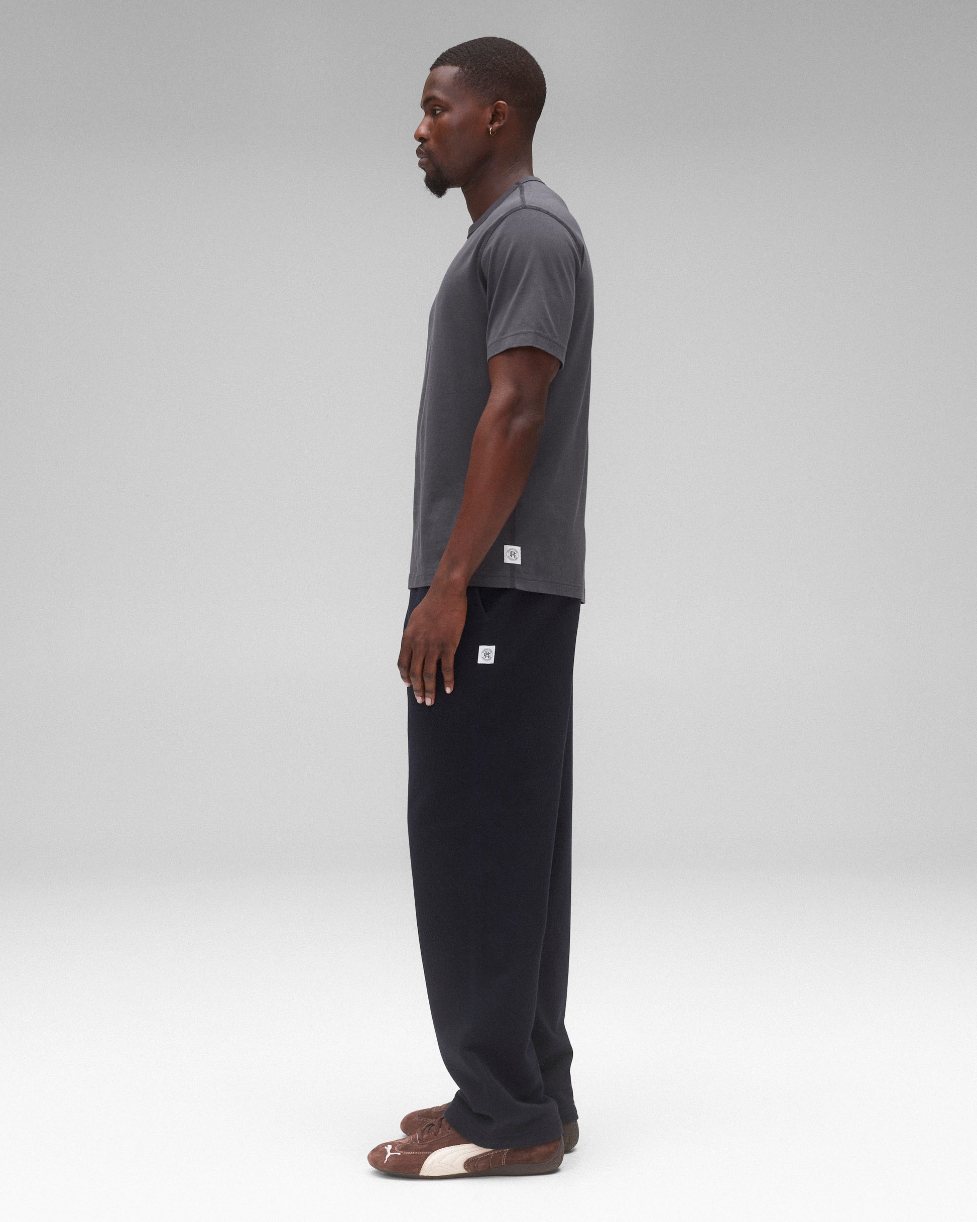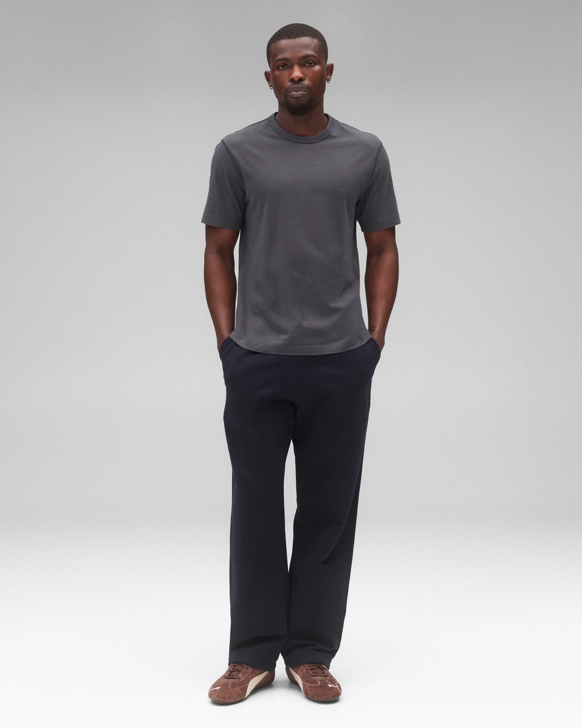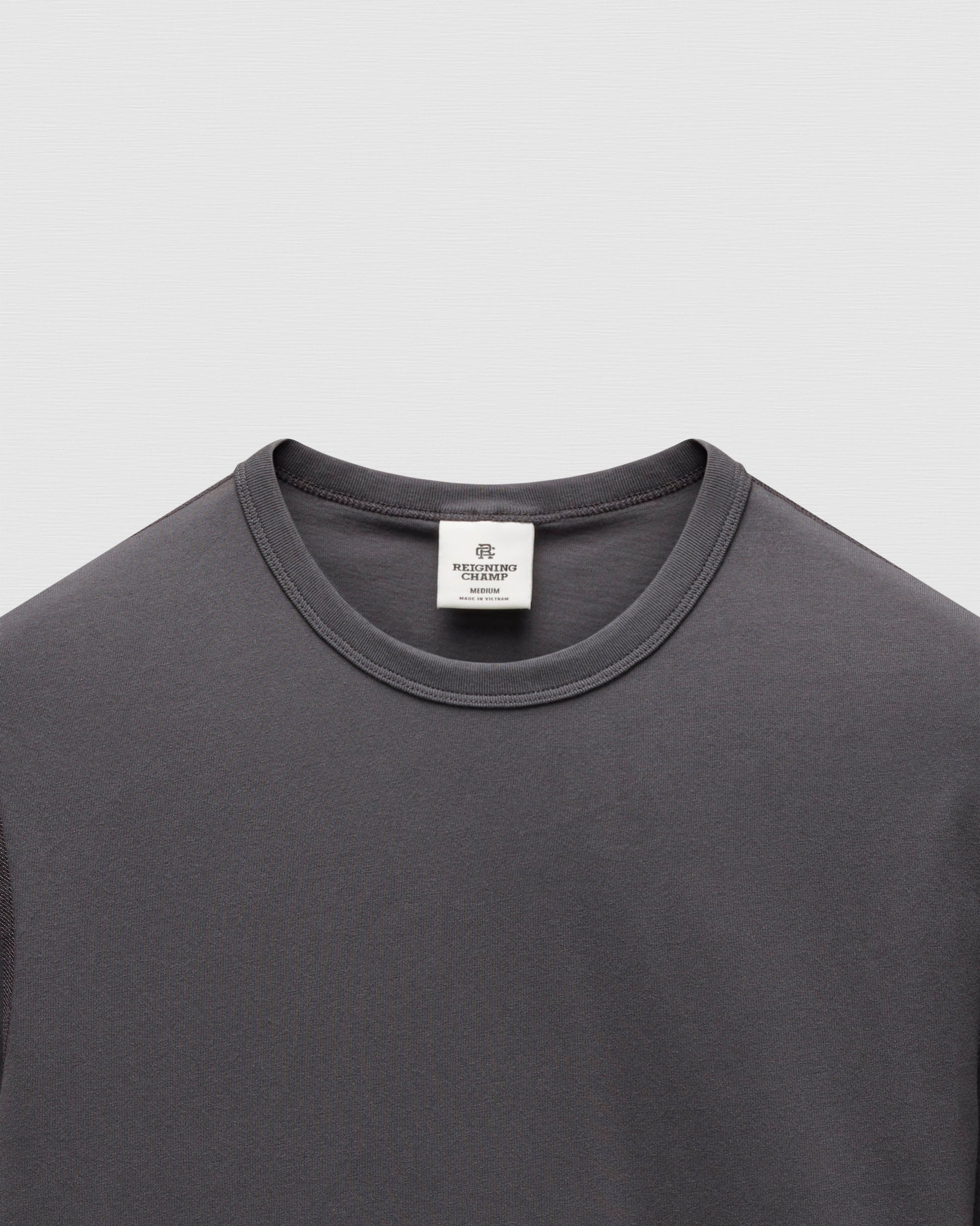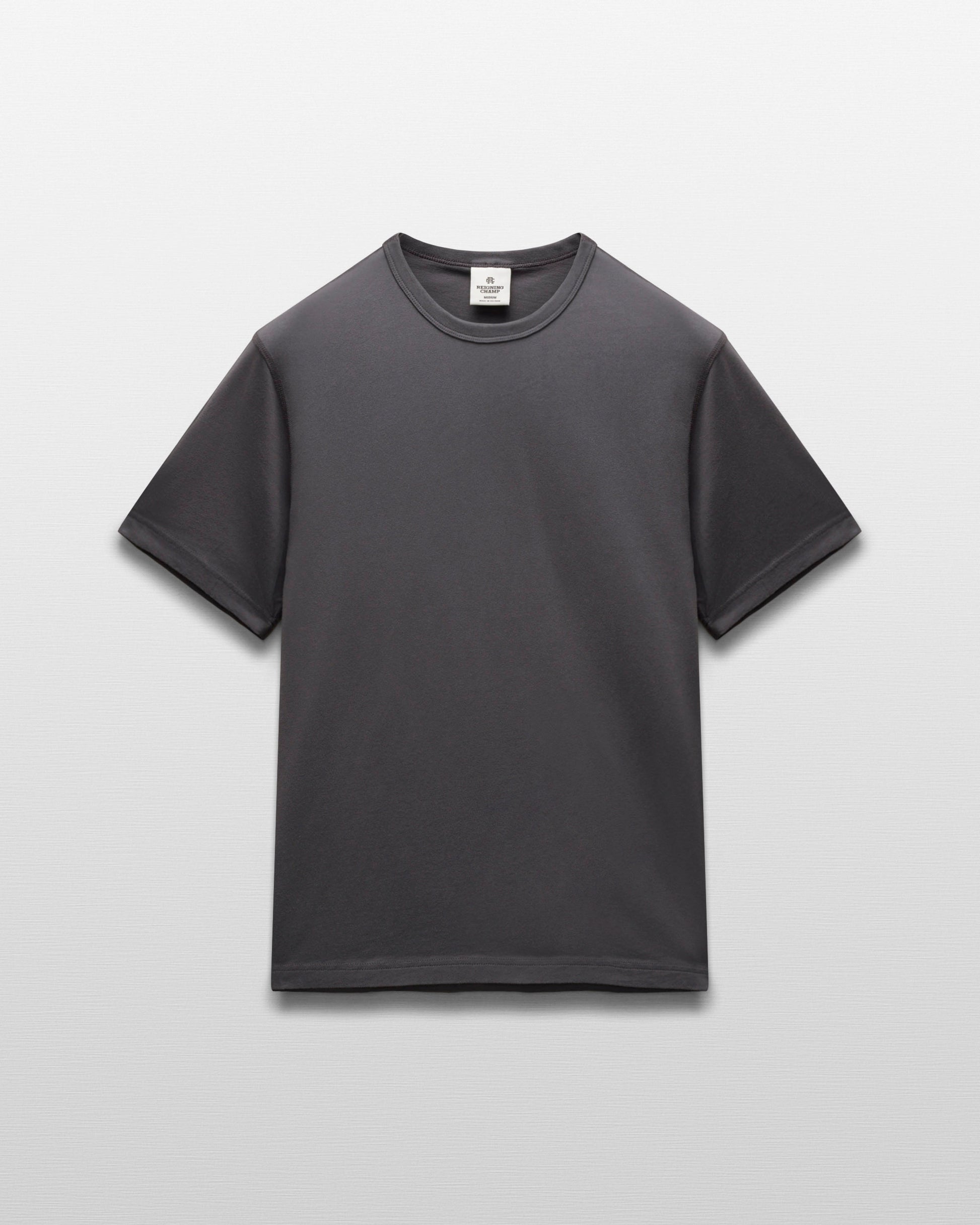 This lightweight short sleeve T-shirt is made from premium cotton with a fine handfeel and a durable, lasting fit. Cut in a standard athletic fit with balanced proportions. Designed with a durable rib-bound collar, set-in sleeves, and signature flatlock seams.