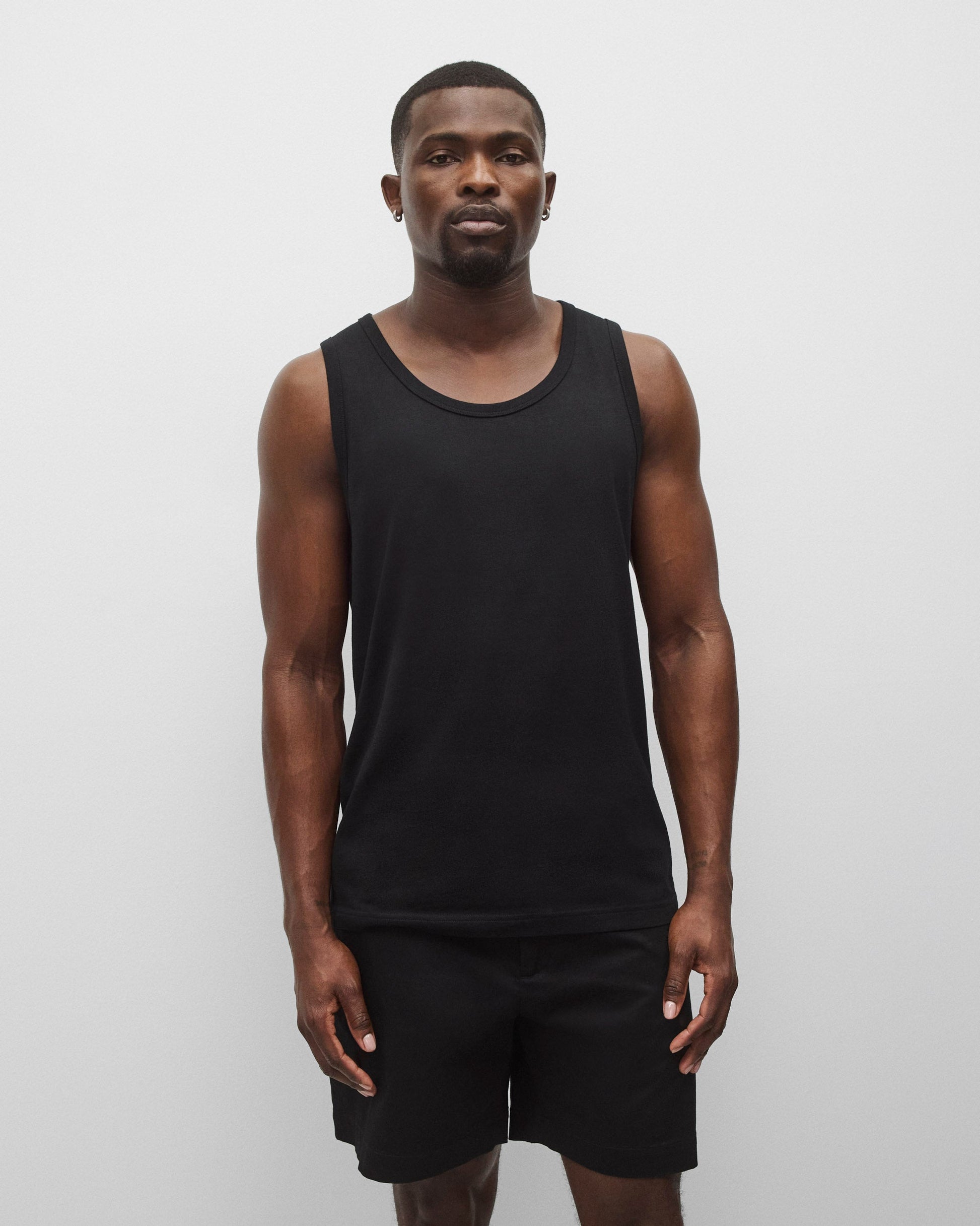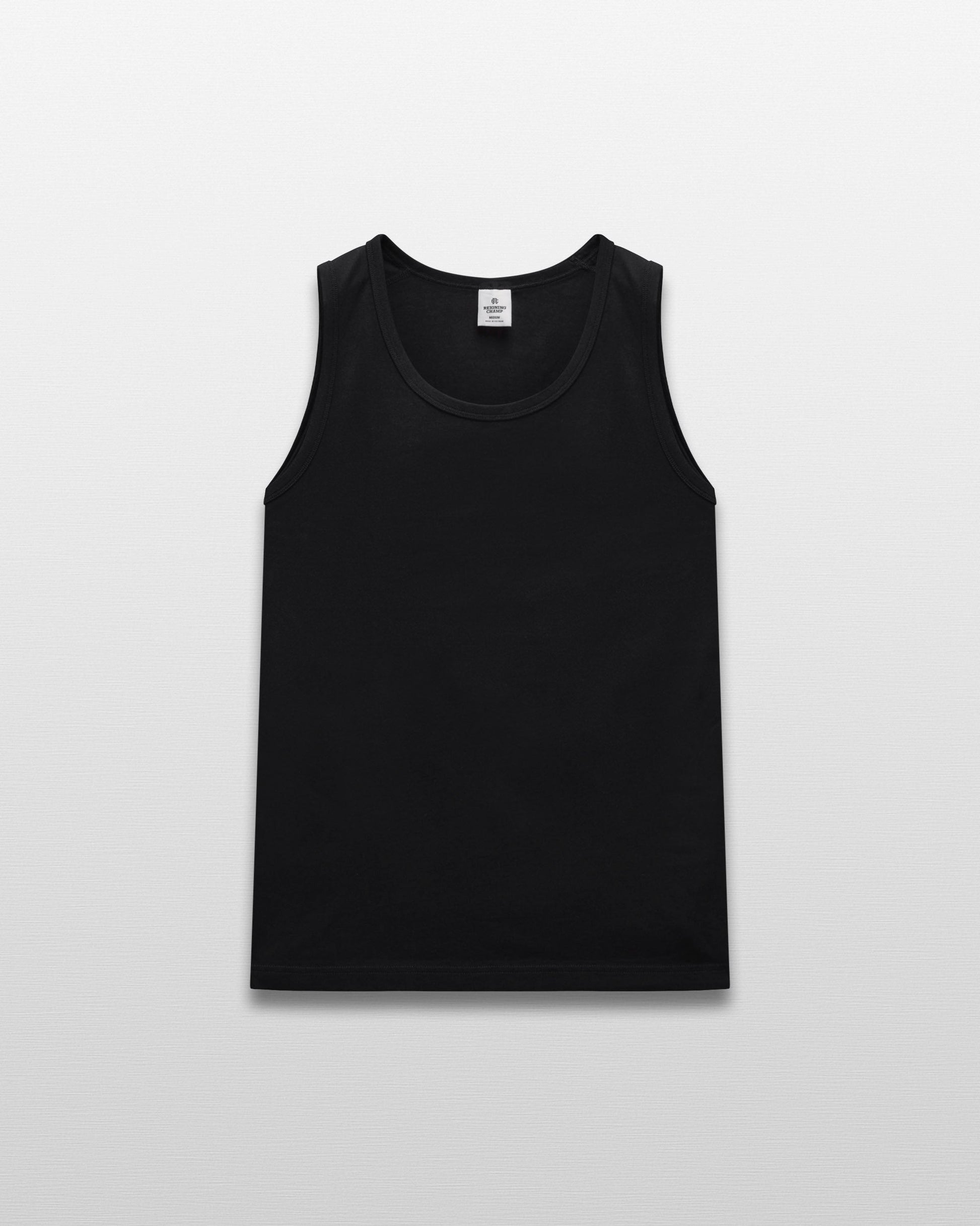 This tank top is crafted from premium cotton with a versatile year-round weight. Cut in a standard athletic fit with balanced proportions. Designed with a durable rib-bound collar and armholes, a scooped hem, and signature flatlock seams.