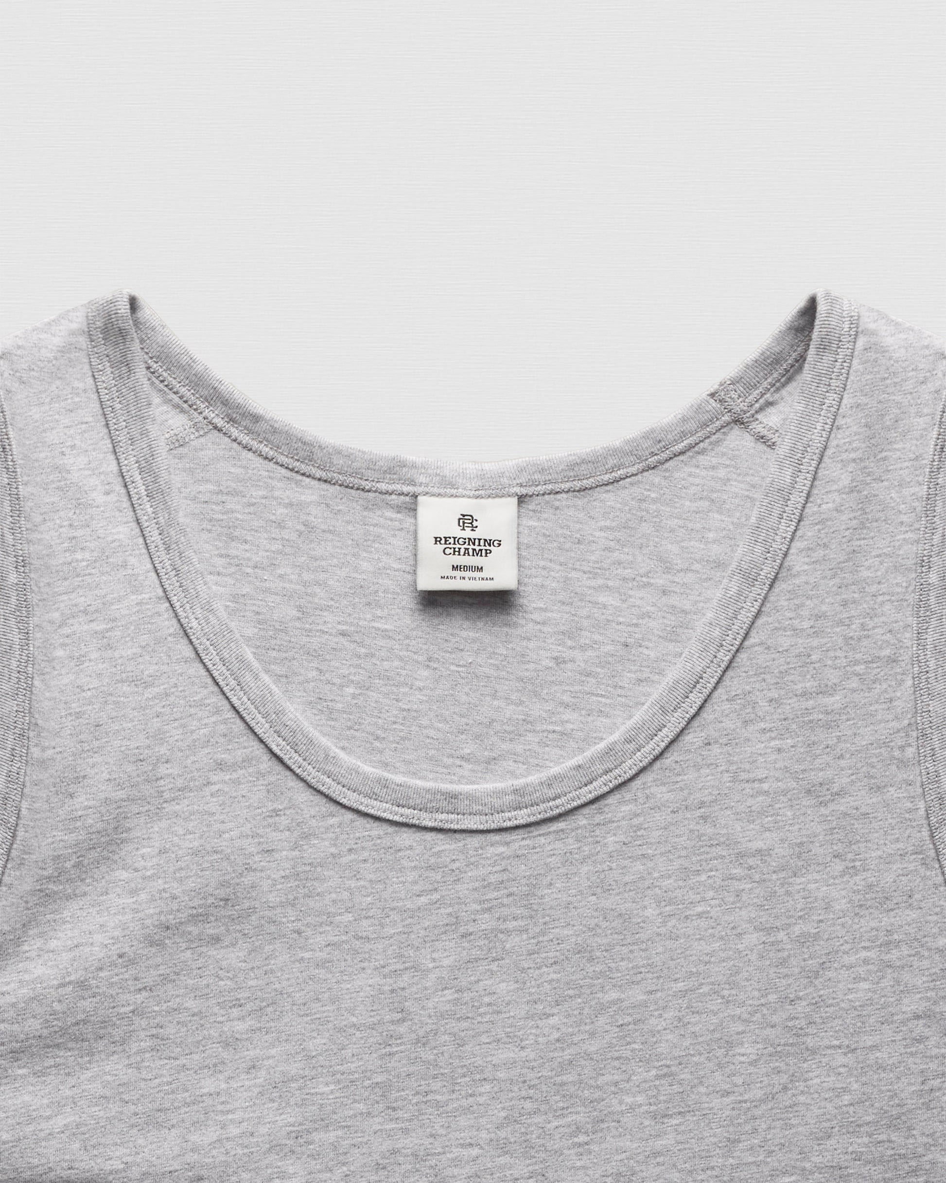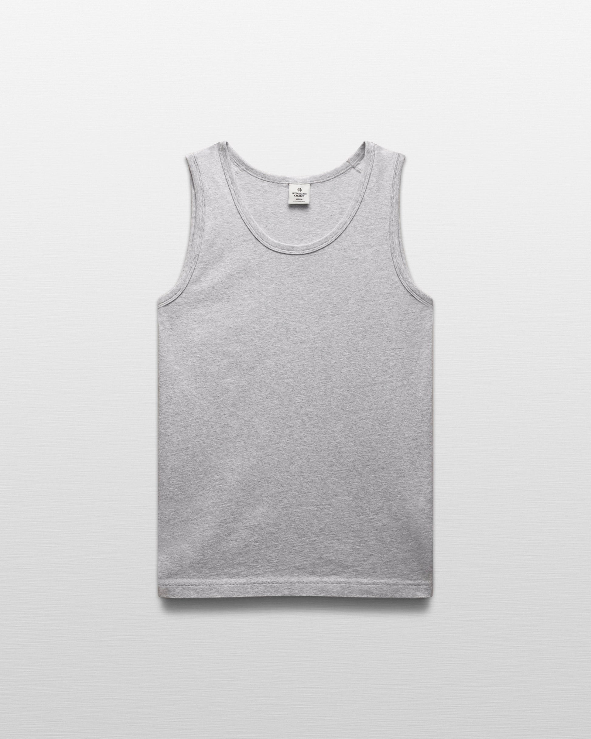 This tank top is crafted from premium cotton with a versatile year-round weight. Cut in a standard athletic fit with balanced proportions. Designed with a durable rib-bound collar and armholes, a scooped hem, and signature flatlock seams.