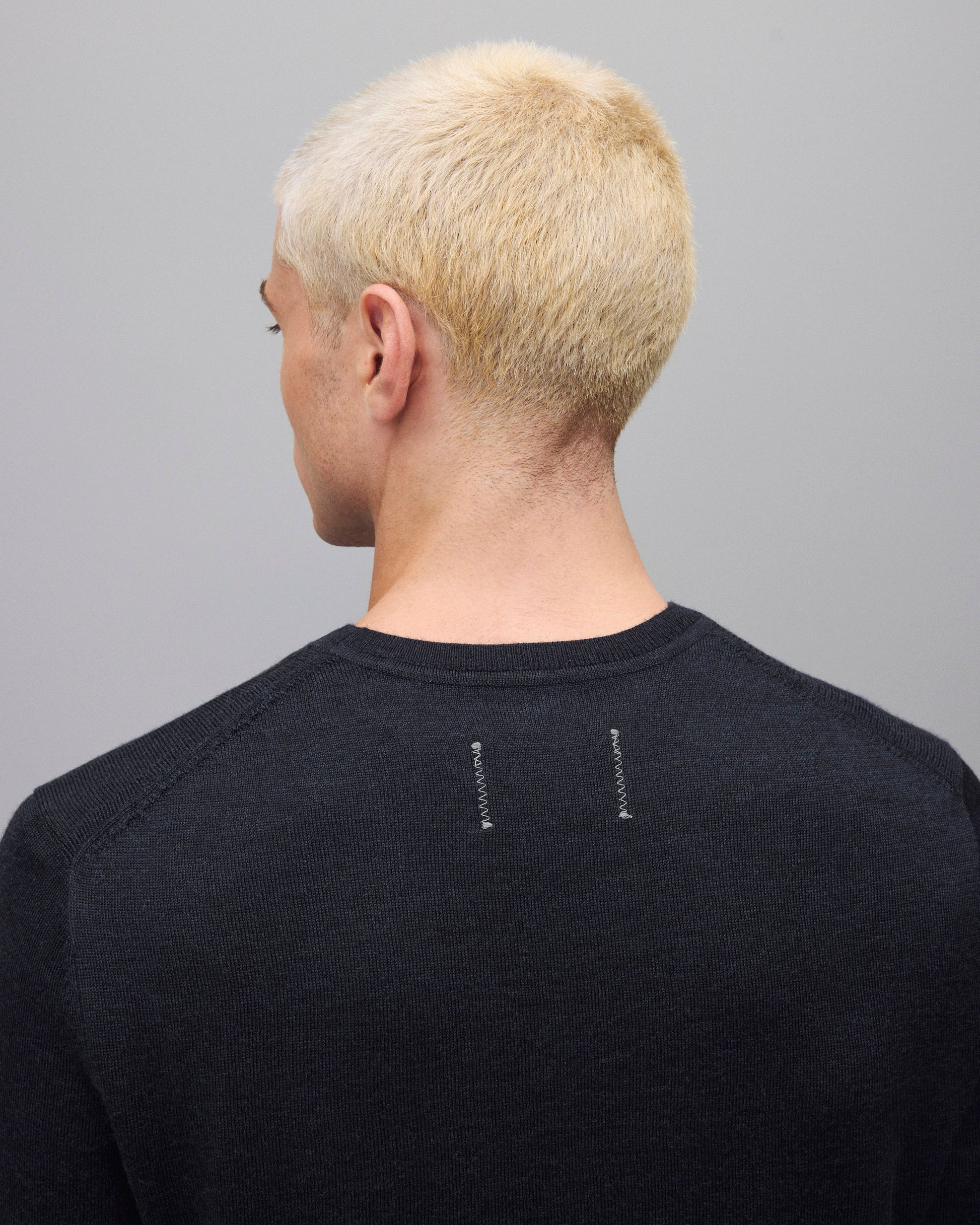 This lightweight knitted crewneck is crafted from extrafine merino wool milled in Italy. Featuring a trim fit, with fully fashioned seams. Designed with a rib knit collar, and rib cuffs and hem.