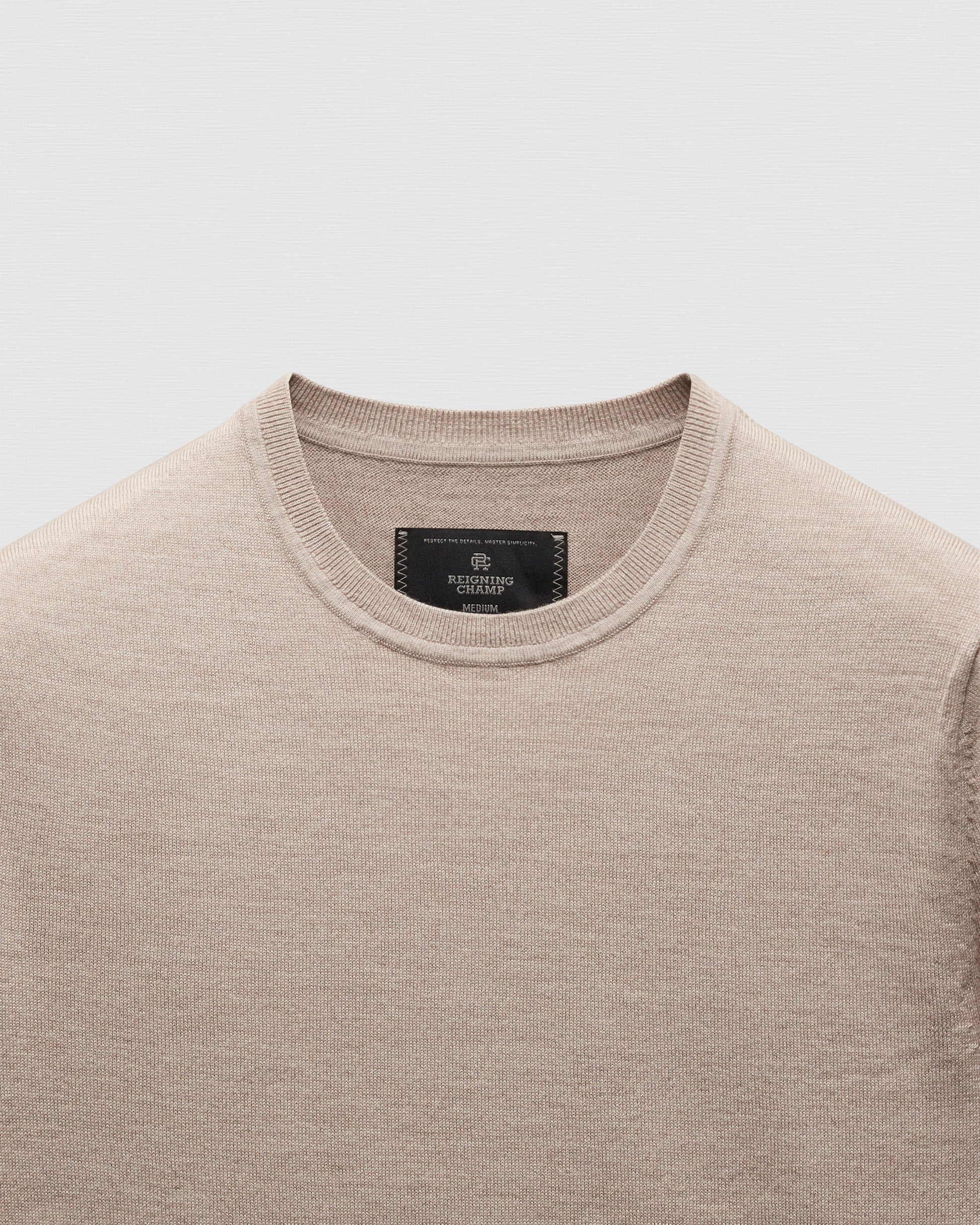 This lightweight knitted crewneck is crafted from extrafine merino wool milled in Italy. Featuring a trim fit, with fully fashioned seams. Designed with a rib knit collar, and rib cuffs and hem.