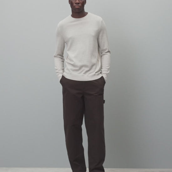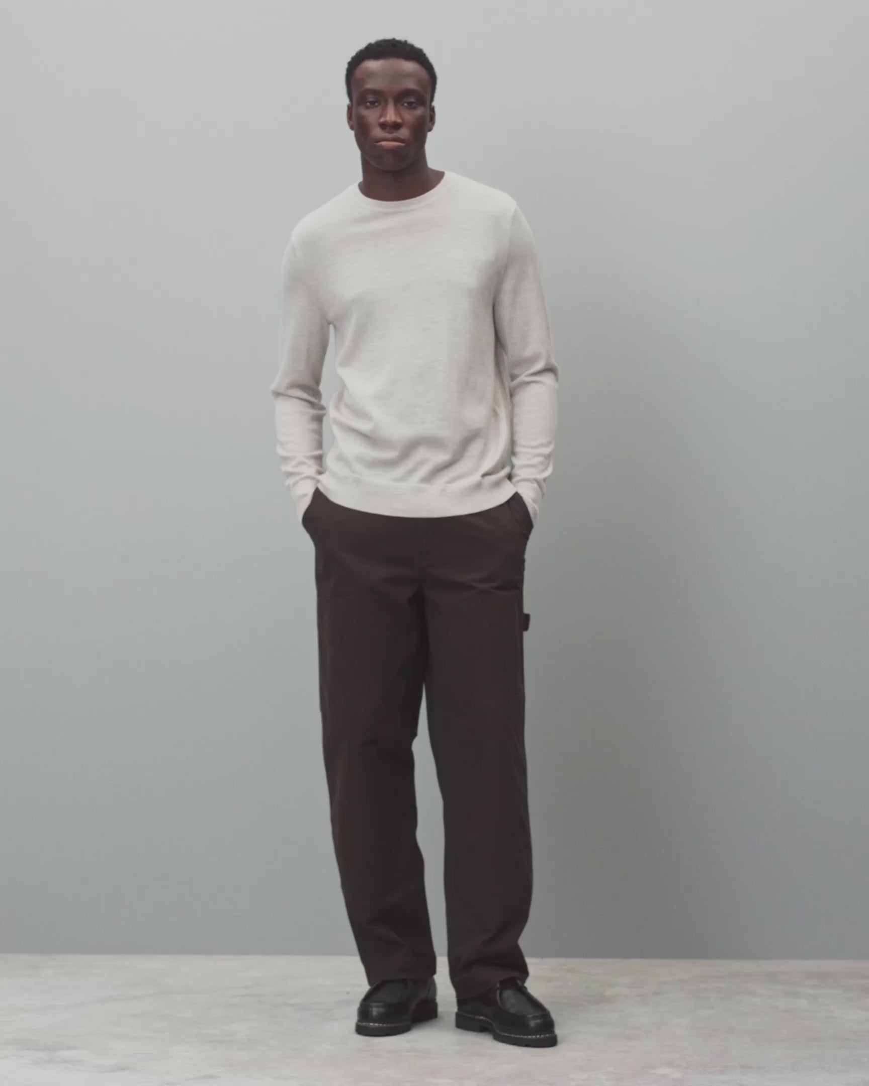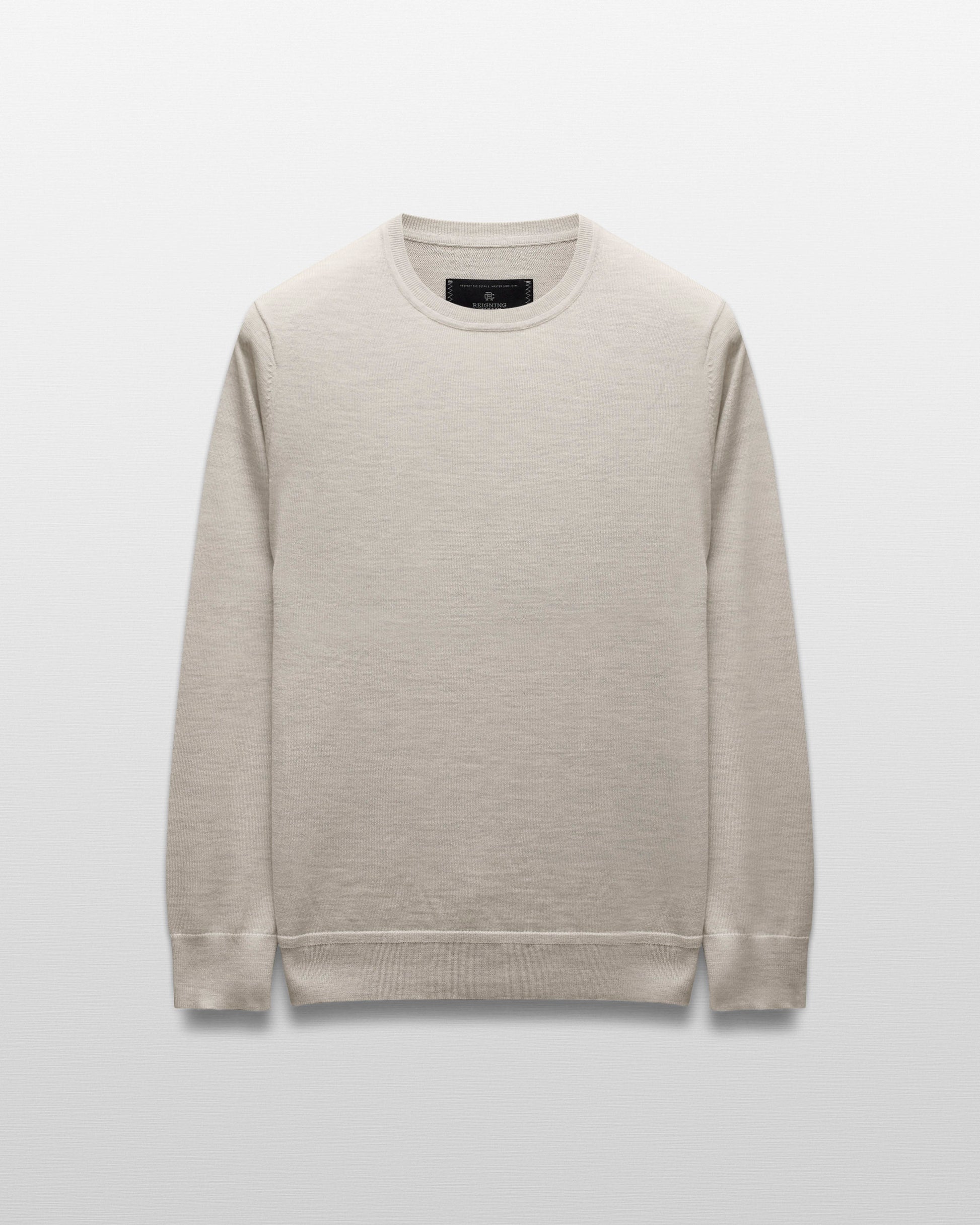 This lightweight knitted crewneck is crafted from extrafine merino wool milled in Italy. Featuring a trim fit, with fully fashioned seams. Designed with a rib knit collar, and rib cuffs and hem.