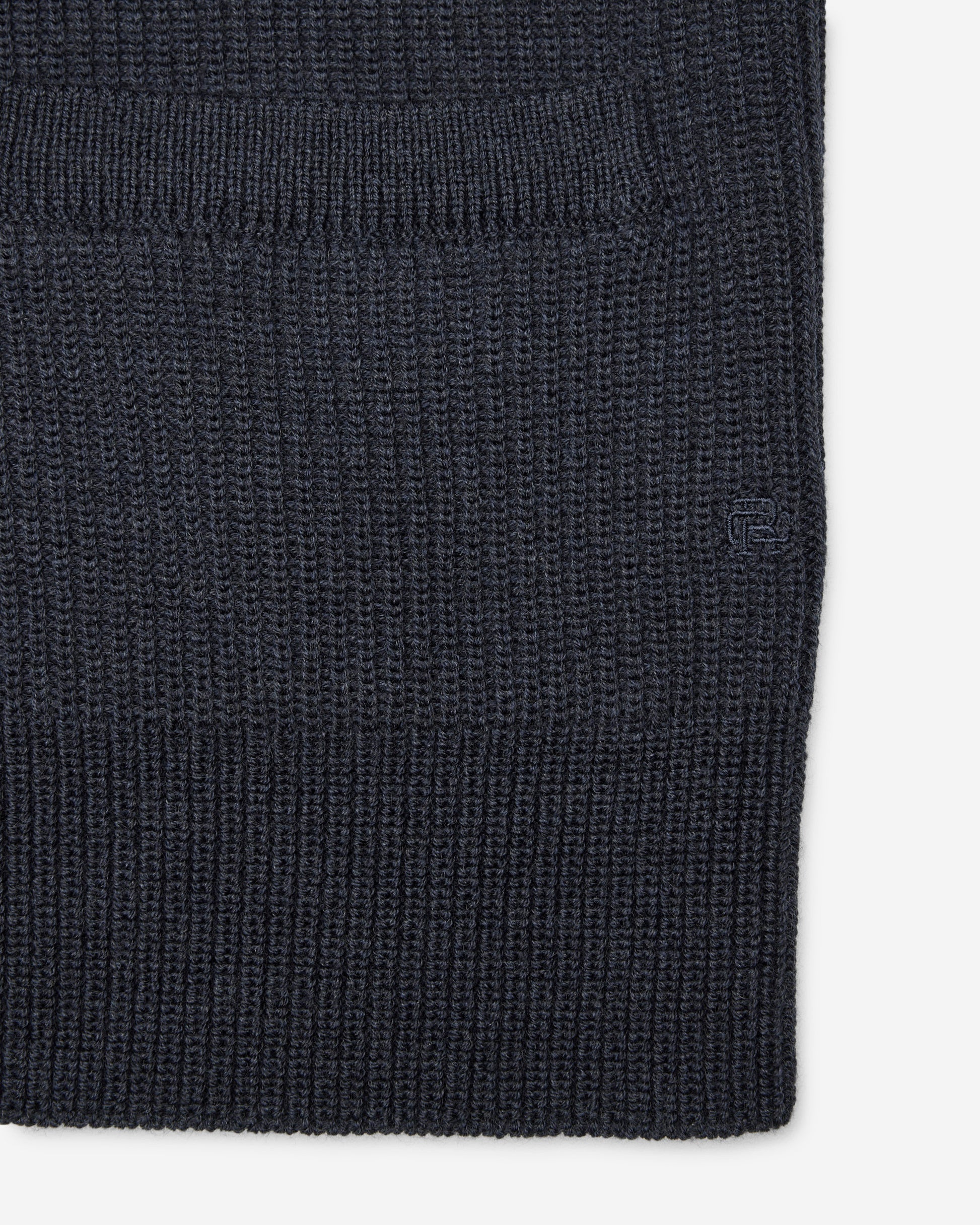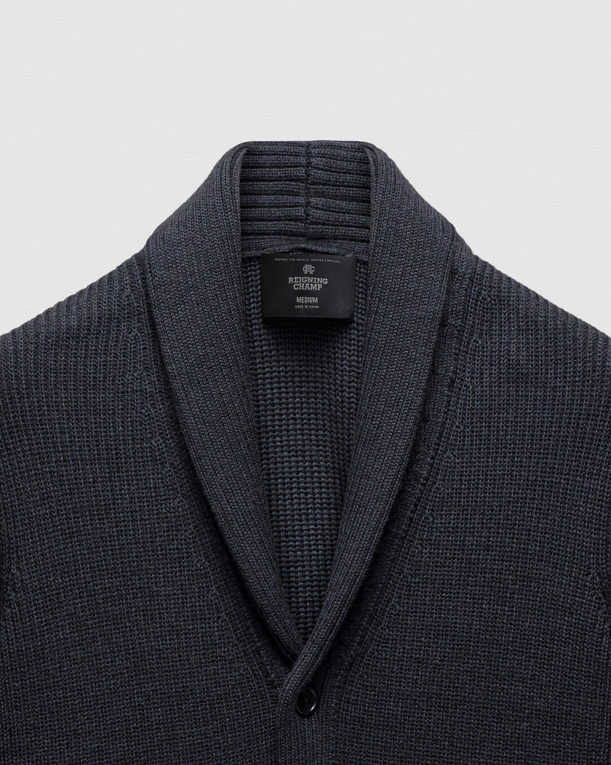 - Rib knit shawl collar and placket