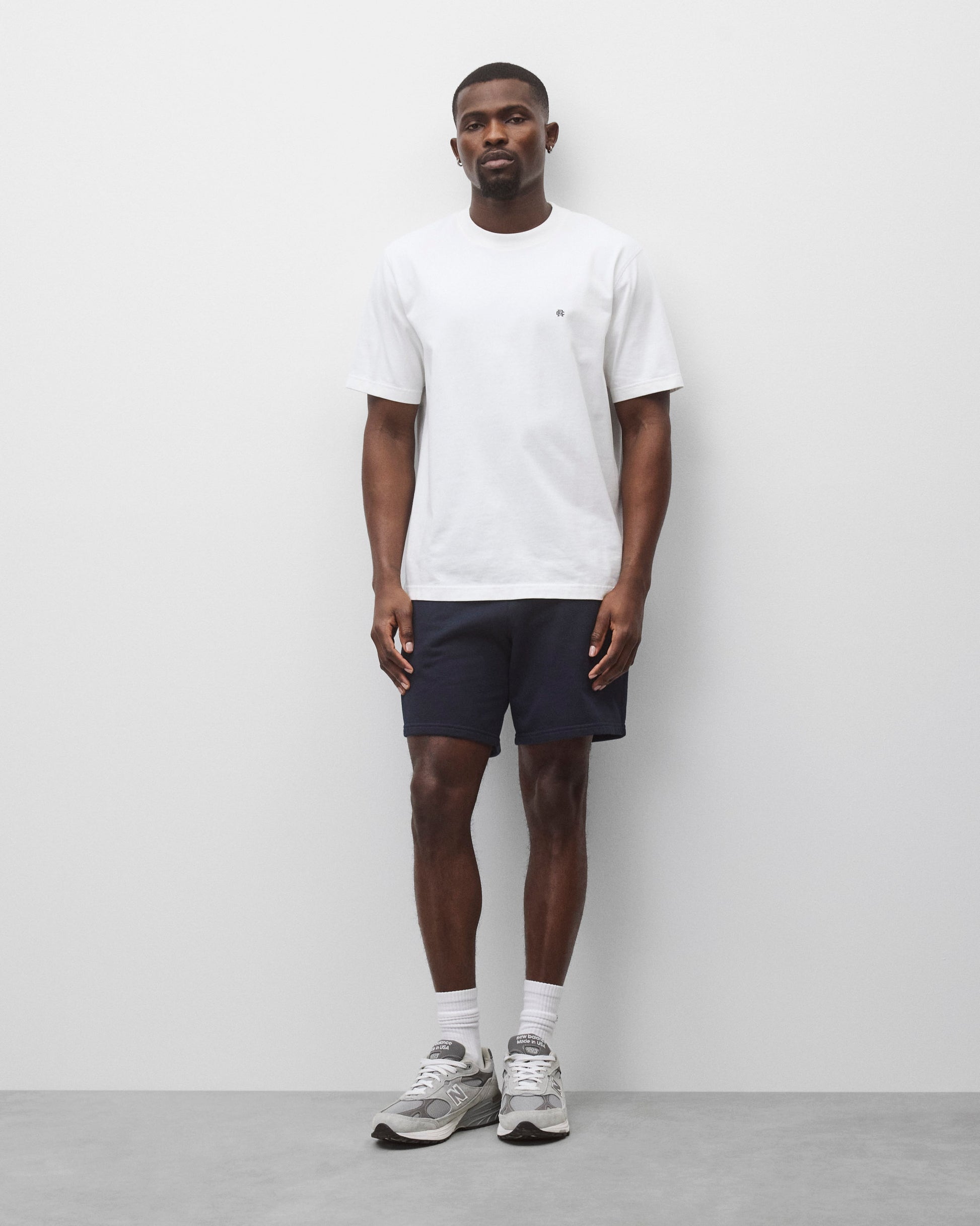 This short sleeve T-shirt is made from premium Midweight Jersey, featuring our embroidered monogram logo on the chest. Designed in the OG standard fit, with slightly dropped shoulders and a straight silhouette through the torso. Details include a rib collar, set-in sleeves, and signature flatlock construction.