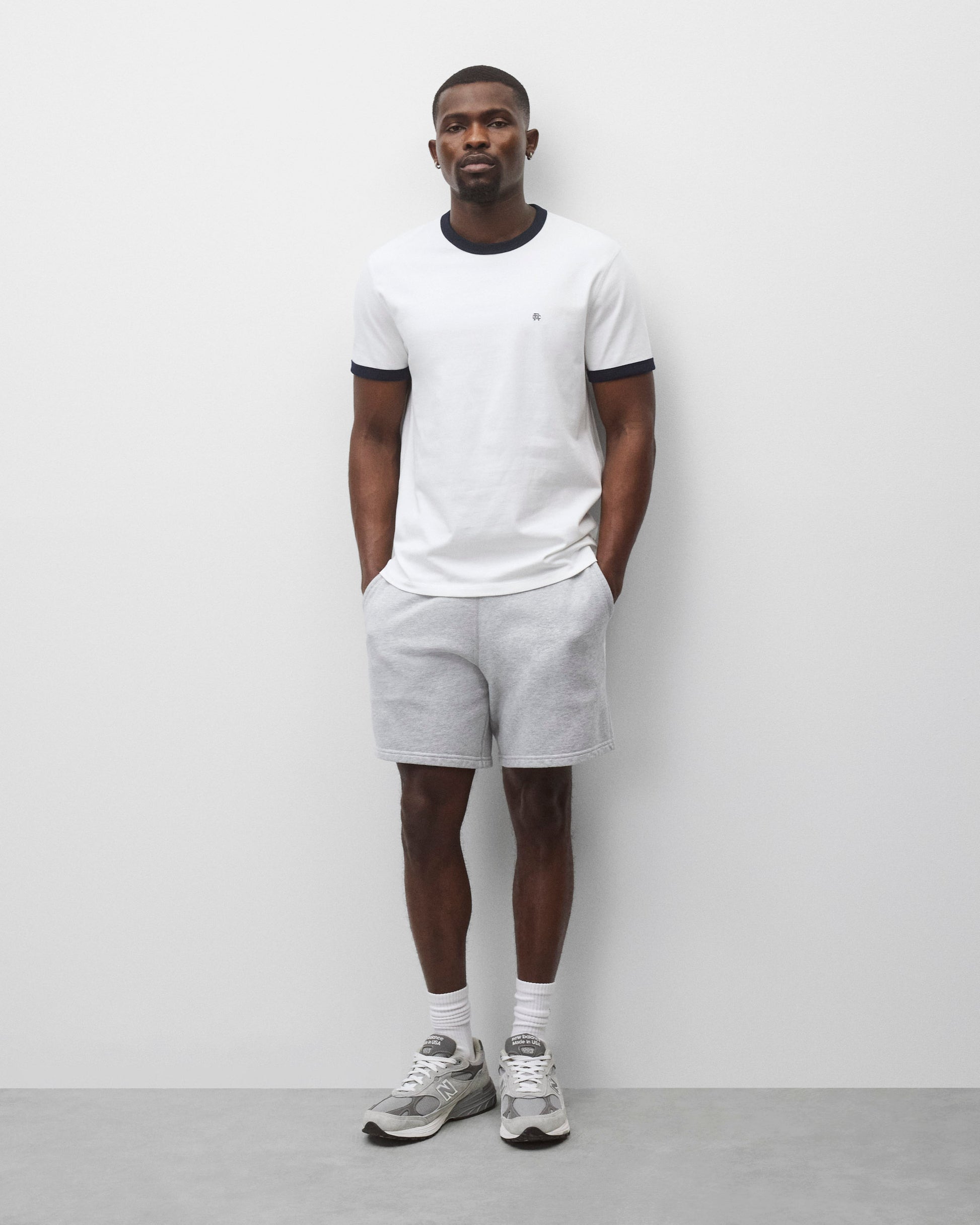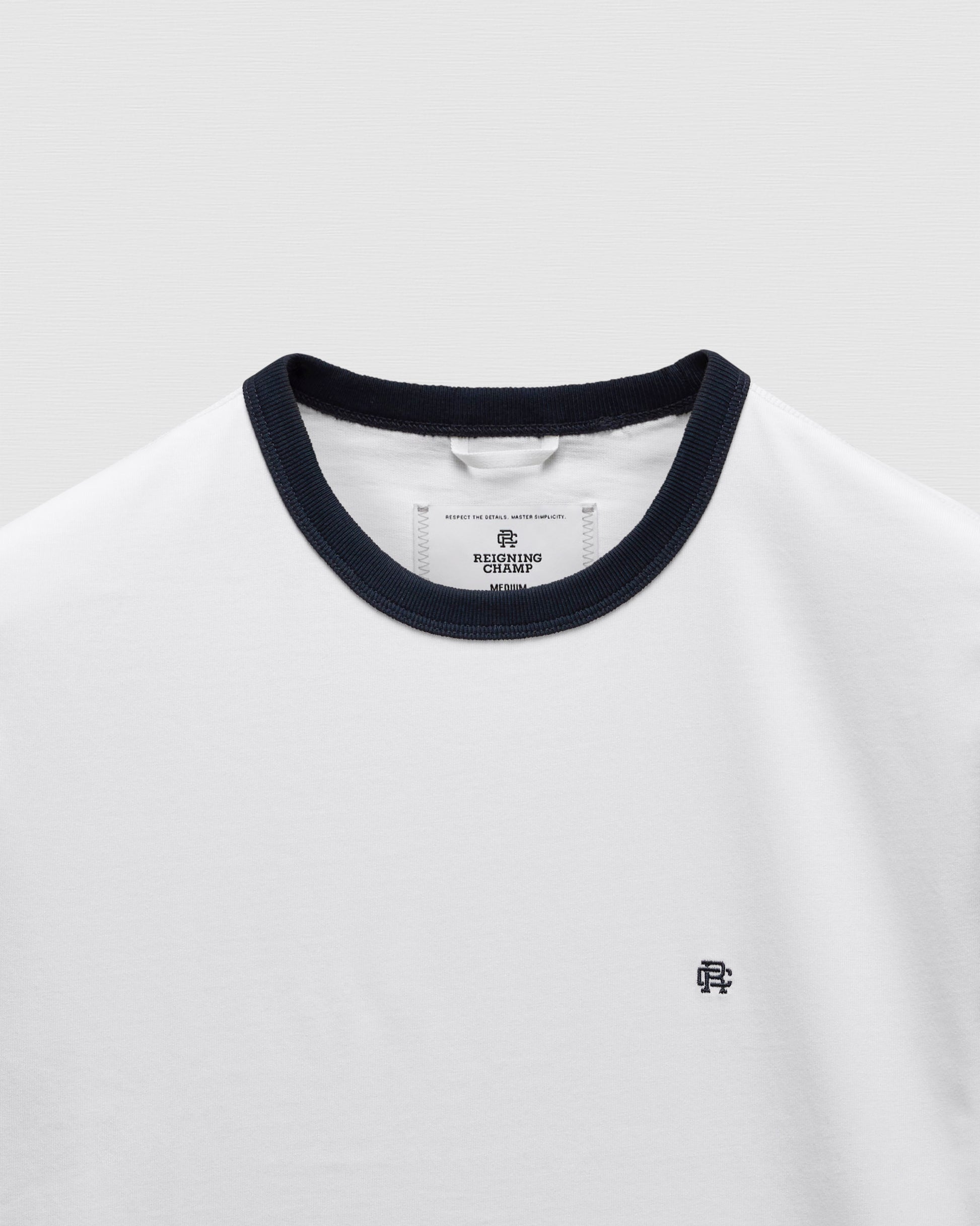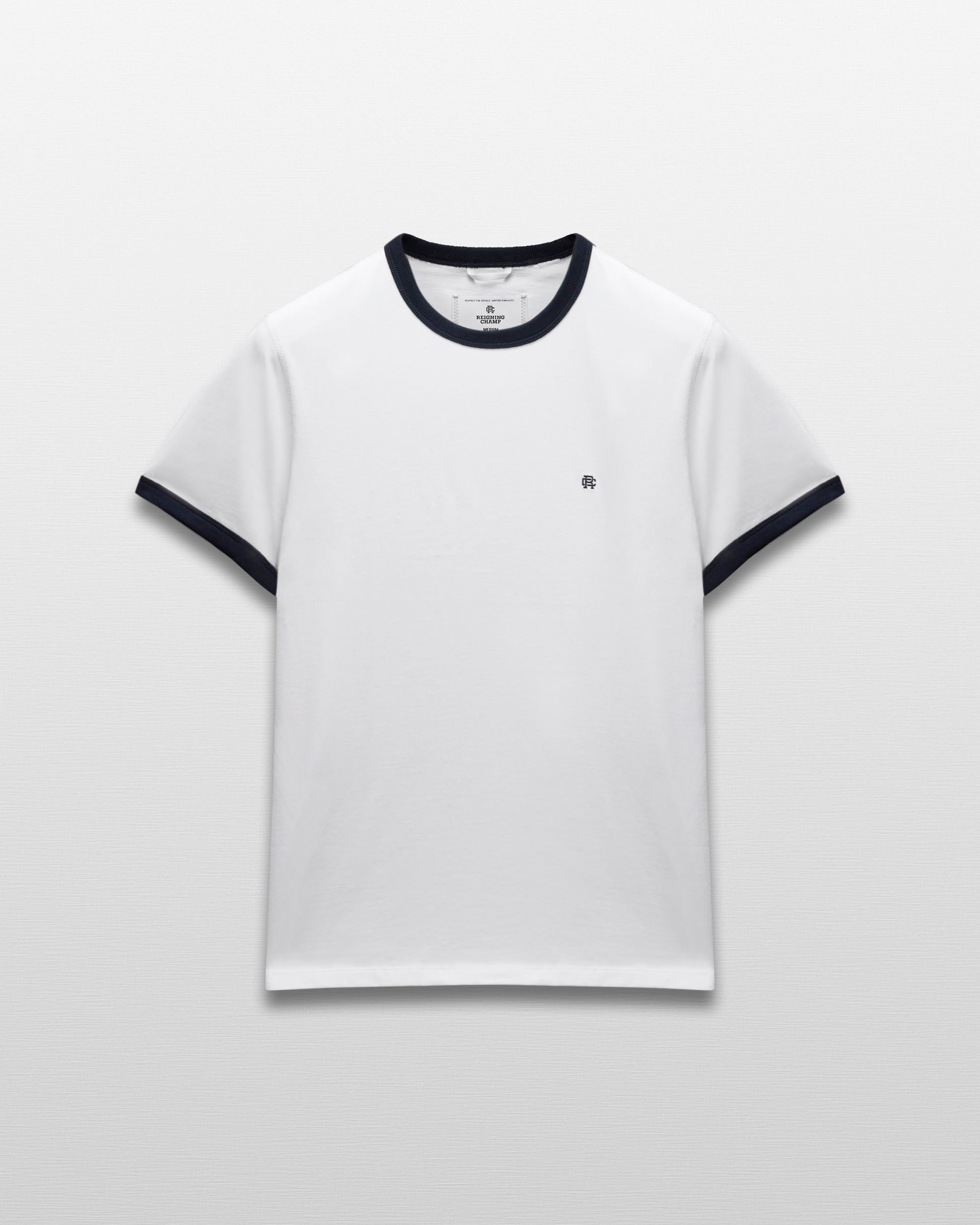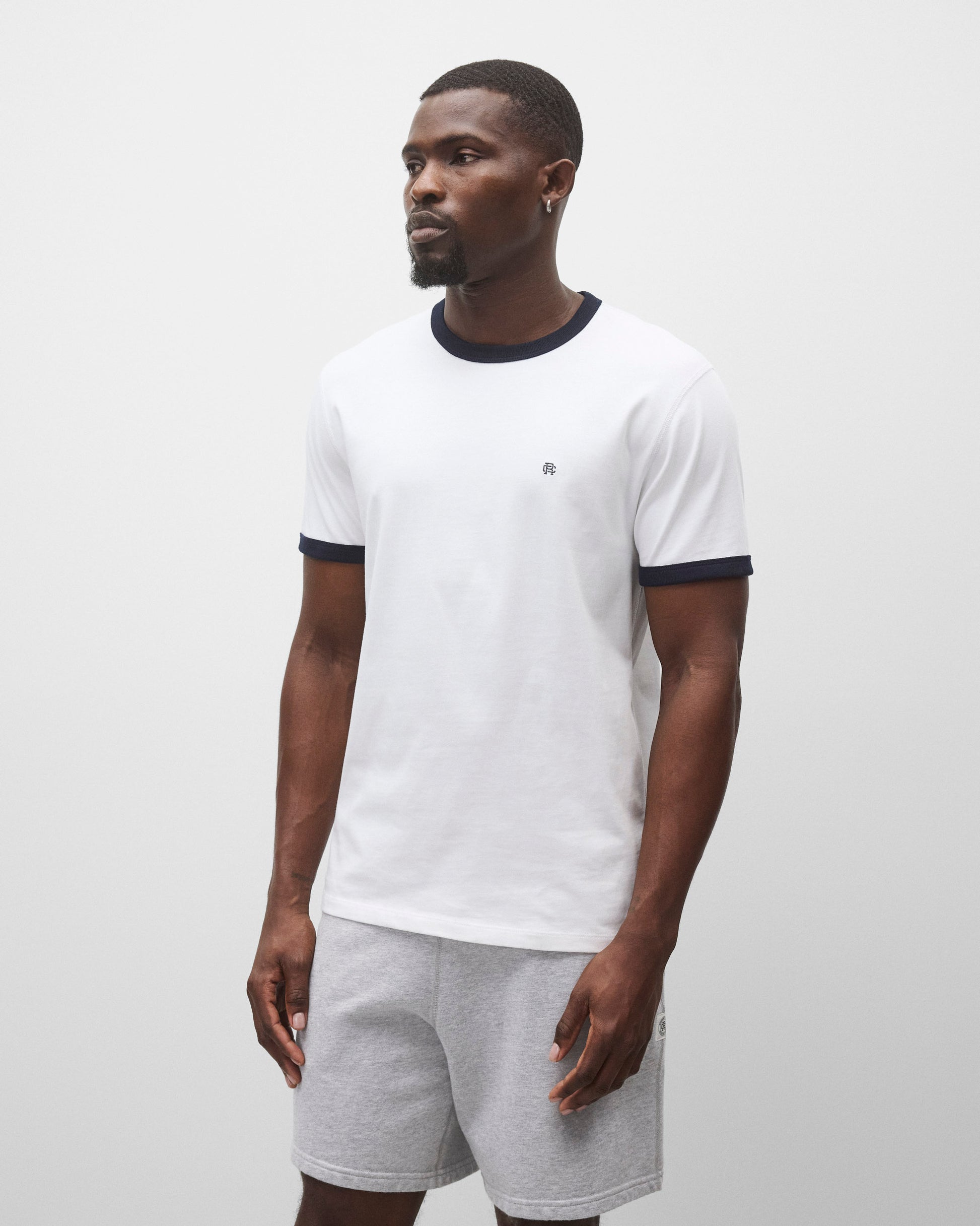 This vintage-inspired ringer tee is crafted from premium midweight cotton jersey for a soft, structured hand feel. Featuring contrast rib at the collar and cuffs, set-in sleeves, and a flat hem. Finished with mini monogram embroidery at the left chest.