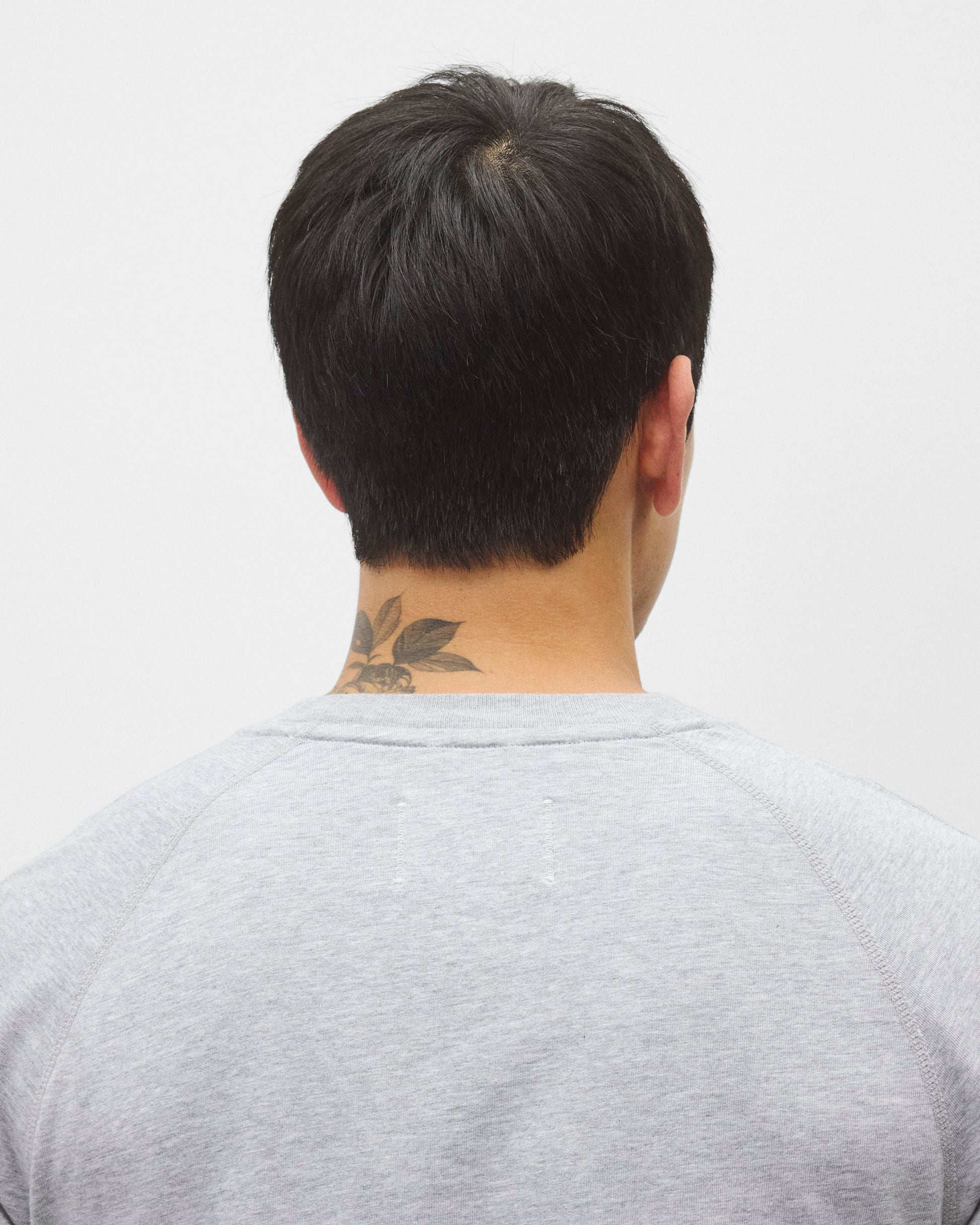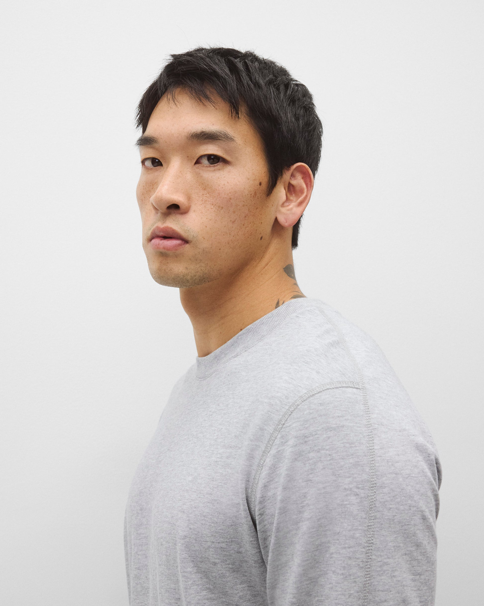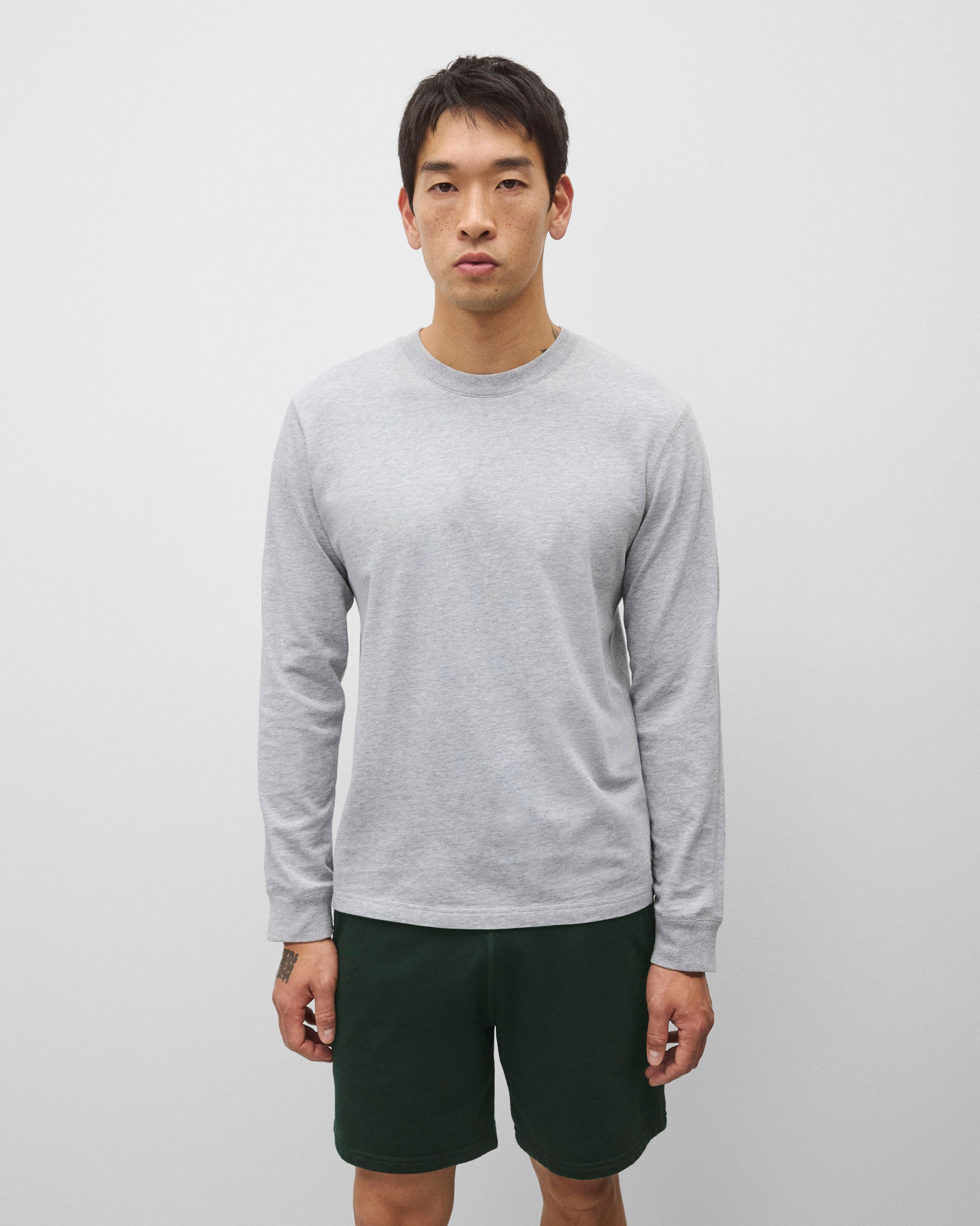 Our midweight long sleeve T-shirt is made from premium cotton, balancing substantial structure with a soft hand. Featuring a standard fit that tapers slightly from the chest to the waist hem. Designed with a wide rib collar, semi-raglan sleeves, and signature flatlock construction.