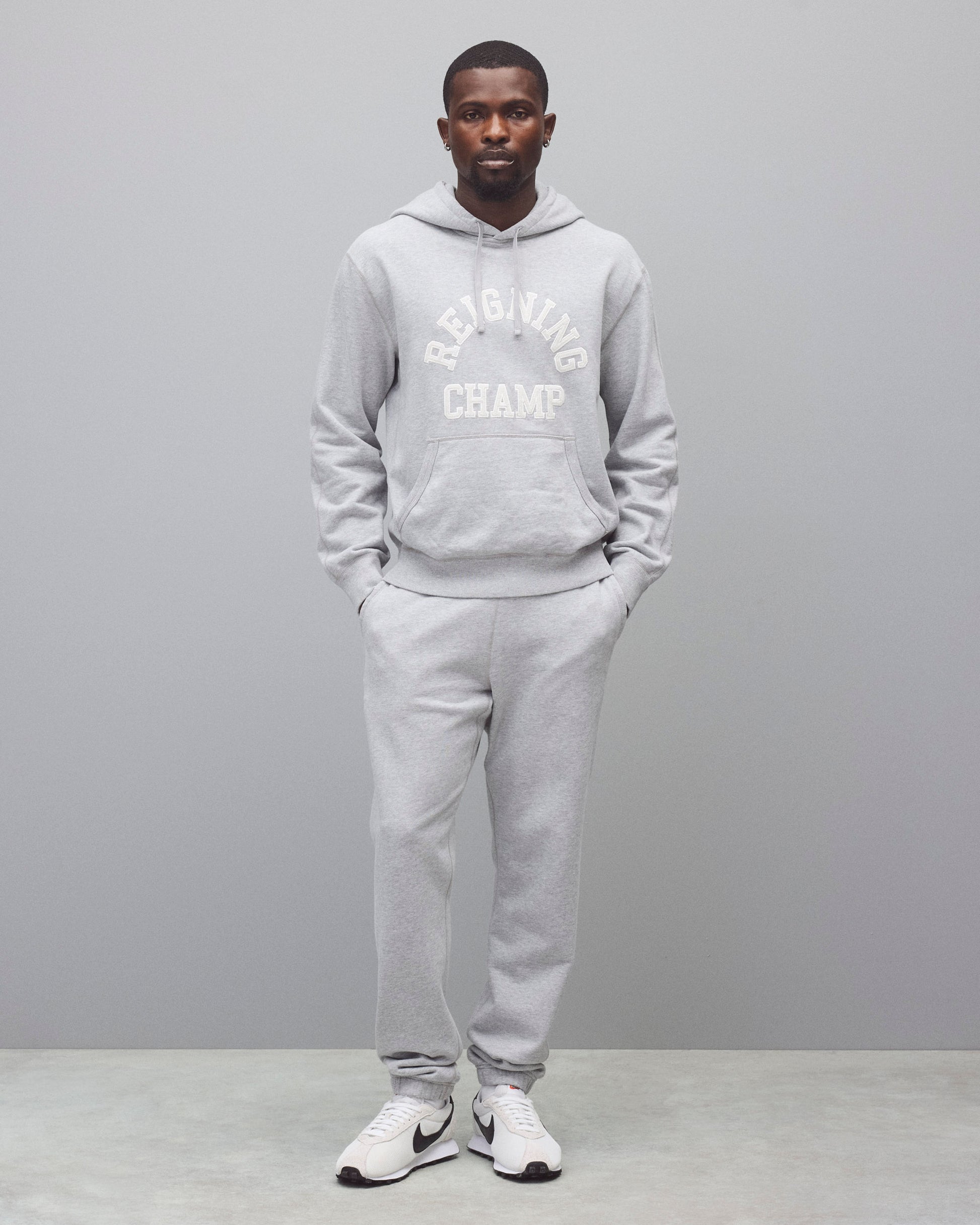 This pullover hoodie is crafted from our signature Midweight Terry, featuring arch logo embroidery in reverse terry. Cut with a standard athletic fit for a balanced silhouette. Detailed with semi-raglan sleeves, a rib-lined hood, central pocket, rib side panels, and flatlock construction.