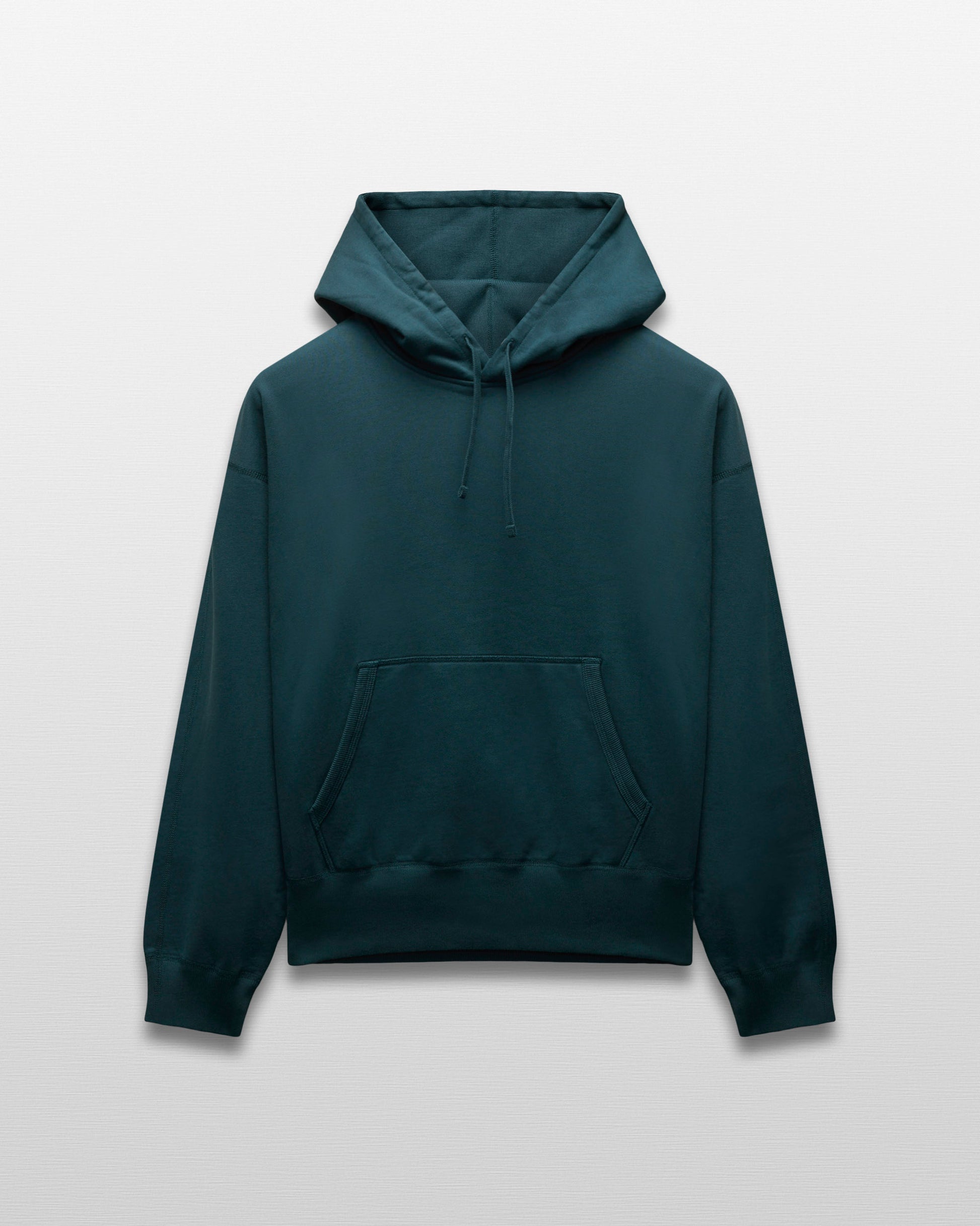 Our relaxed-fit pullover hoodie is made from premium Midweight Terry for an ideal balance of comfort, structure and drape. Featuring drop shoulders, full-cut sleeves and torso, and a waist-length hem. Designed with a dual-layer hood, a rib-bound front pocket, and premium rib.