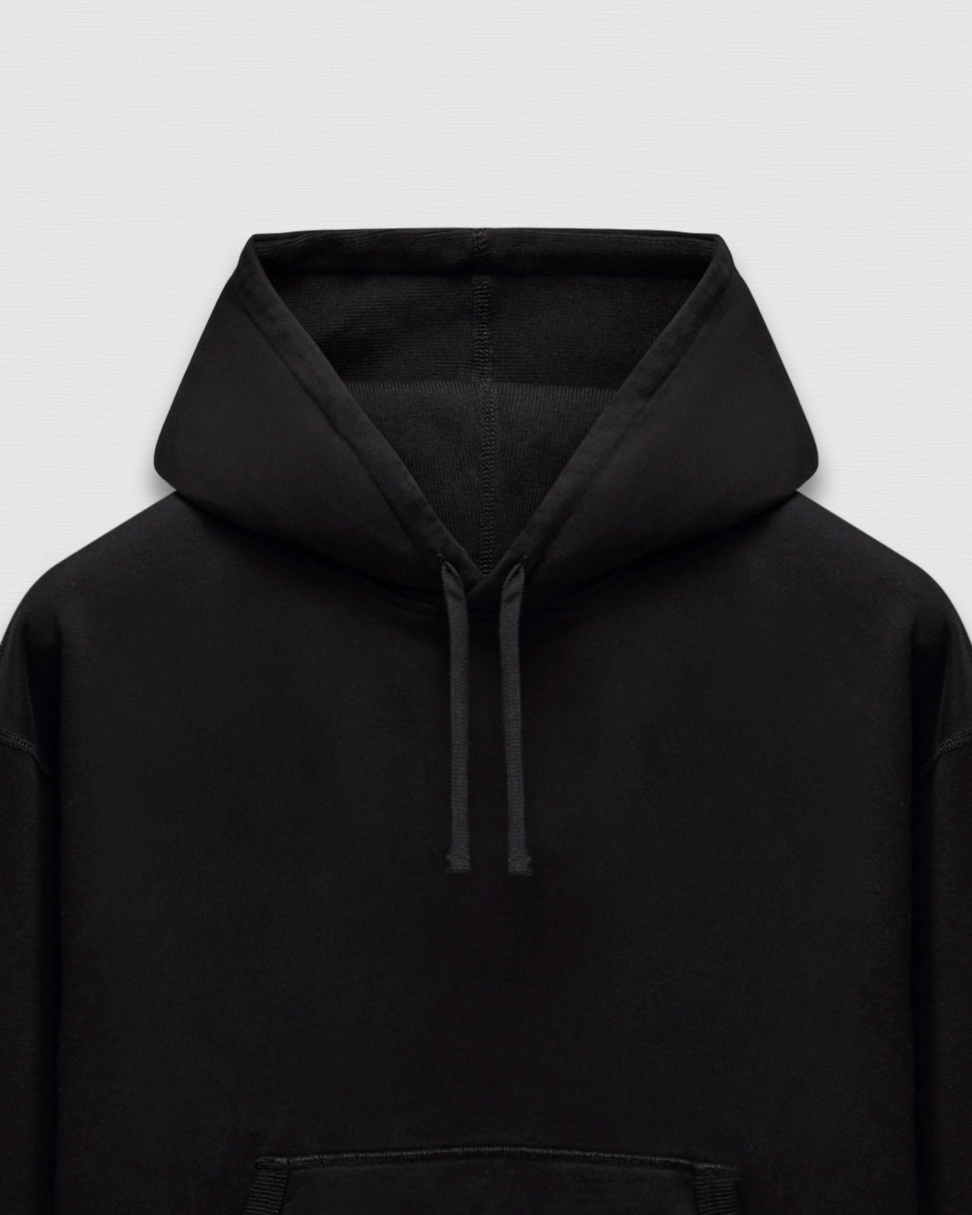 Our relaxed-fit pullover hoodie is made from premium Midweight Terry for an ideal balance of comfort, structure and drape. Featuring drop shoulders, full-cut sleeves and torso, and a waist-length hem. Designed with a dual-layer hood, a rib-bound front pocket, and premium rib.
