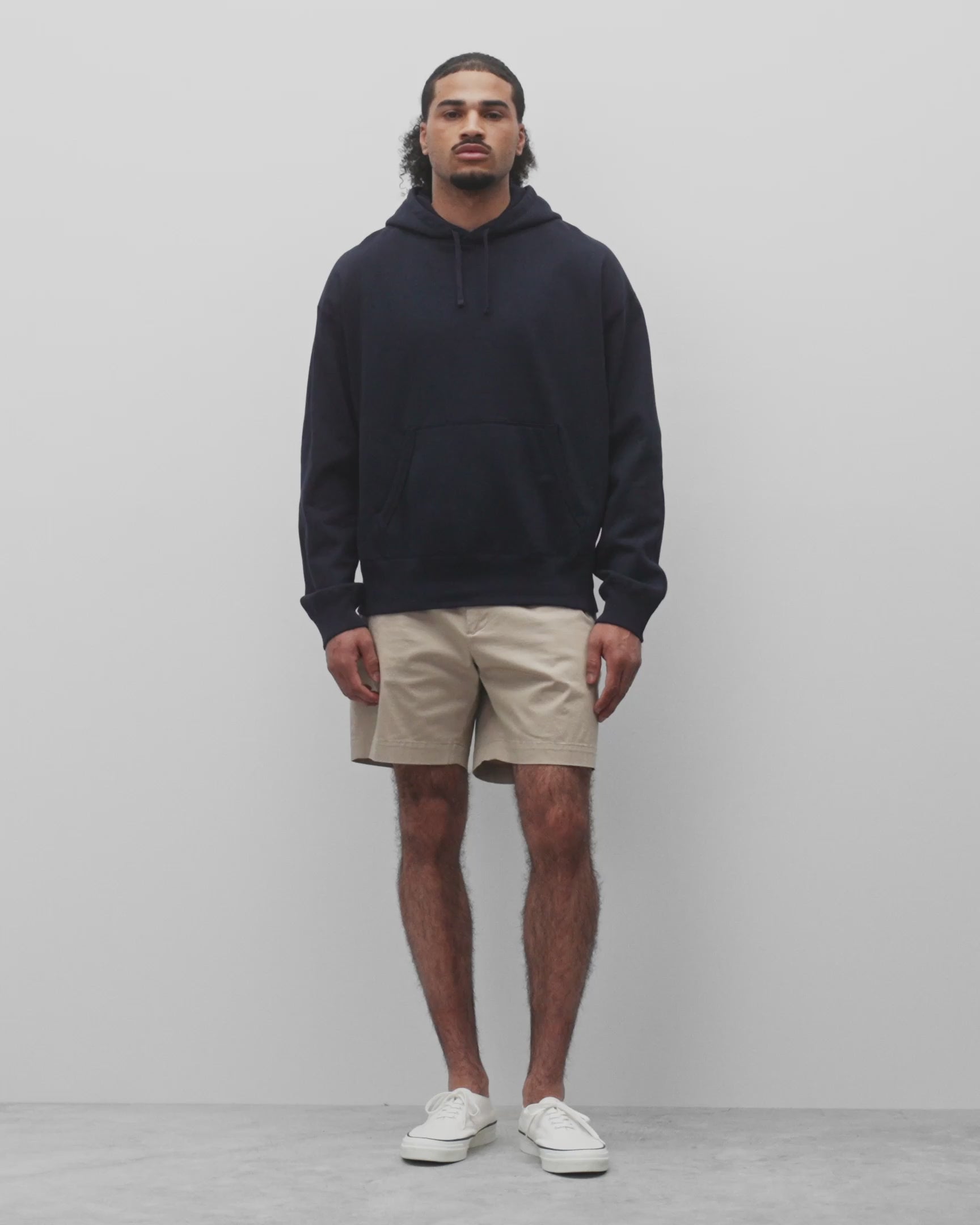 Our relaxed-fit pullover hoodie is made from premium Midweight Terry for an ideal balance of comfort, structure and drape. Featuring drop shoulders, full-cut sleeves and torso, and a waist-length hem. Designed with a dual-layer hood, a rib-bound front pocket, and premium rib.