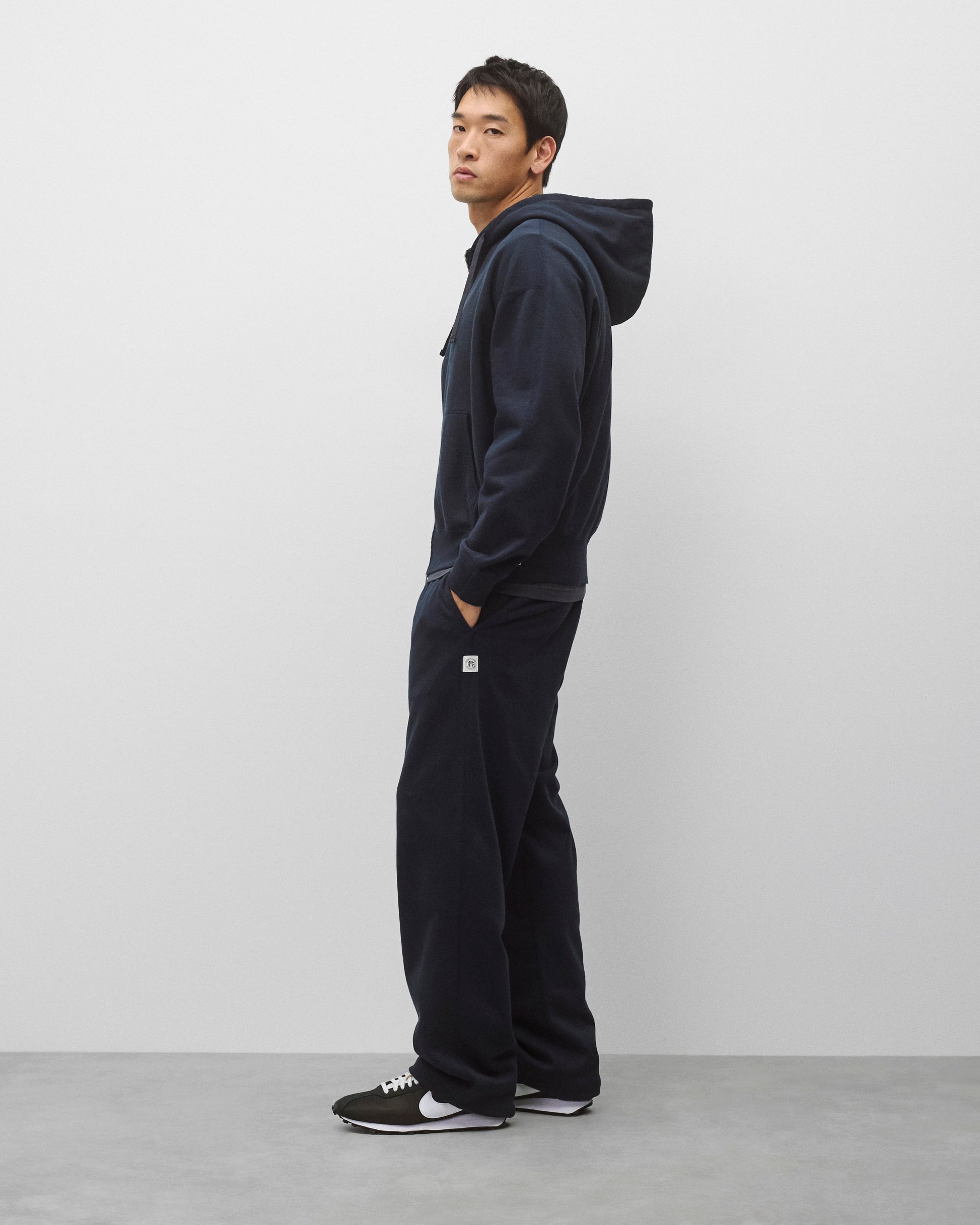 Our relaxed-fit sweatpant is made from premium Midweight Terry for an ideal balance of comfort, structure and drape. Designed with a generous, wide cut silhouette, jersey-lined pockets, flatlock seams, and drawcord cuffs.