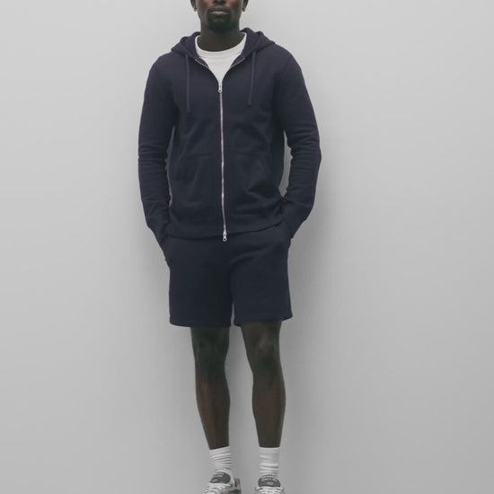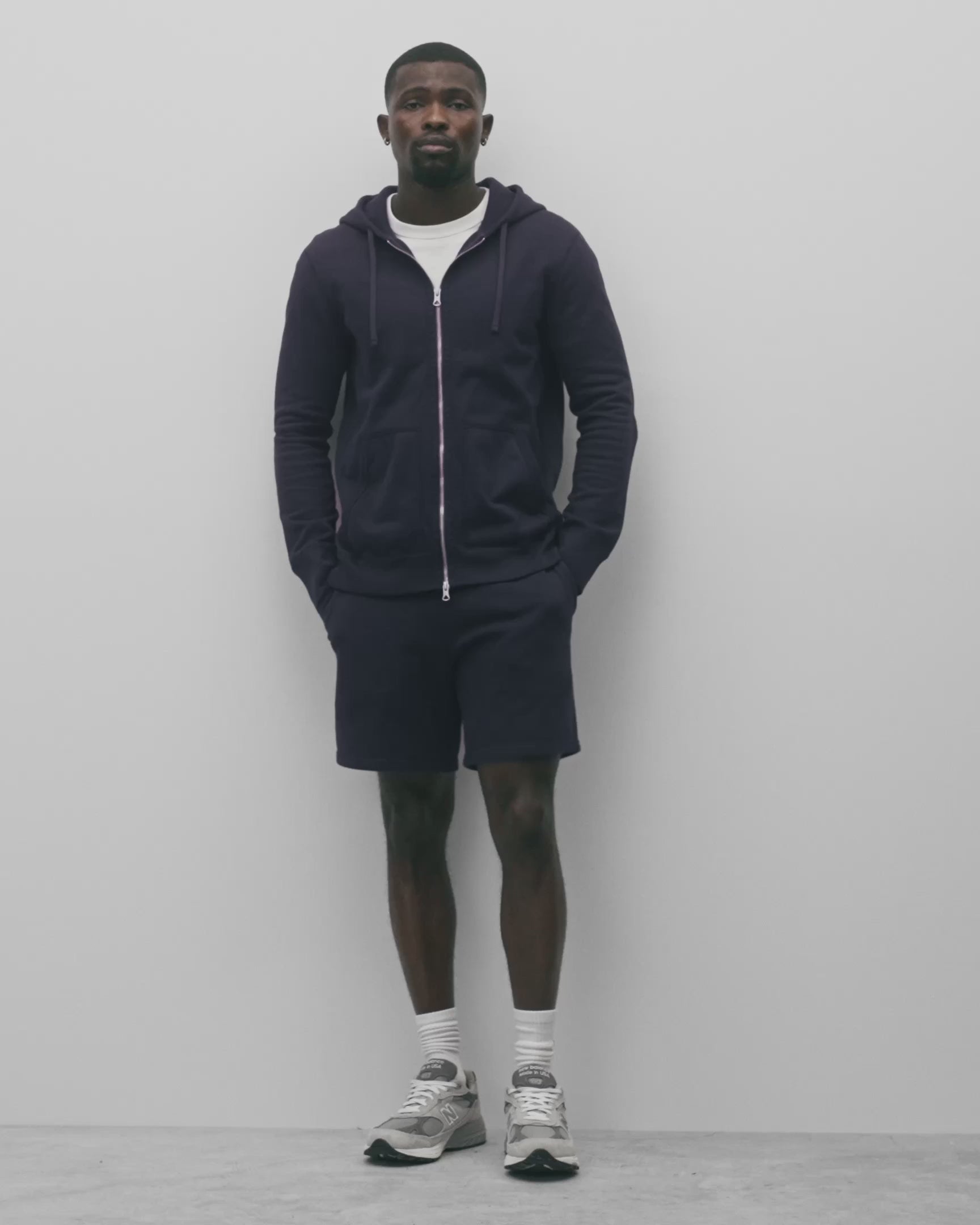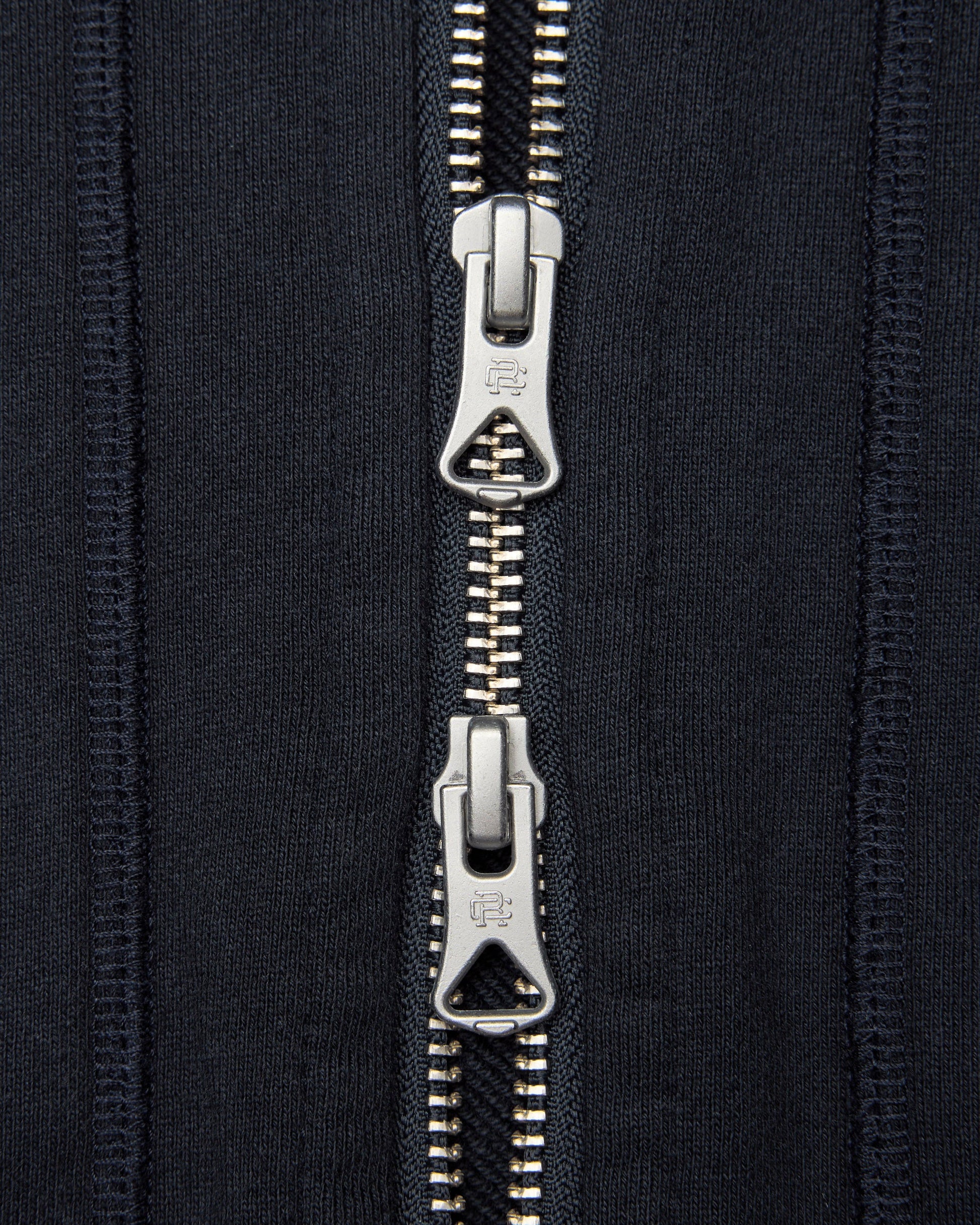 Our signature zip hoodie is made from premium Midweight Terry for an ideal balance of comfort and structure. Designed with a trim athletic fit, a dual-layer hood, semi-raglan sleeves, a heavy gauge two-way YKK zipper, a rib-bound front pocket, premium rib, and signature flatlock construction.