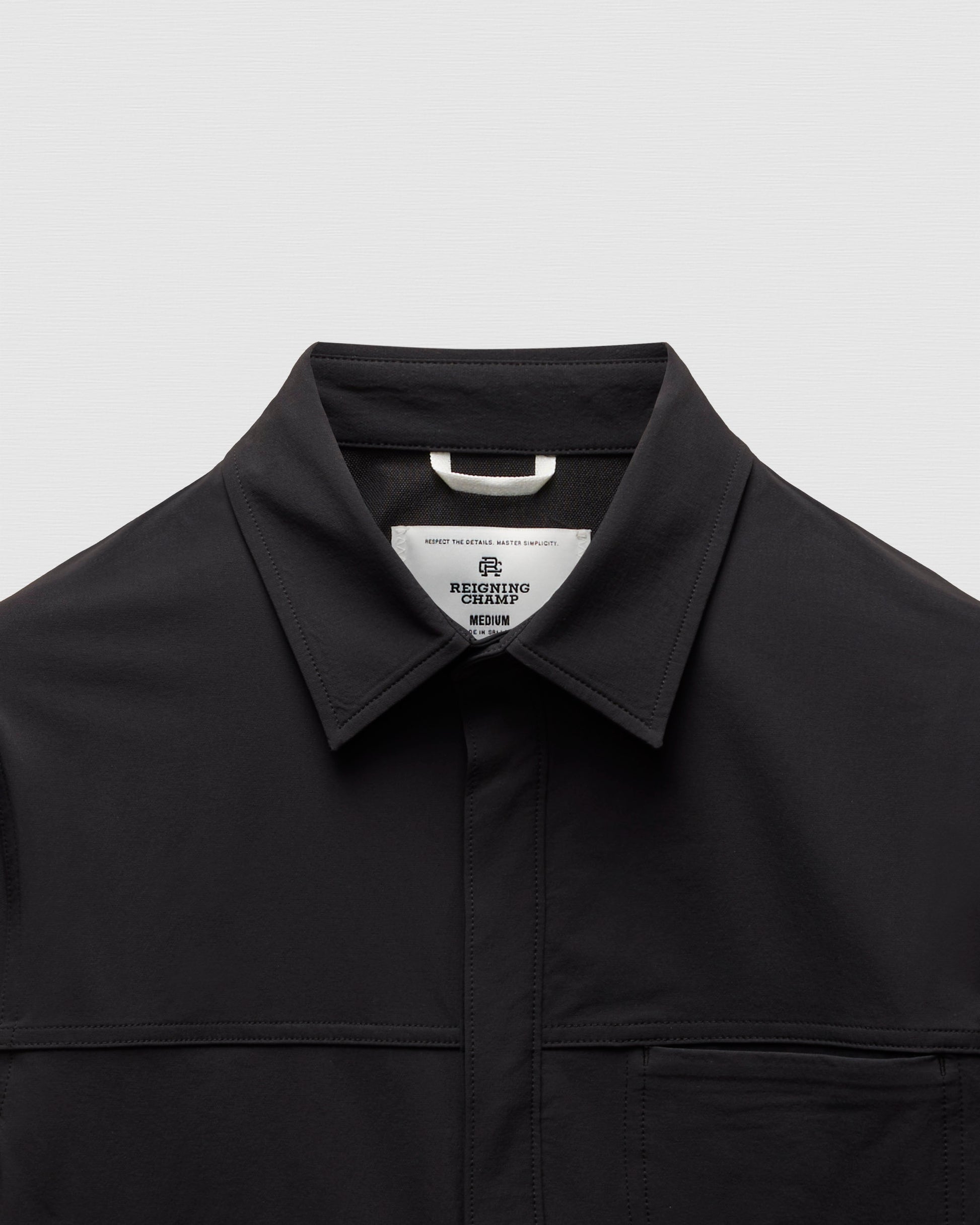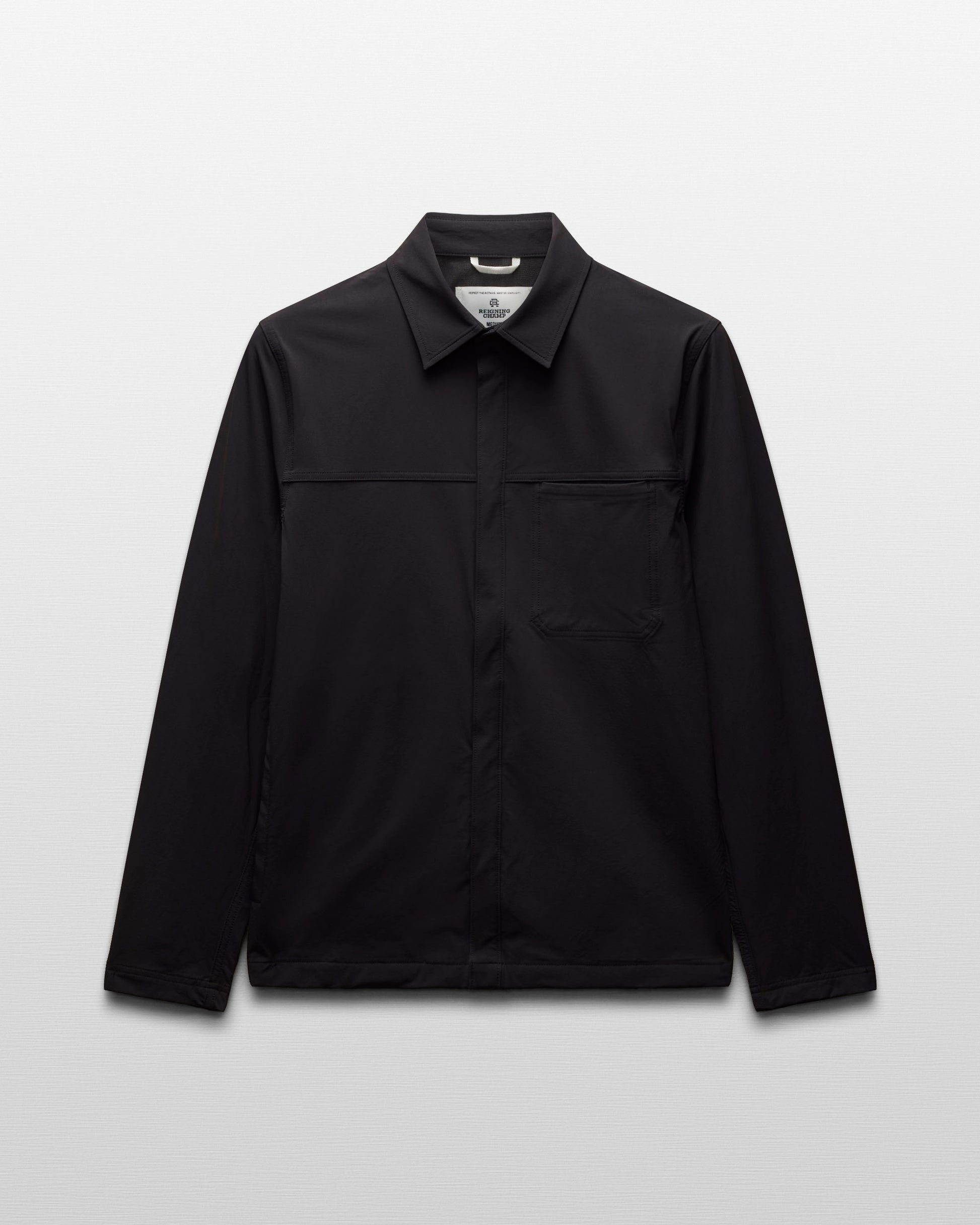 This two-way stretch nylon overshirt is designed for everyday utility on urban terrain. Featuring an oxford weave reverse, it's abrasion-resistant and treated with a durable water-repellent finish. Designed with a pointed snap collar, concealed snap button placket, ripstop-lined pockets at the chest and sides, and adjustable cuffs for added function.