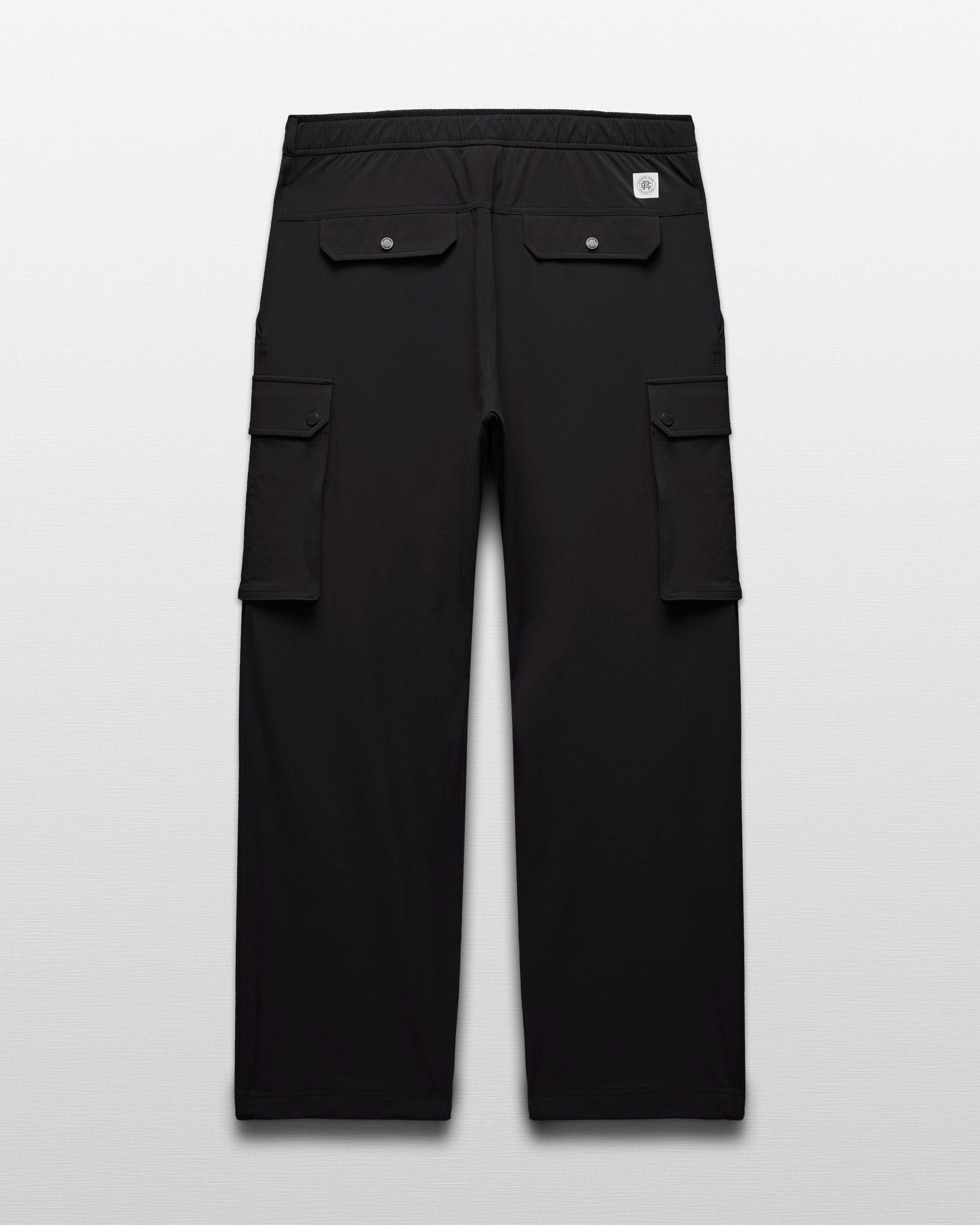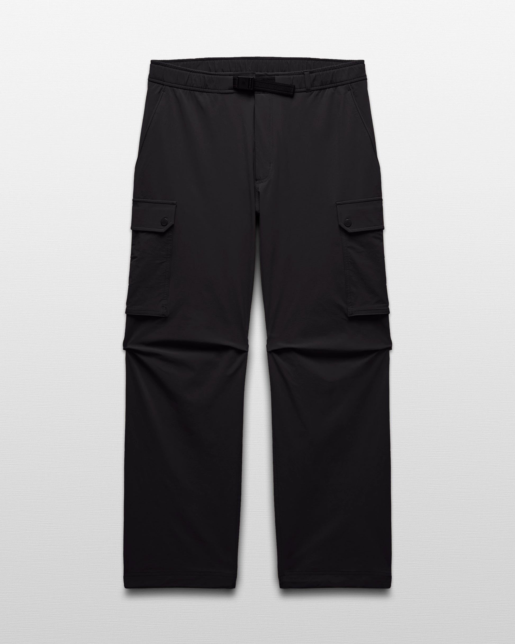 This two-way stretch nylon cargo pant is designed for active pursuits. Featuring an oxford weave reverse, it's abrasion-resistant and treated with a durable water-repellent finish. Engineered for modern utility with a built-in webbing belt, secure zip pockets, metal snap cargo pockets, and shock cord cuffs for adjustability.