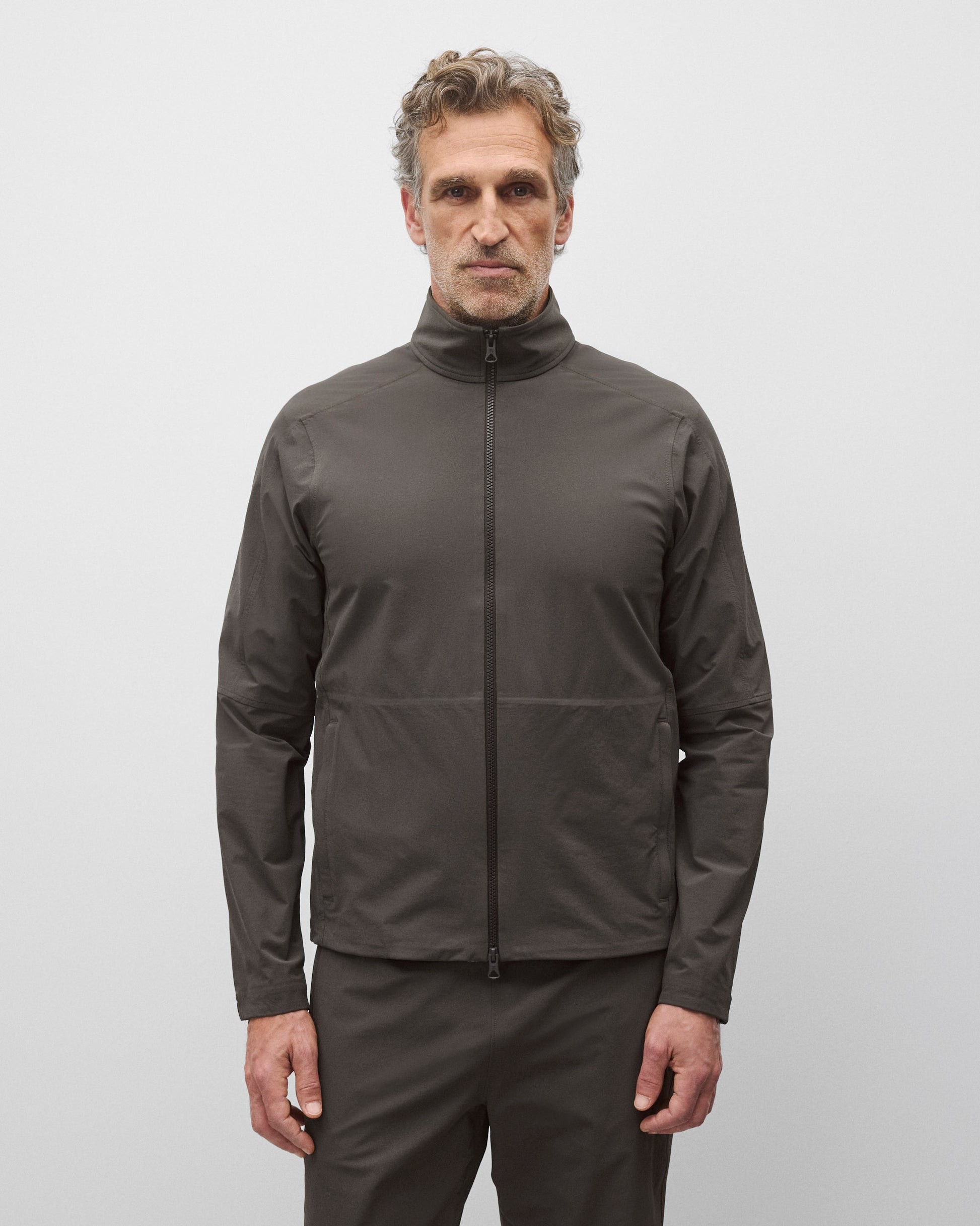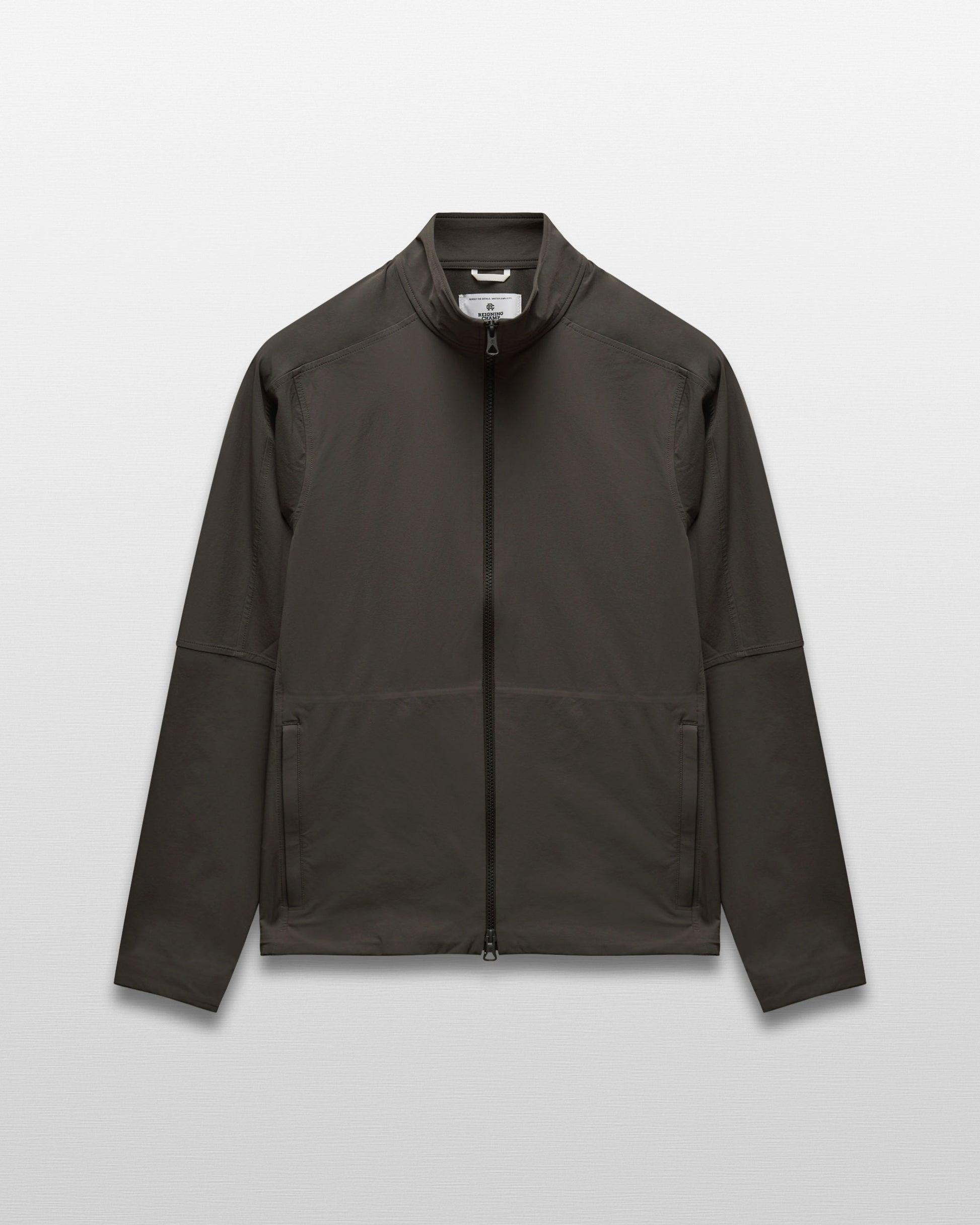 This two-way stretch nylon jacket is designed for movement on and off-field. Featuring an oxford weave reverse that's abrasion-resistant and treated with a durable water-repellent finish. Designed with a mock neck collar, YKK Vislon two-way zipper, front zip welt pockets, half-elasticated cuffs, and an adjustable hem with shock cord.