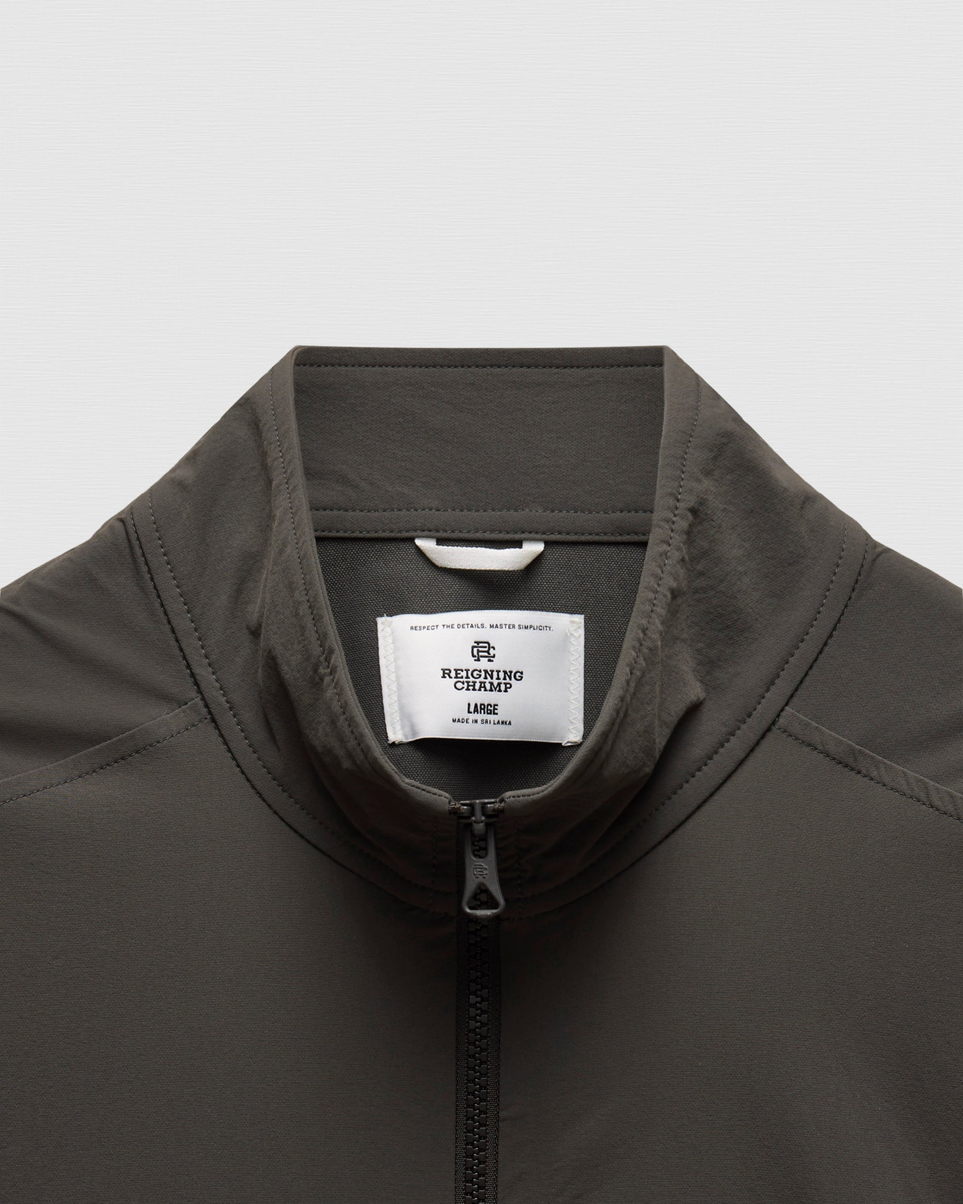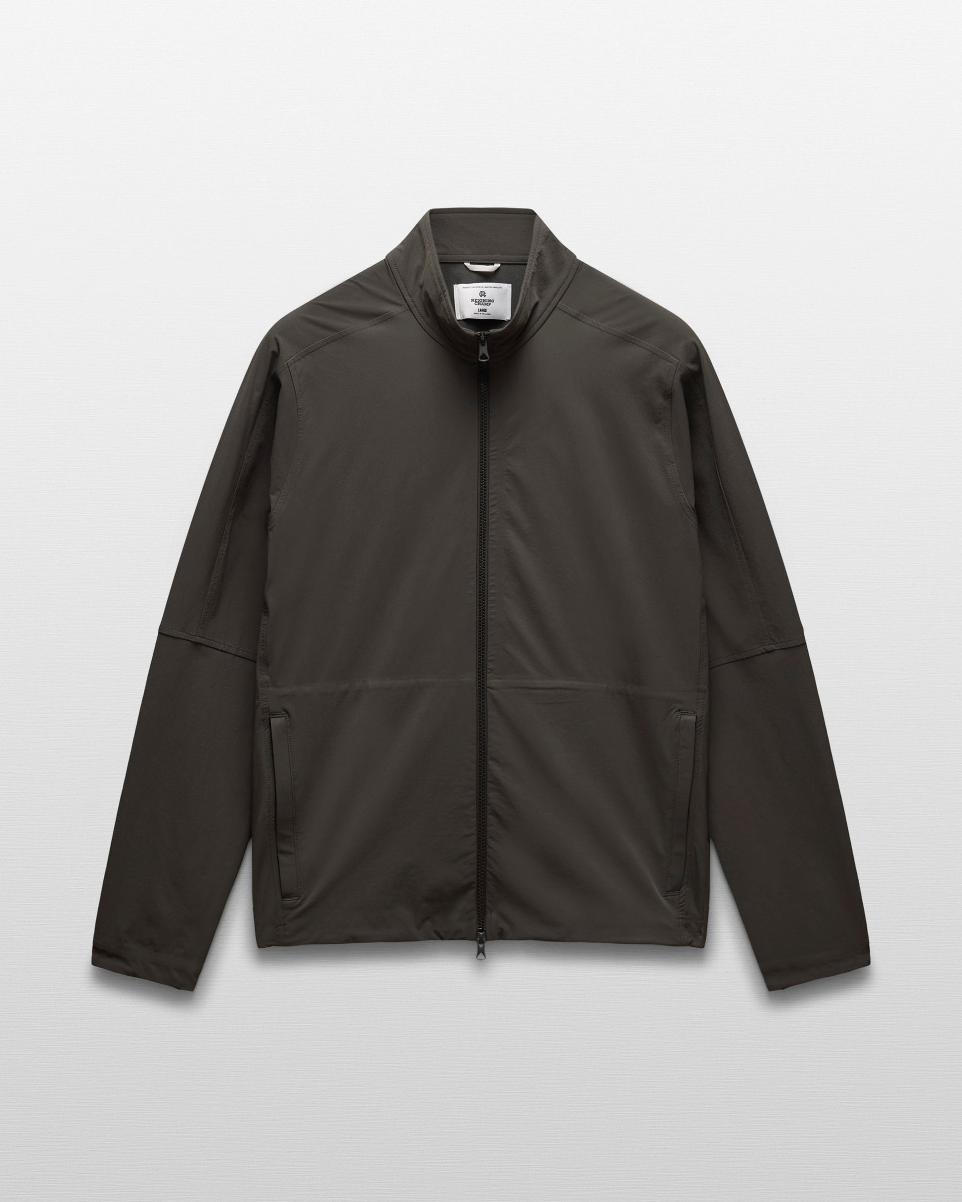 This two-way stretch nylon jacket is designed for movement on and off-field. Featuring an oxford weave reverse, it's abrasion-resistant and treated with a durable water-repellent finish. Designed with a mock neck collar, YKK Vislon two-way zipper, front zip welt pockets, half-elasticated cuffs, and an adjustable hem with shock cord.