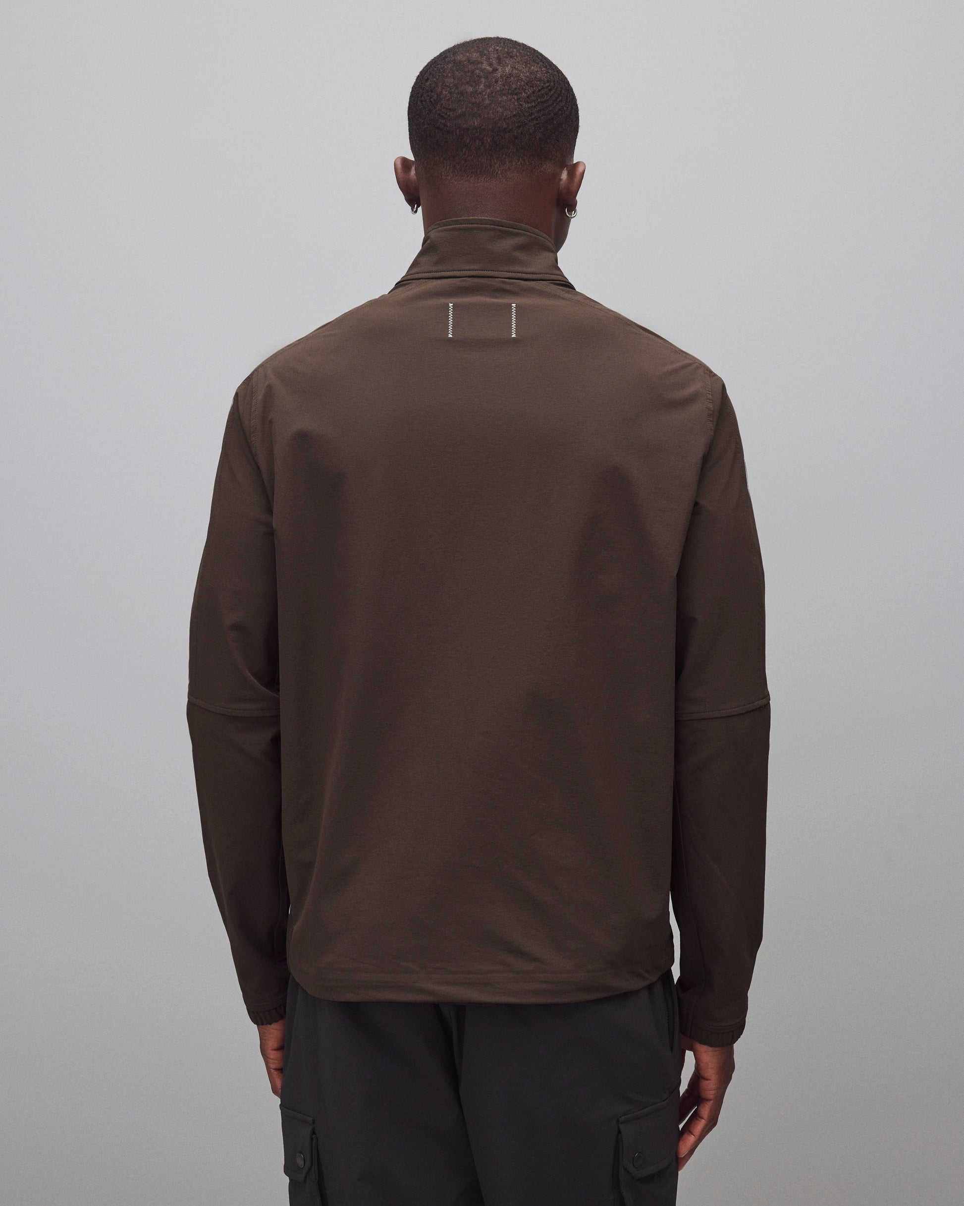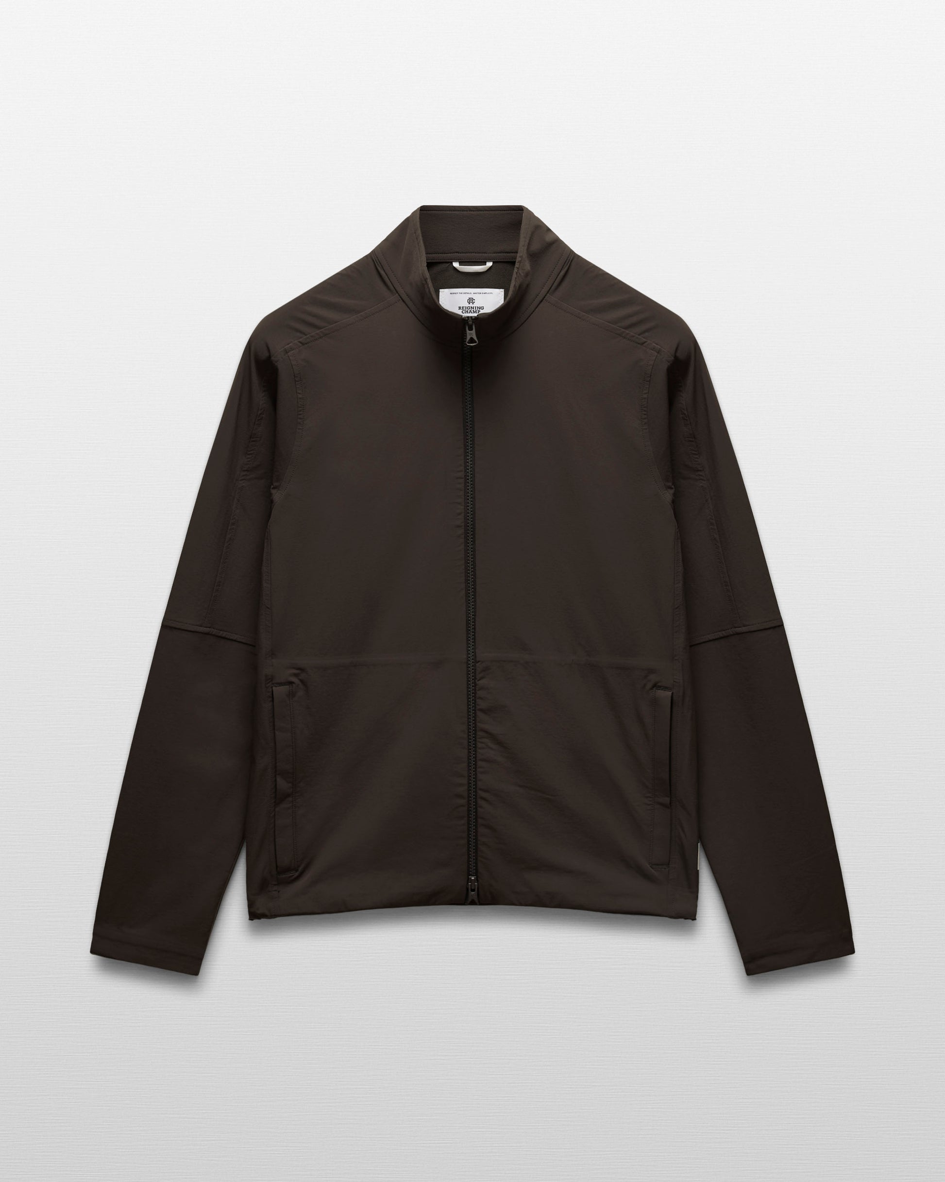 This two-way stretch nylon jacket is designed for movement on and off-field. Featuring an oxford weave reverse, it's abrasion-resistant and treated with a durable water-repellent finish. Designed with a mock neck collar, YKK Vislon two-way zipper, front zip welt pockets, half-elasticated cuffs, and an adjustable hem with shock cord.