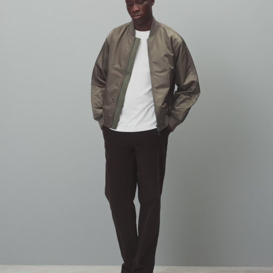 This military-inspired flight jacket is crafted from premium satin twill with a durable water-repellent finish. Featuring a standard fit with slightly cropped hem, and PrimaLoft® insulation for efficient warmth. Designed with robust triple needle stitching, heavy-gauge YKK two-way zip closure, corded welt pockets, an interior chest pocket, and durable rib collar, cuffs and hem.