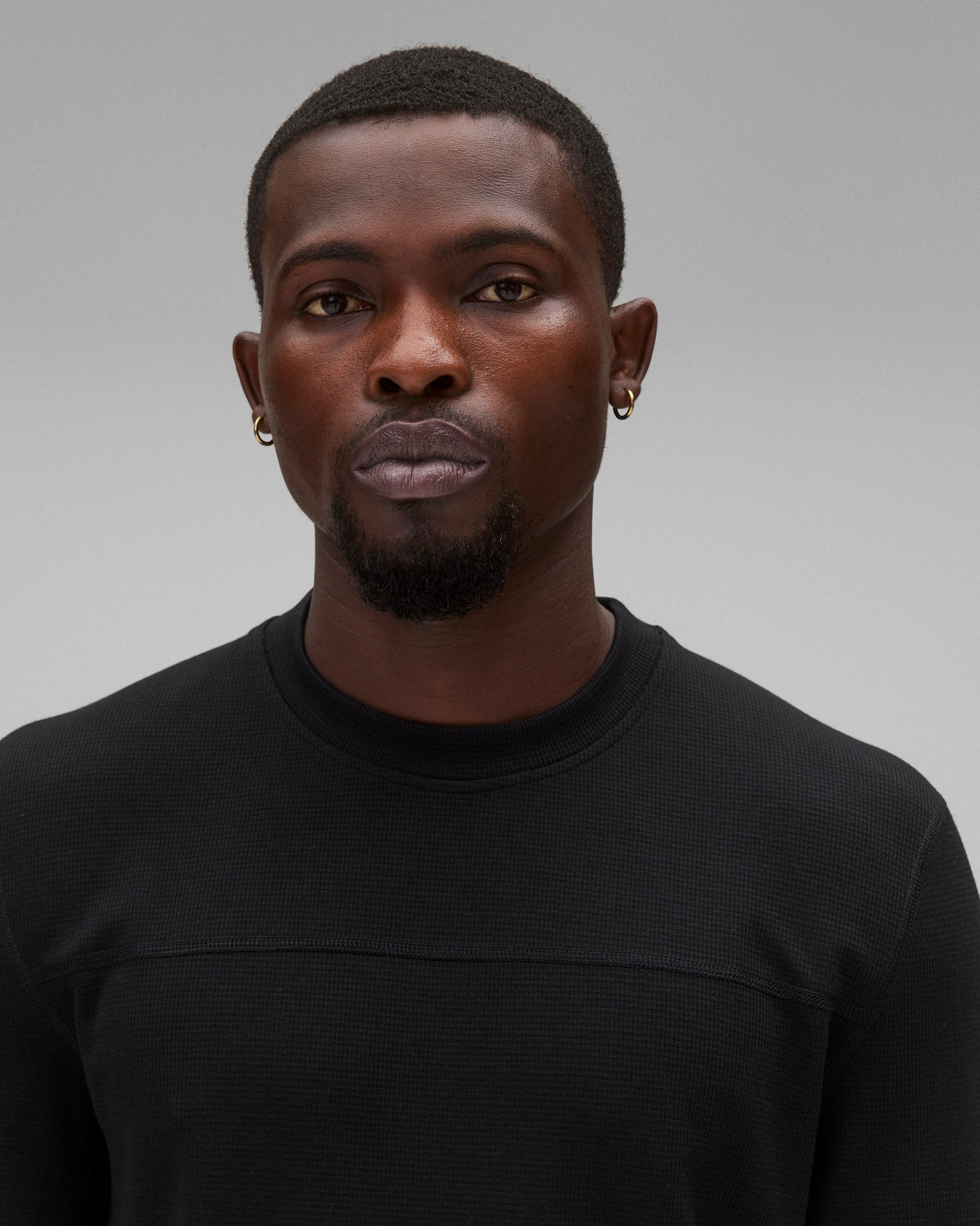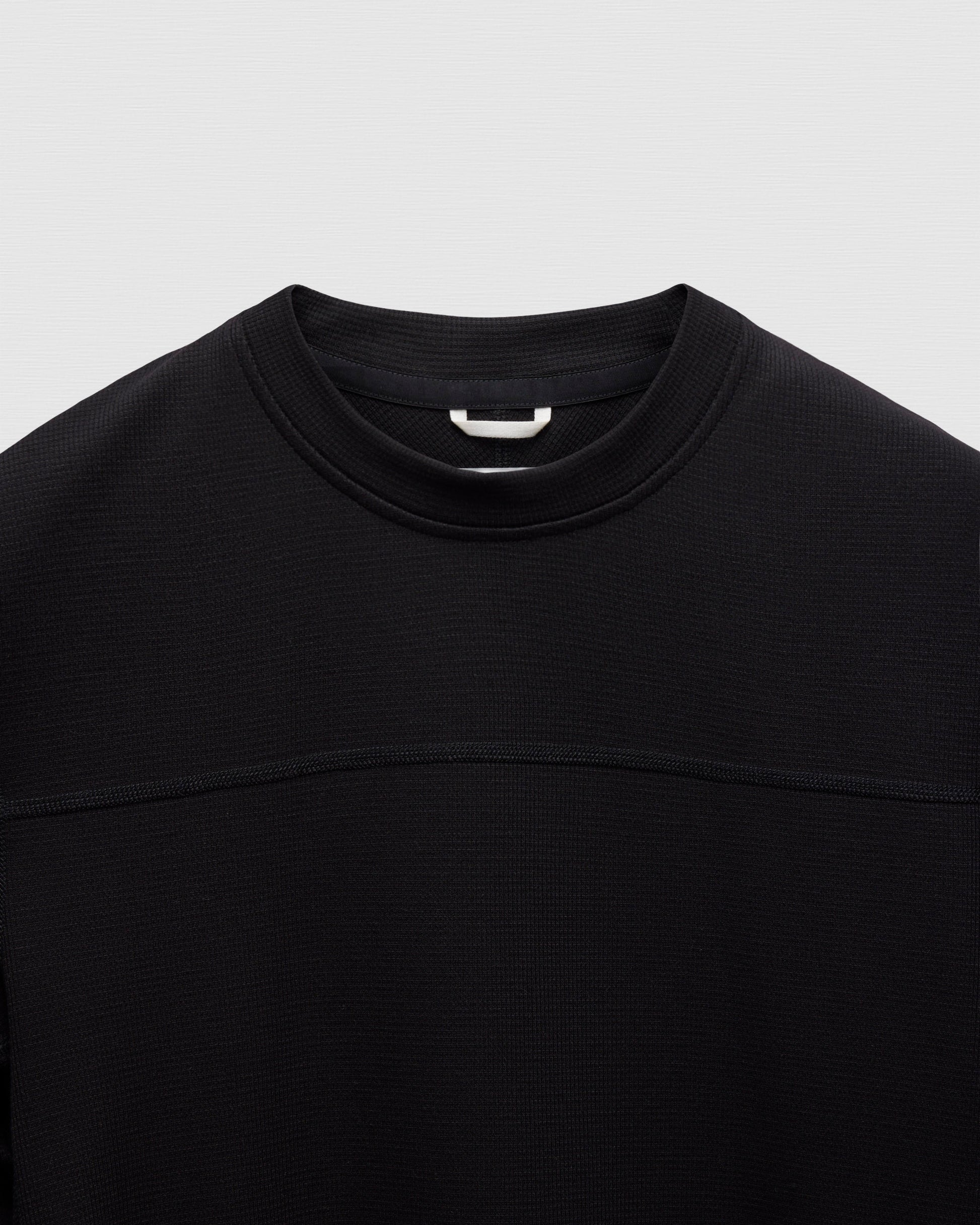 Polartec® Thermal Pro® is an efficient jersey baselayer fabric delivering warmth with less bulk and breathable comfort next to skin. This waffle knit T-shirt features a form fit silhouette, with a rib collar and multi-panel sleeves and sides.
