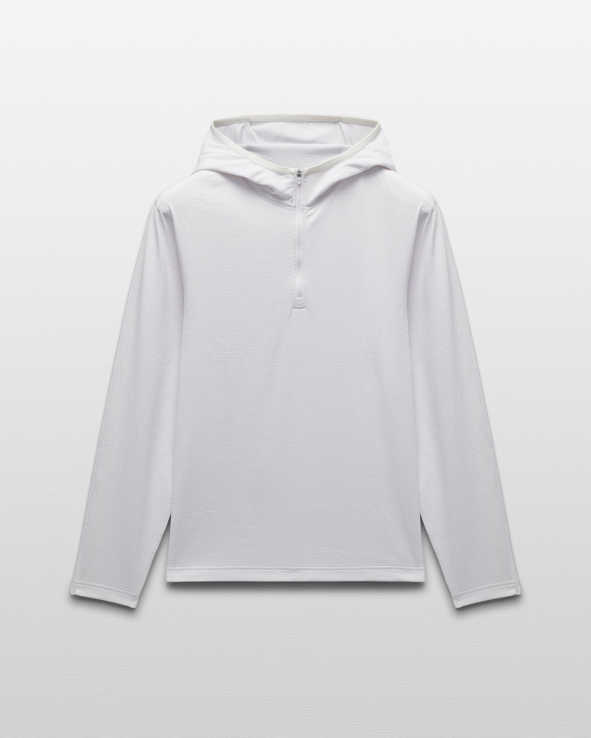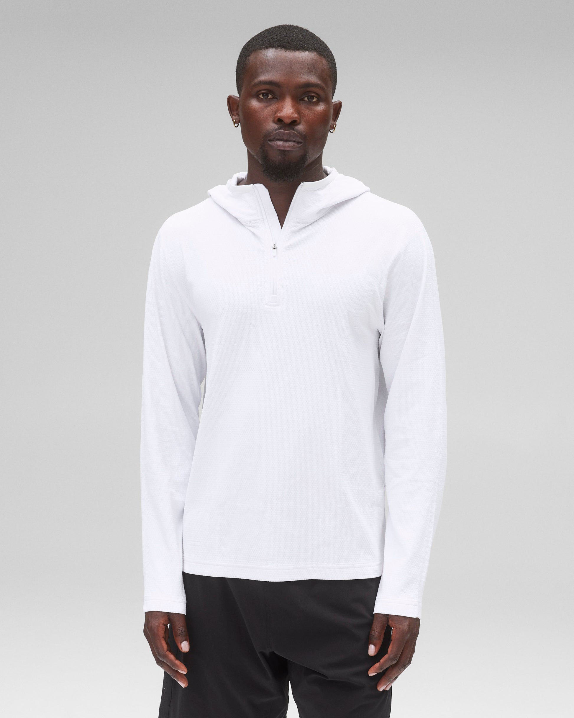 A moisture-wicking mesh hoodie designed to keep you cool in all conditions. Solotex® Mesh is a breathable performance fabric with dynamic stretch, high rebound, and a smooth knit reverse. Designed with a scuba hood, YKK quarter zip closure, raglan sleeves, and an open flat hem.