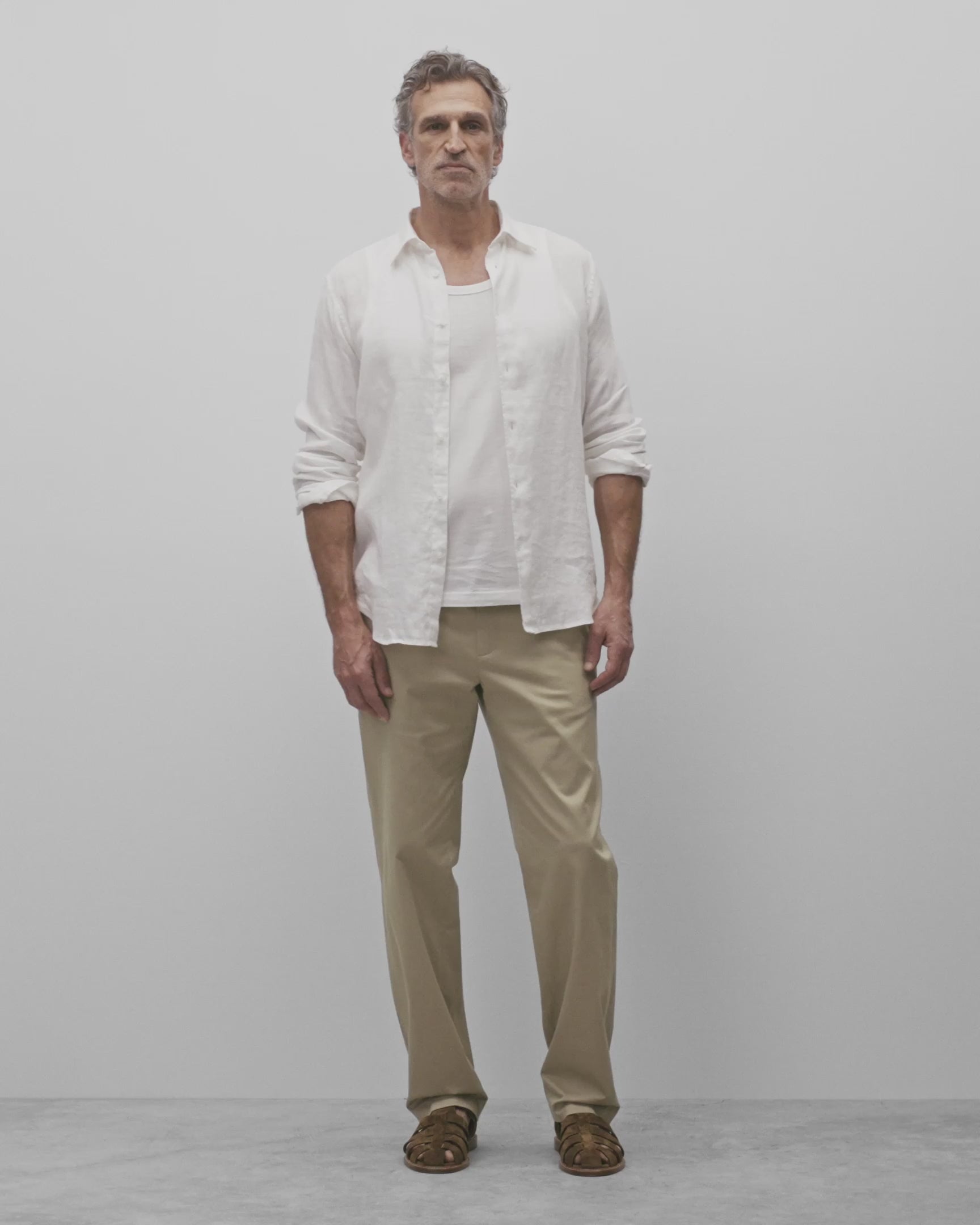 Our Freshman Standard silhouette features a straight leg with a generous fit through the thigh. This versatile chino is crafted from fine cotton twill, with added stretch for comfort and ease of movement. Designed with a belt-loop waistband, hook-and-bar closure, YKK metal zip fly, piped slant pockets and rear welt pockets.