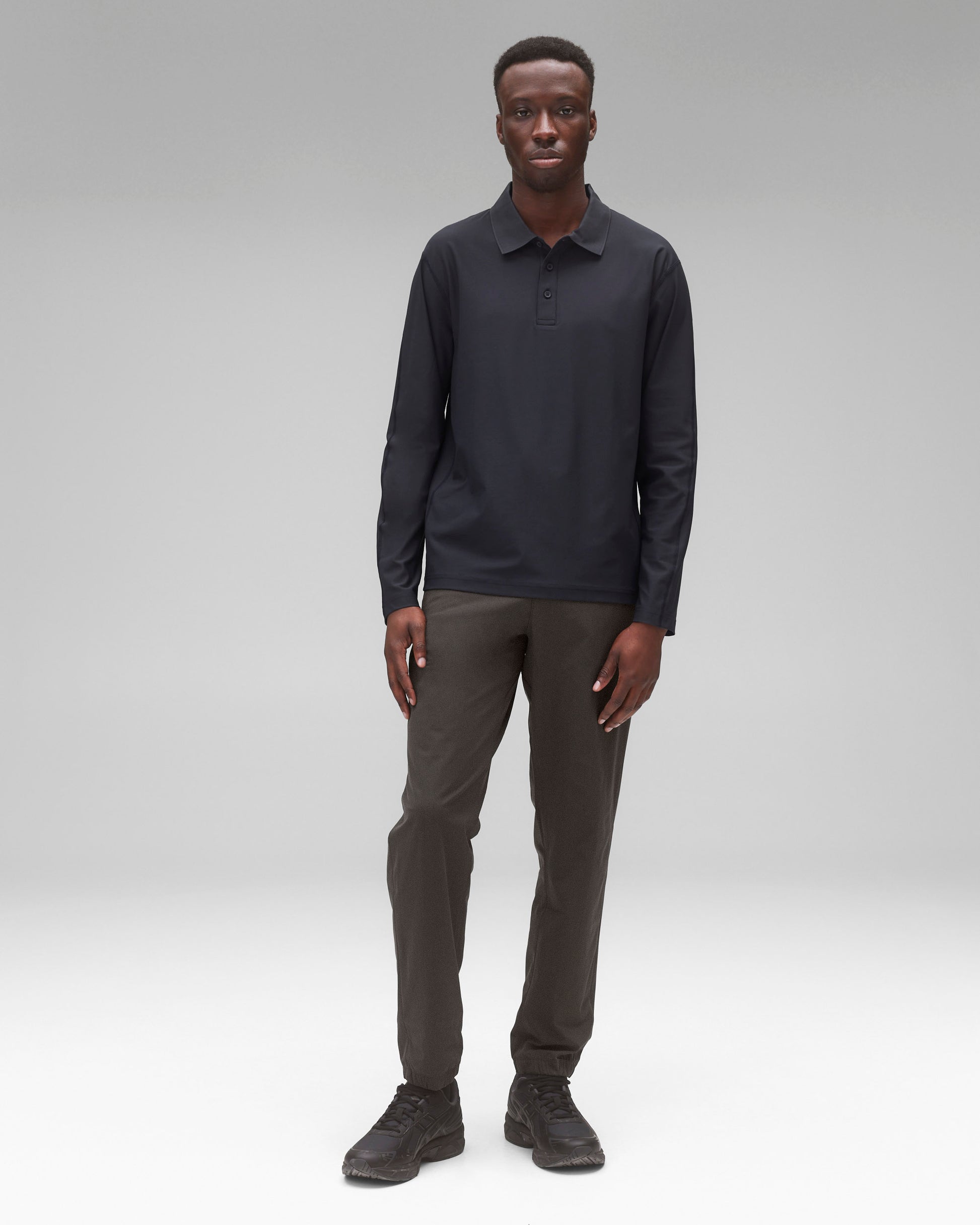 This athletic take on our Coach’s Pant features a standard fit, with a slight taper and gathered cuffs. Crafted from a sophisticated stretch knit fabric to ensure effortless comfort on the move. Designed with an elastic drawcord waistband, reverse coil zip pockets, a rear welt pocket, and a diamond crotch gusset for added mobility and stretch.