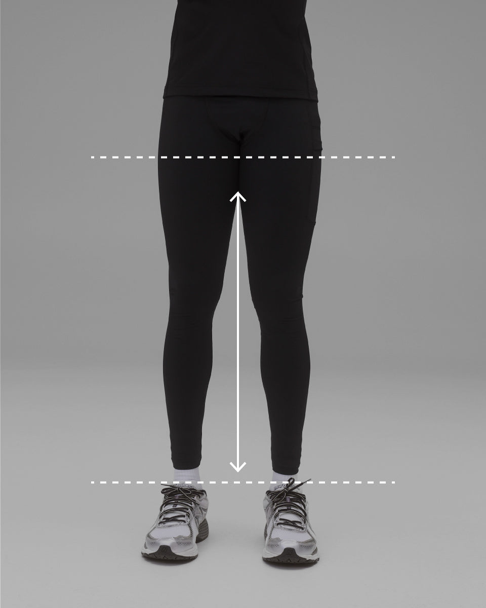 Stand with legs slightly apart, measure from the top of your inner thigh to the ankle.