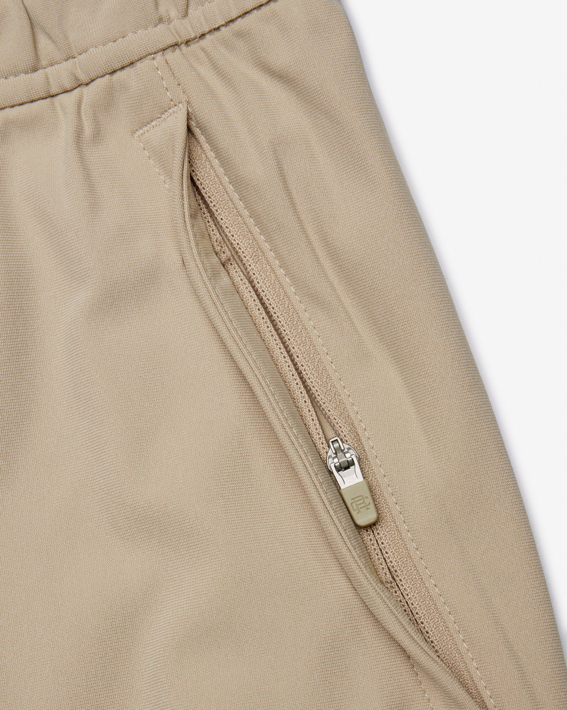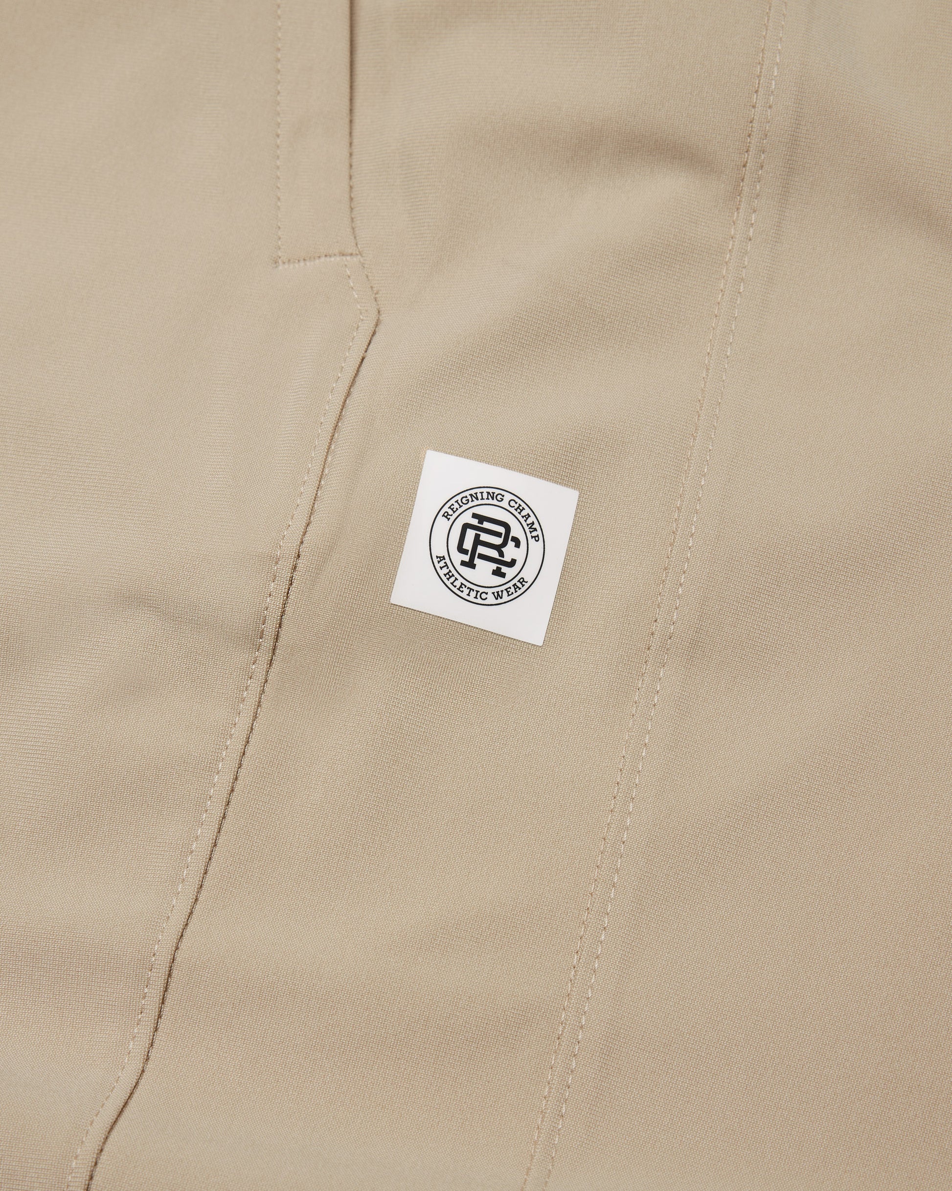 This athletic take on our Coach’s Pant features a standard fit, with a slight taper and gathered cuffs. Crafted from a sophisticated stretch knit fabric to ensure effortless comfort on the move. Designed with an elastic drawcord waistband, reverse coil zip pockets, a rear welt pocket, and a diamond crotch gusset for added mobility and stretch.